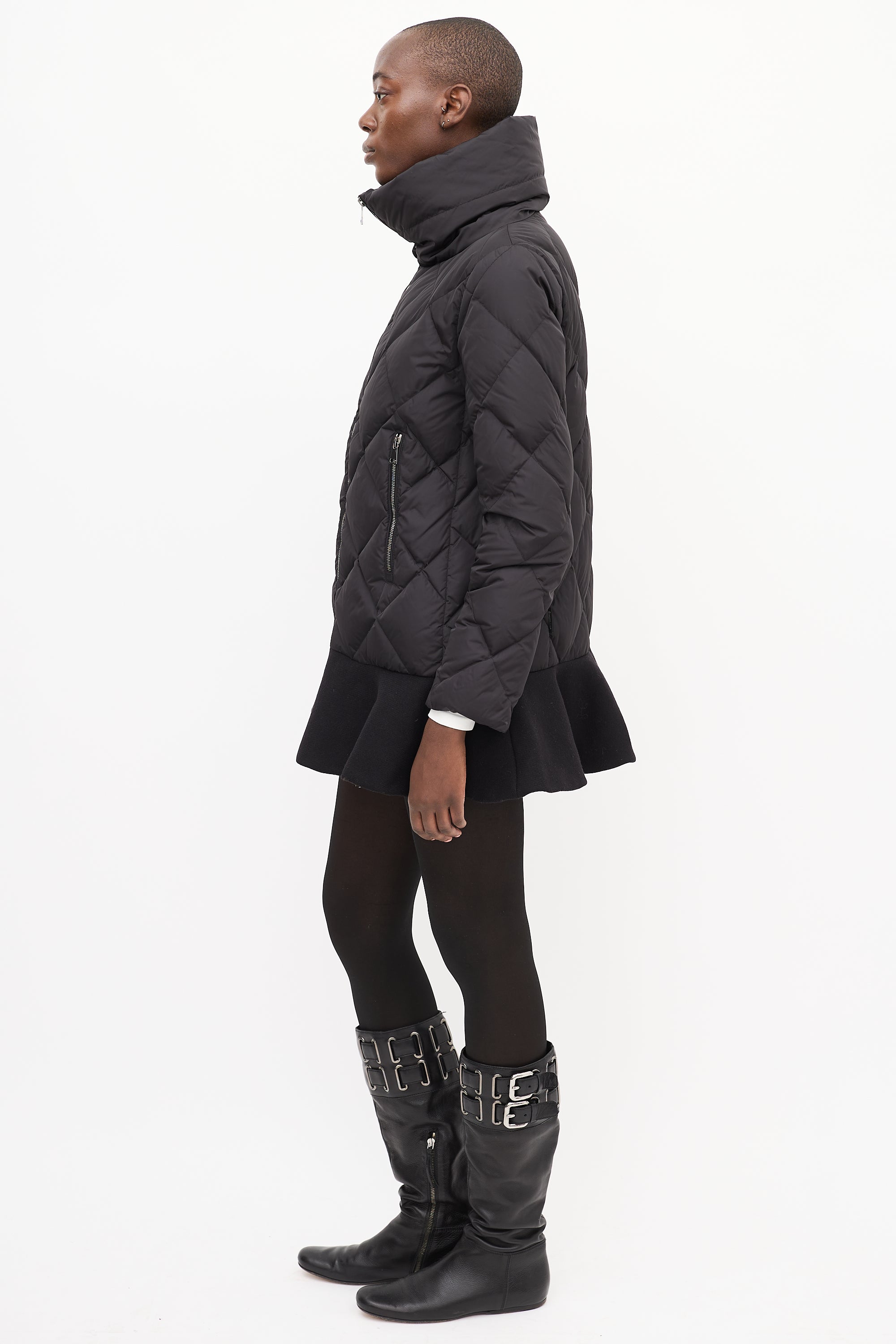 Black Down Vouglan Peplum Jacket Medium Size Guide