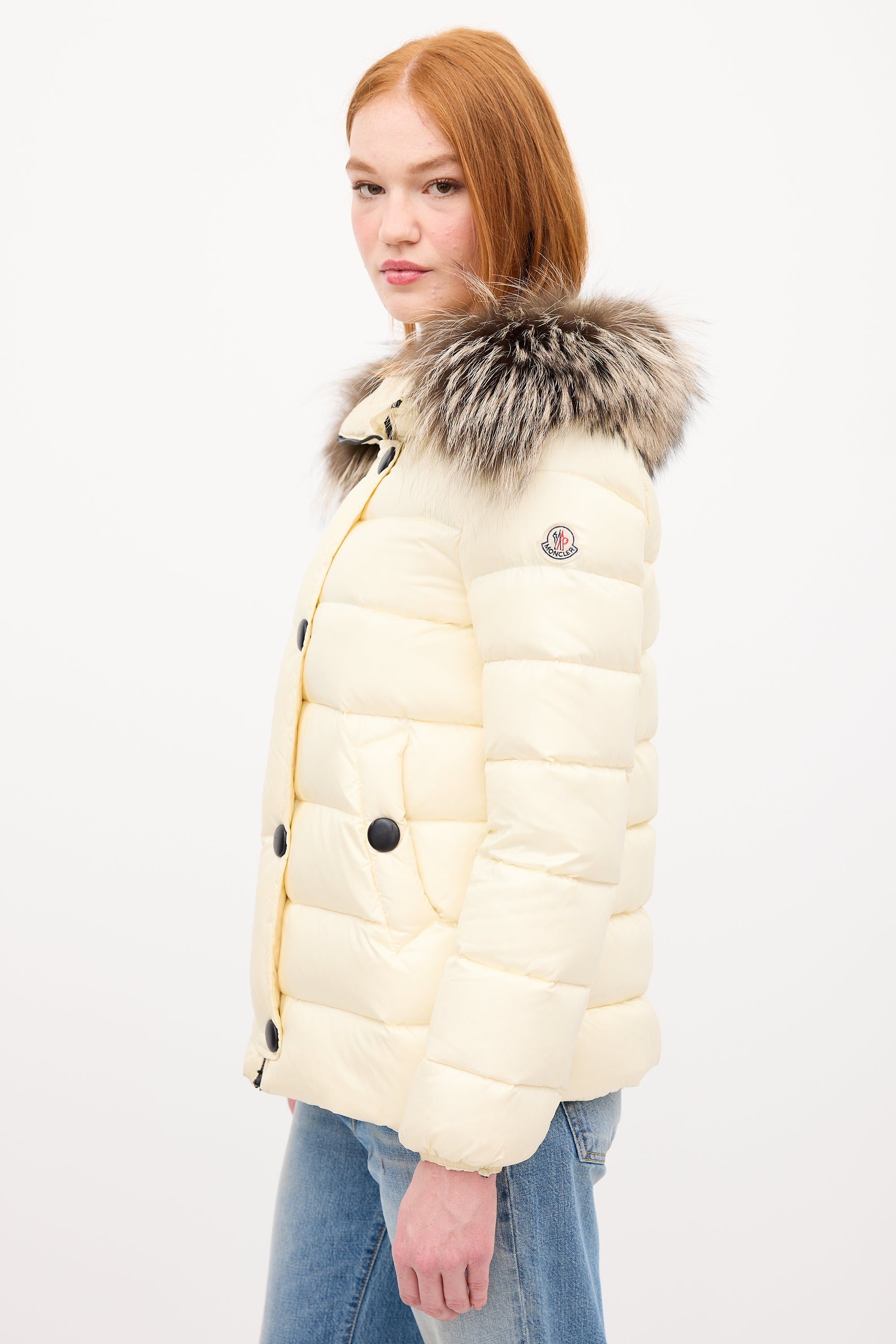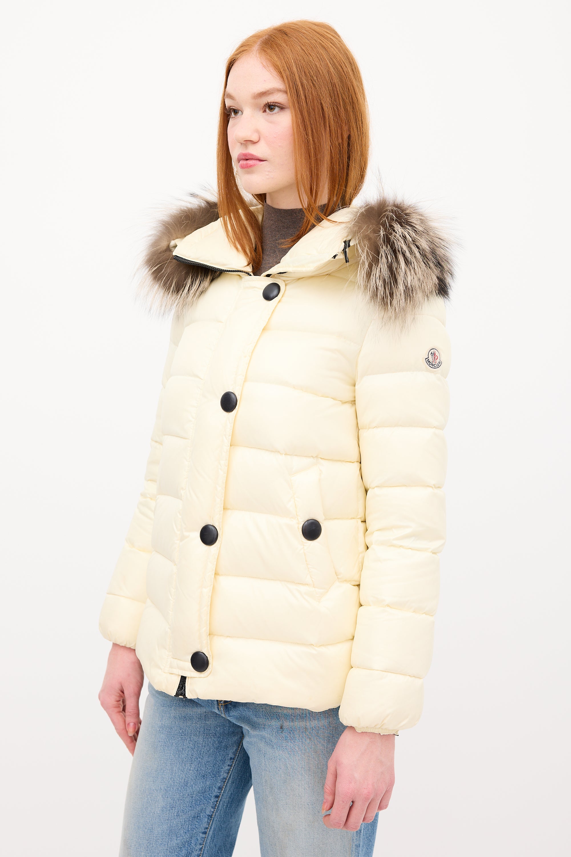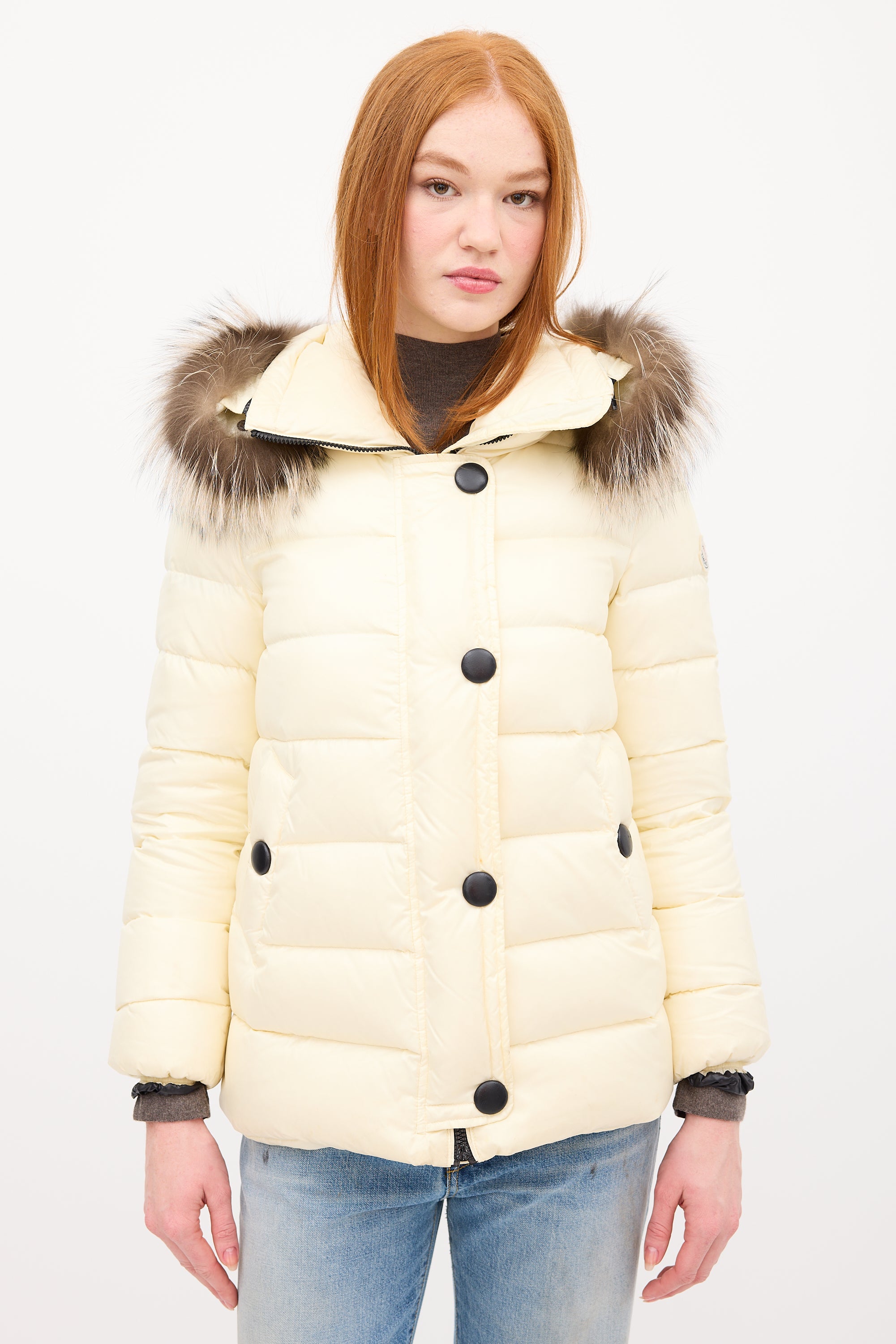 Cream Down & Fur Trim Gelinotte Puffer Jacket X-Small Size Guide