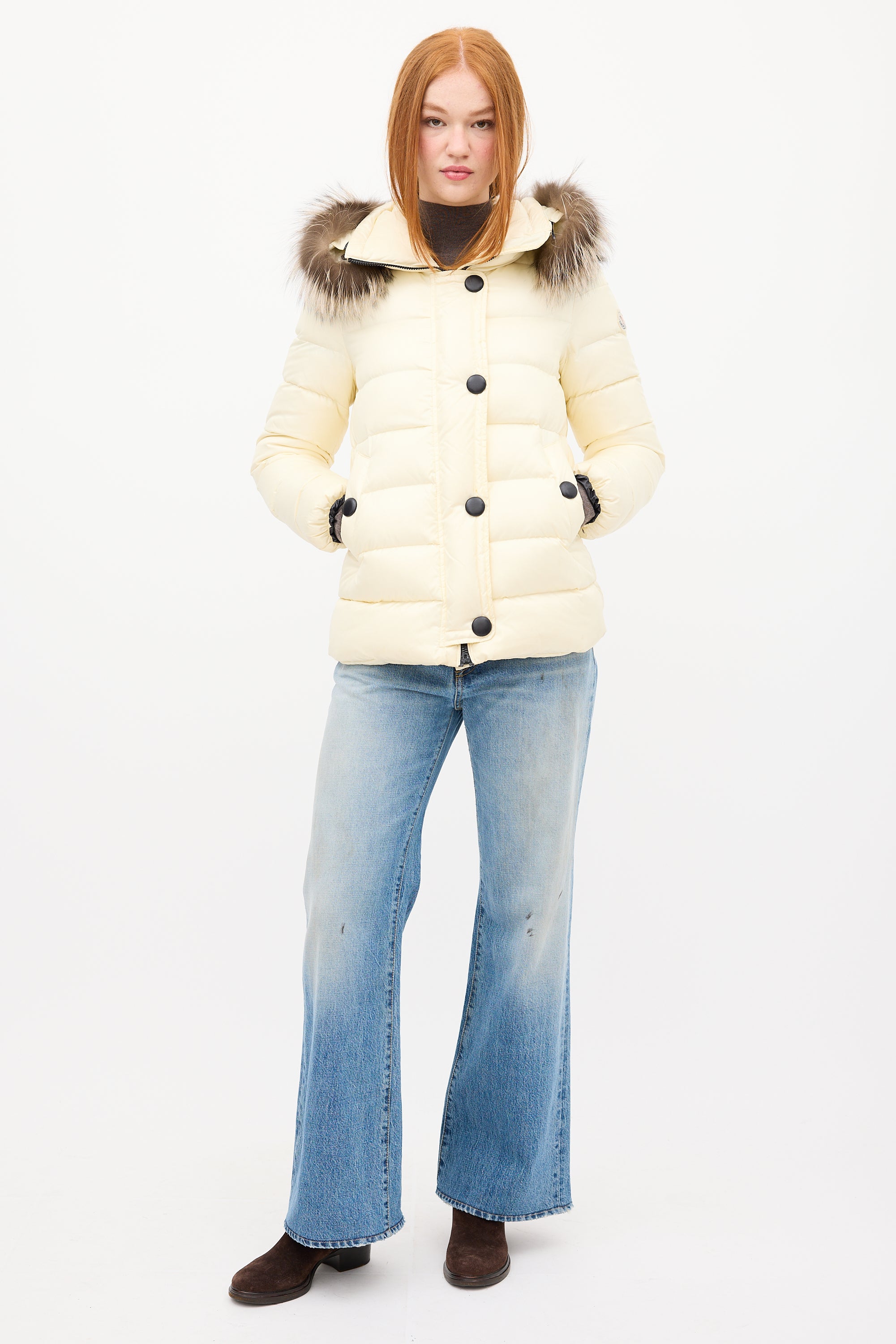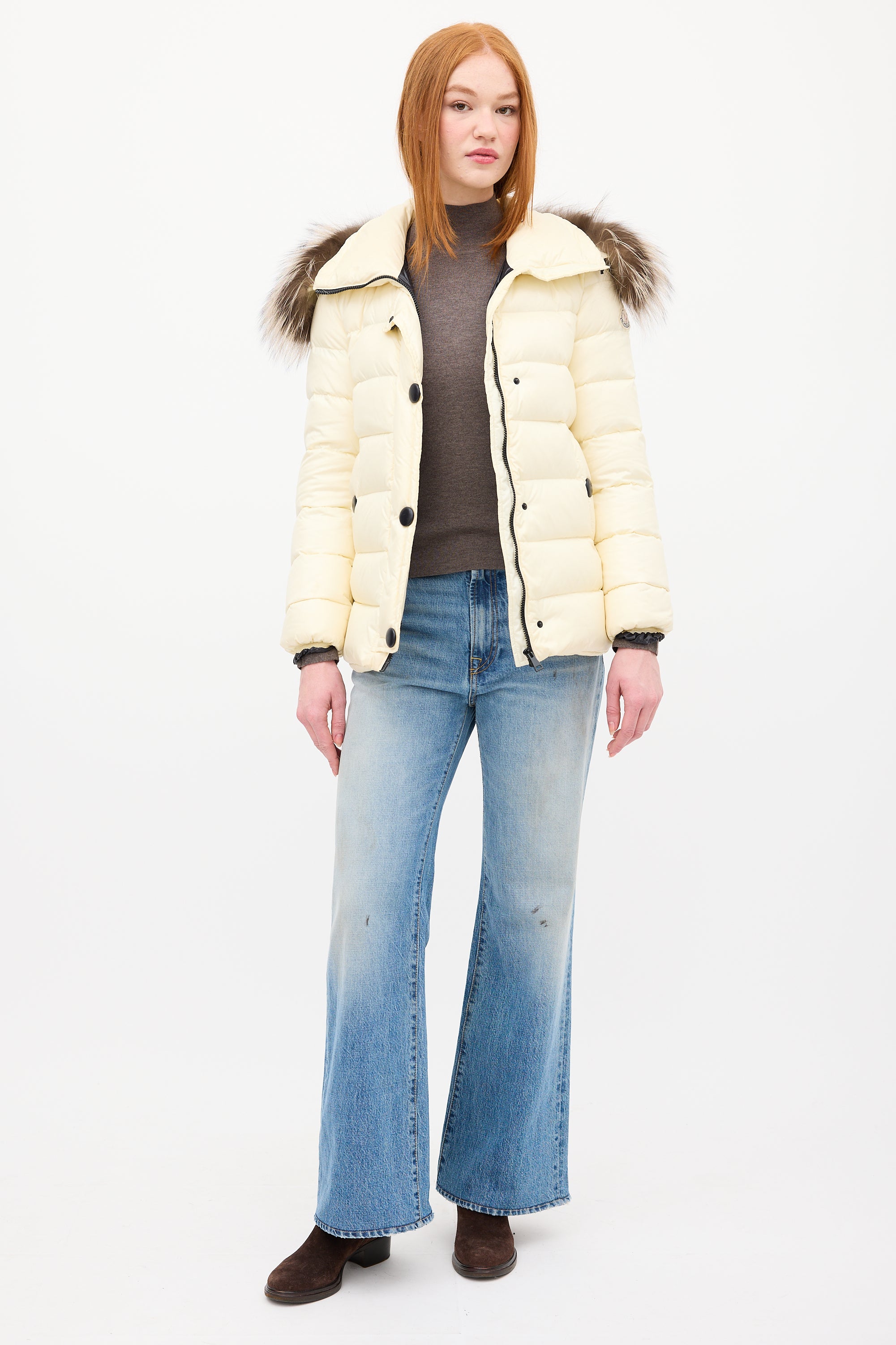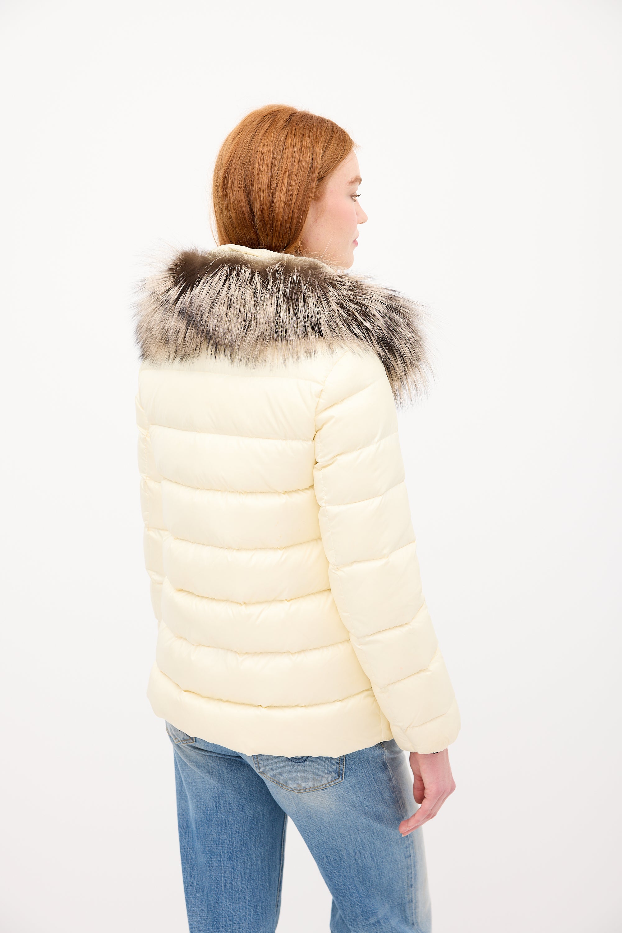 Cream Down & Fur Trim Gelinotte Puffer Jacket X-Small Size Guide