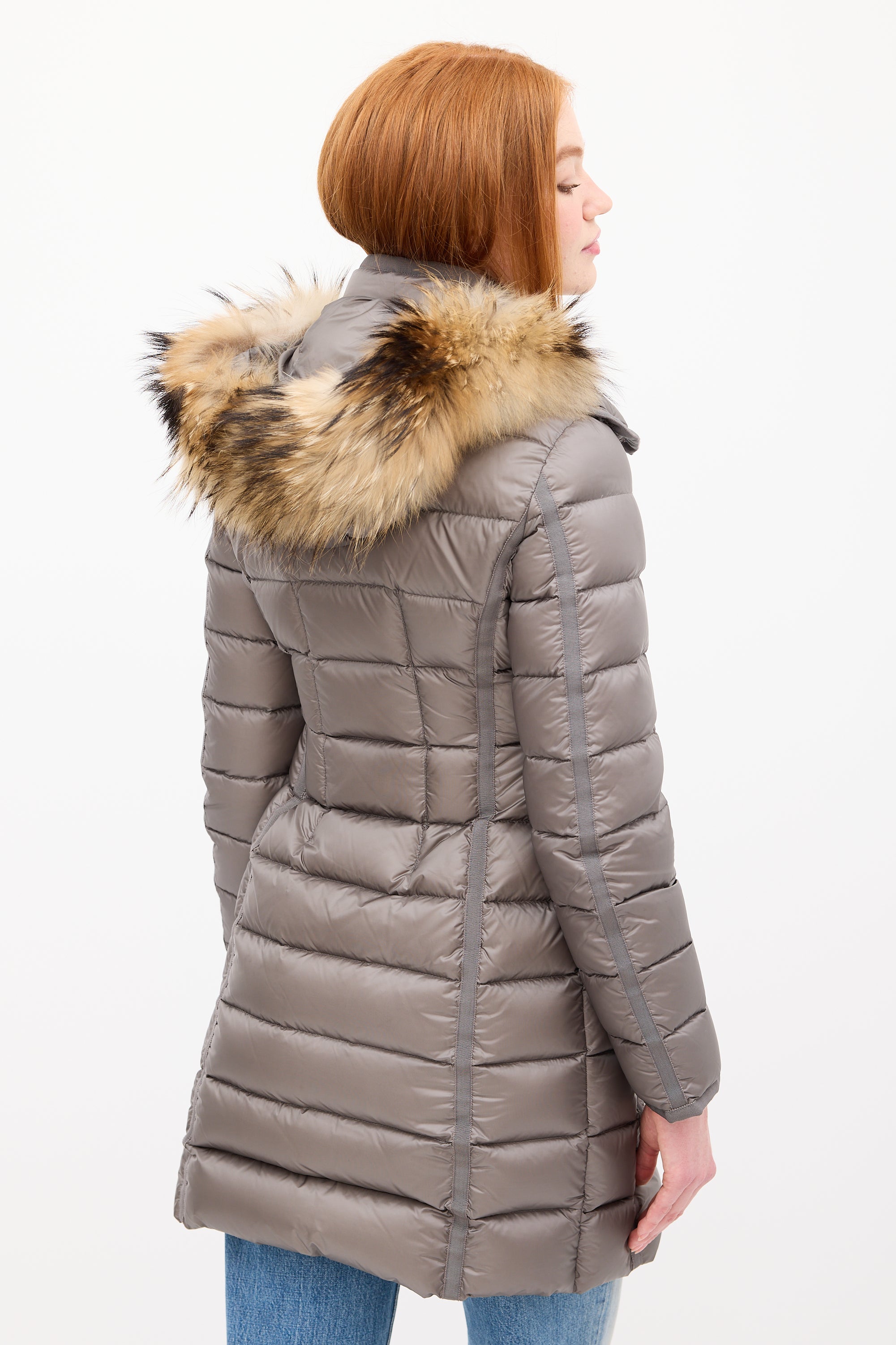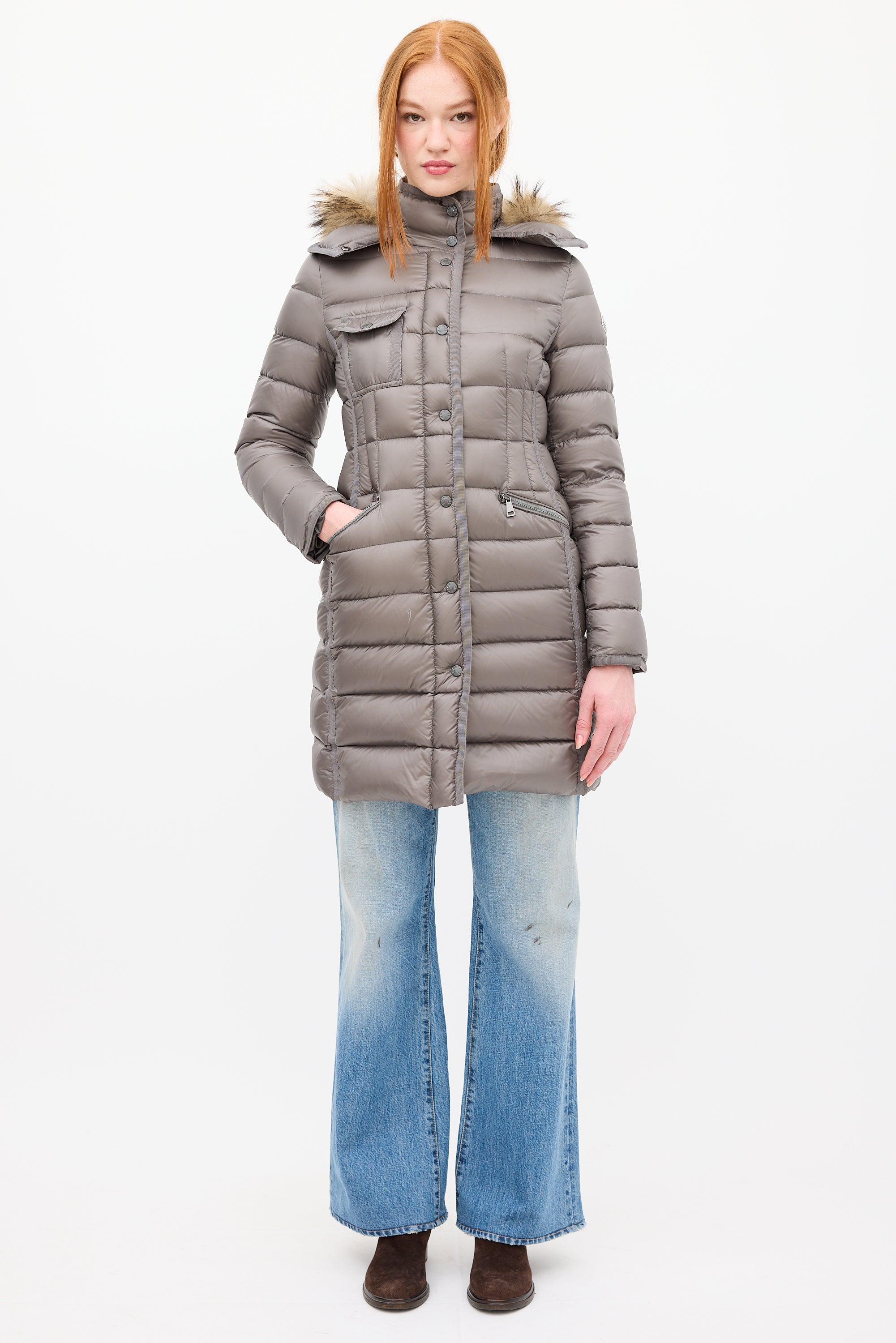 Grey Down & Fur Trim Hemifur Puffer Coat Small Size Guide