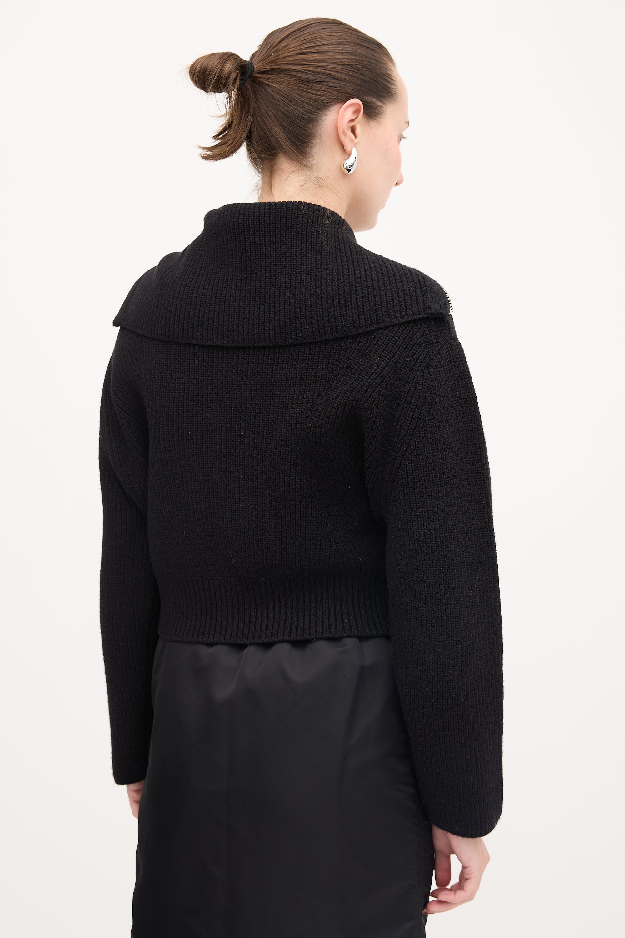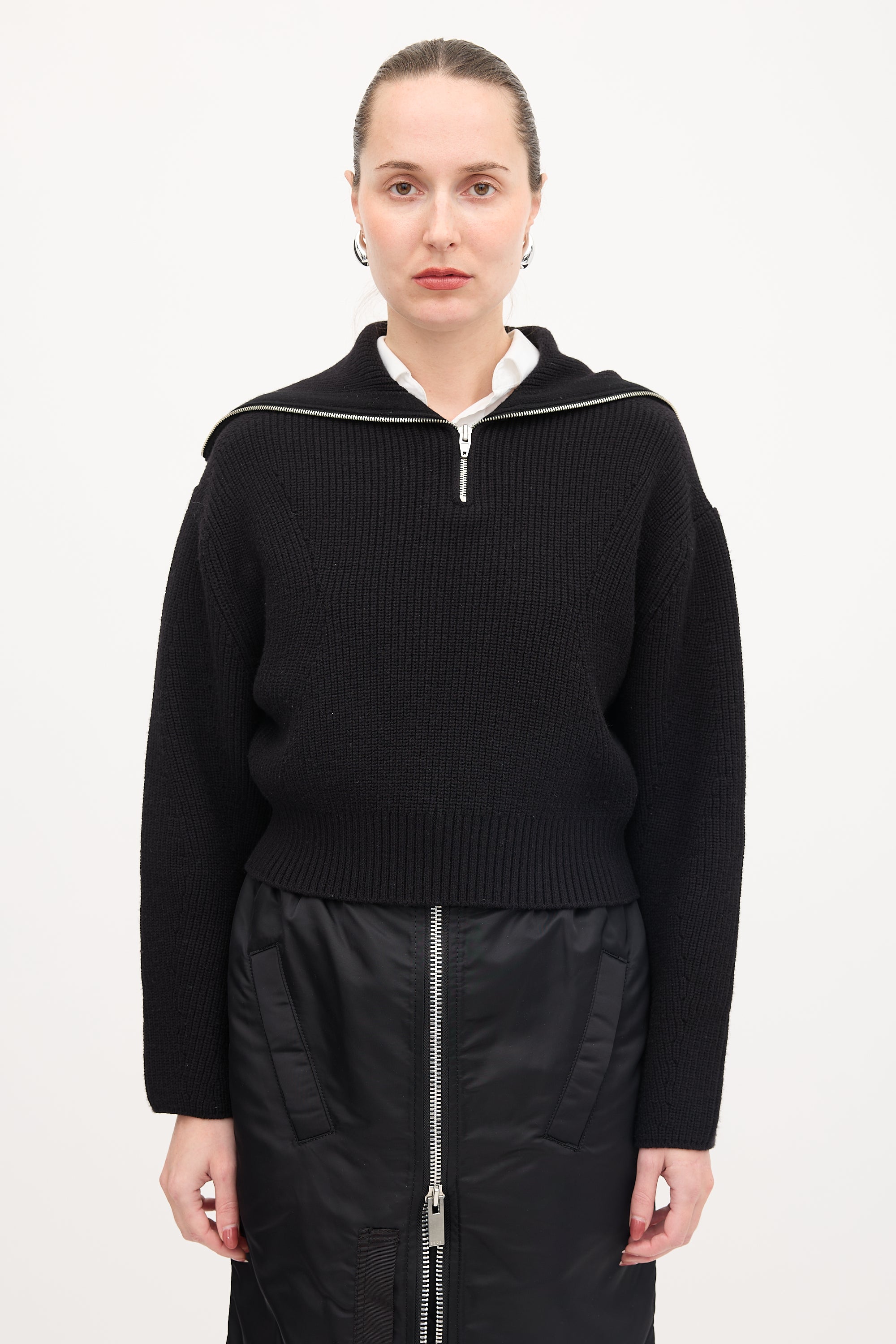 Pre-owned Juun.J black knit sweater featuring zipped funnel neck and ribbed collar and hem.