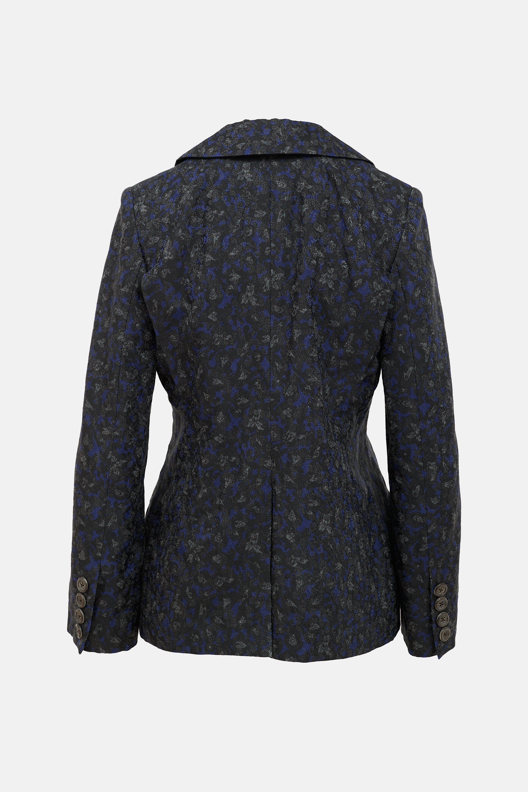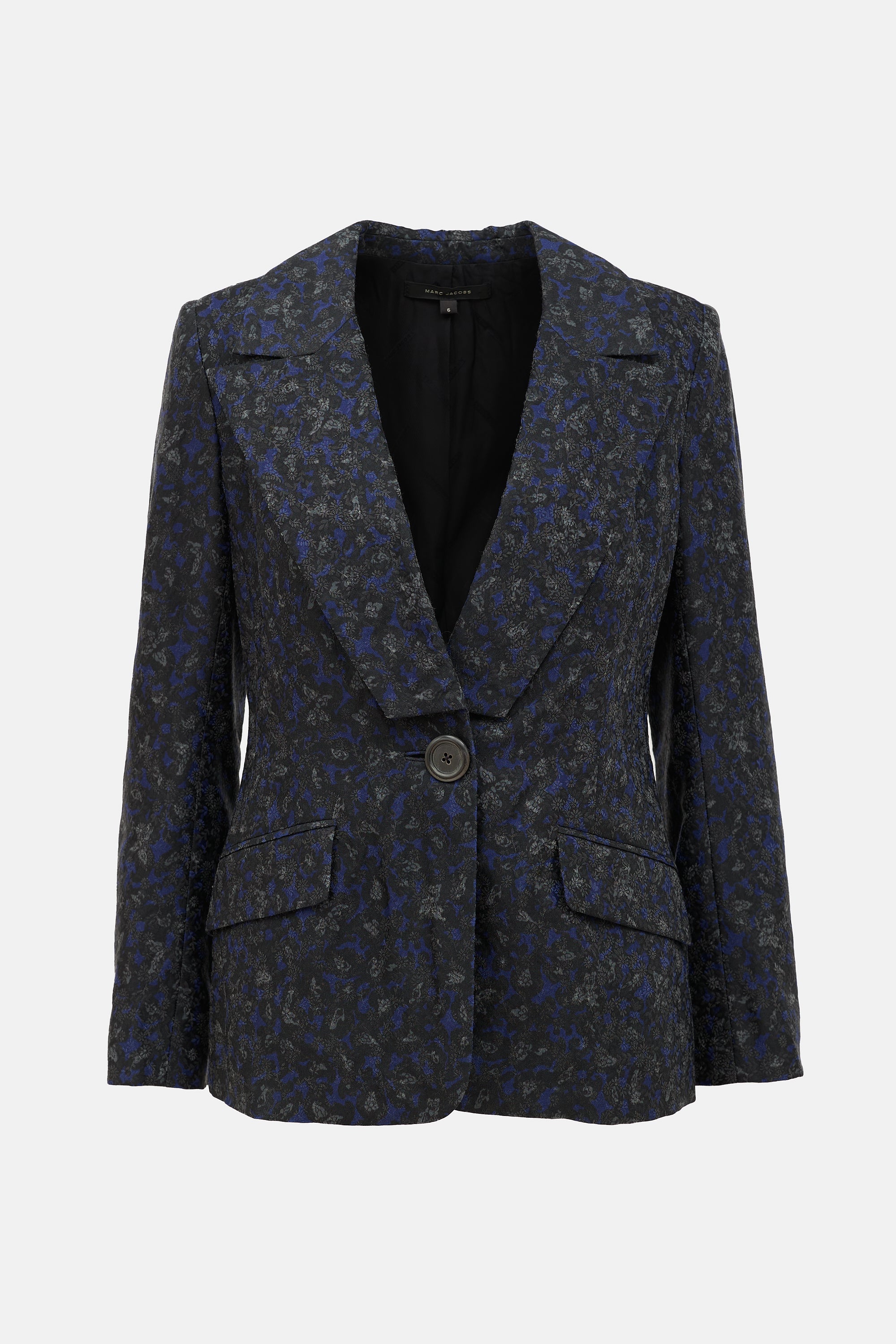 Pre-owned Marc Jacobs multicolour blazer featuring a floral jacquard, wide peak lapel, padded shoulder, single button front, double welt pockets, and back vent. Lined.