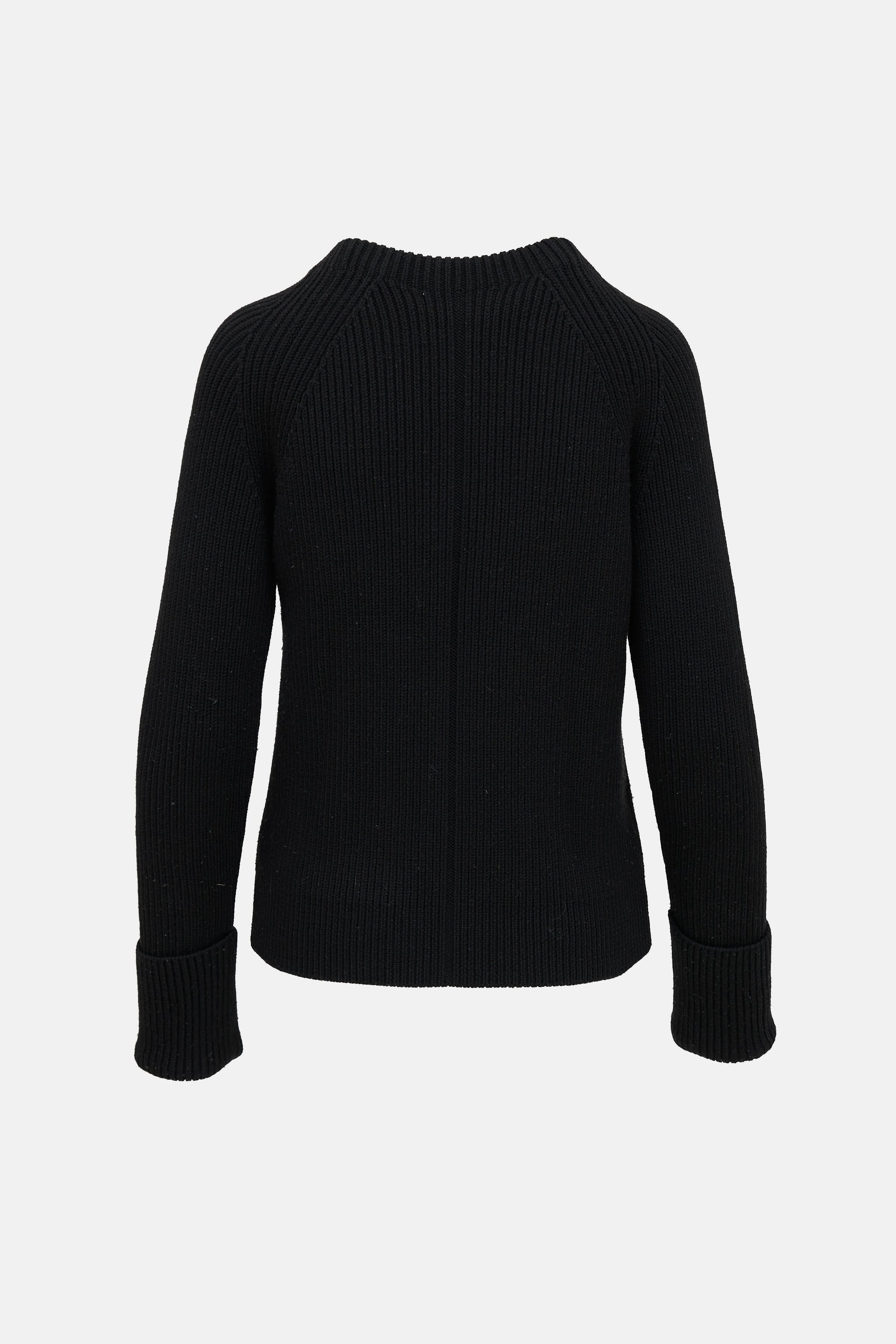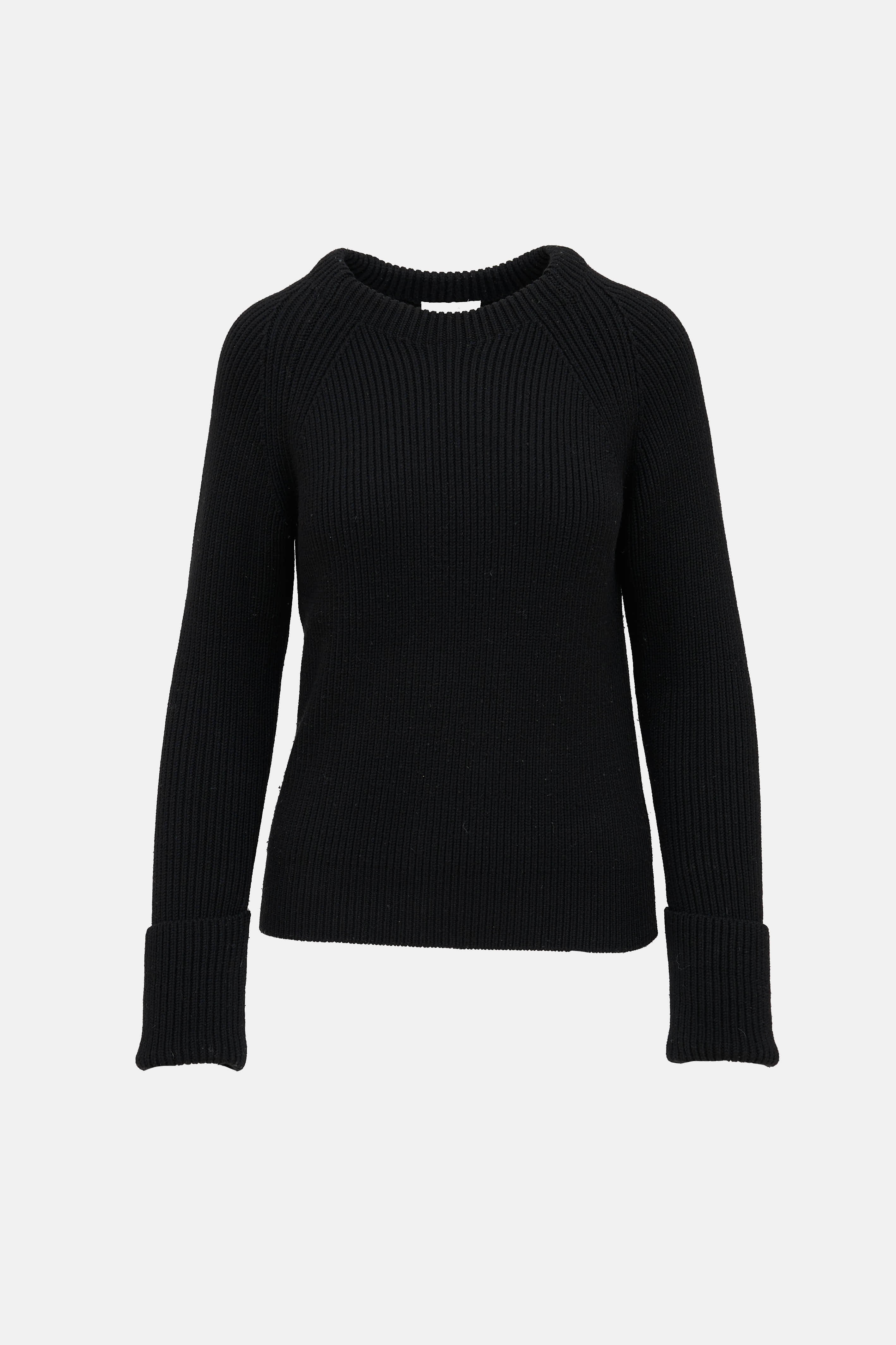Pre-owned The Row black wool Sabra ribbed sweater featuring crew neckline and folded cuffs.