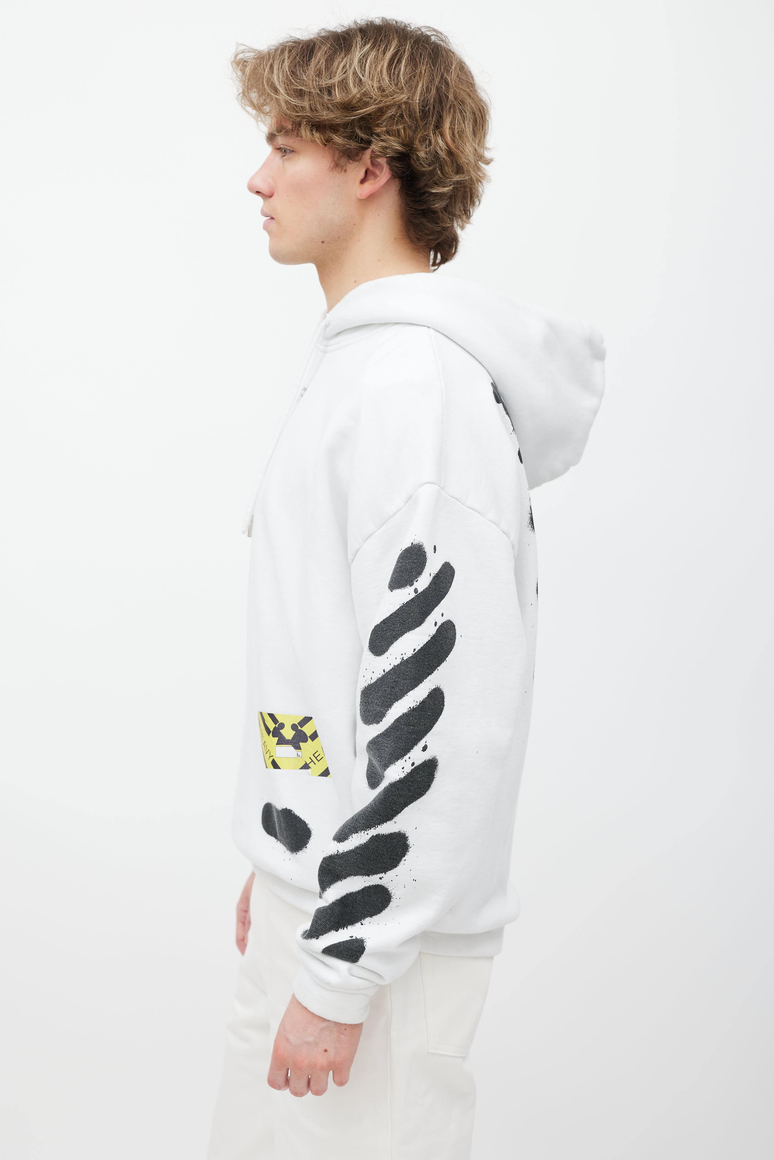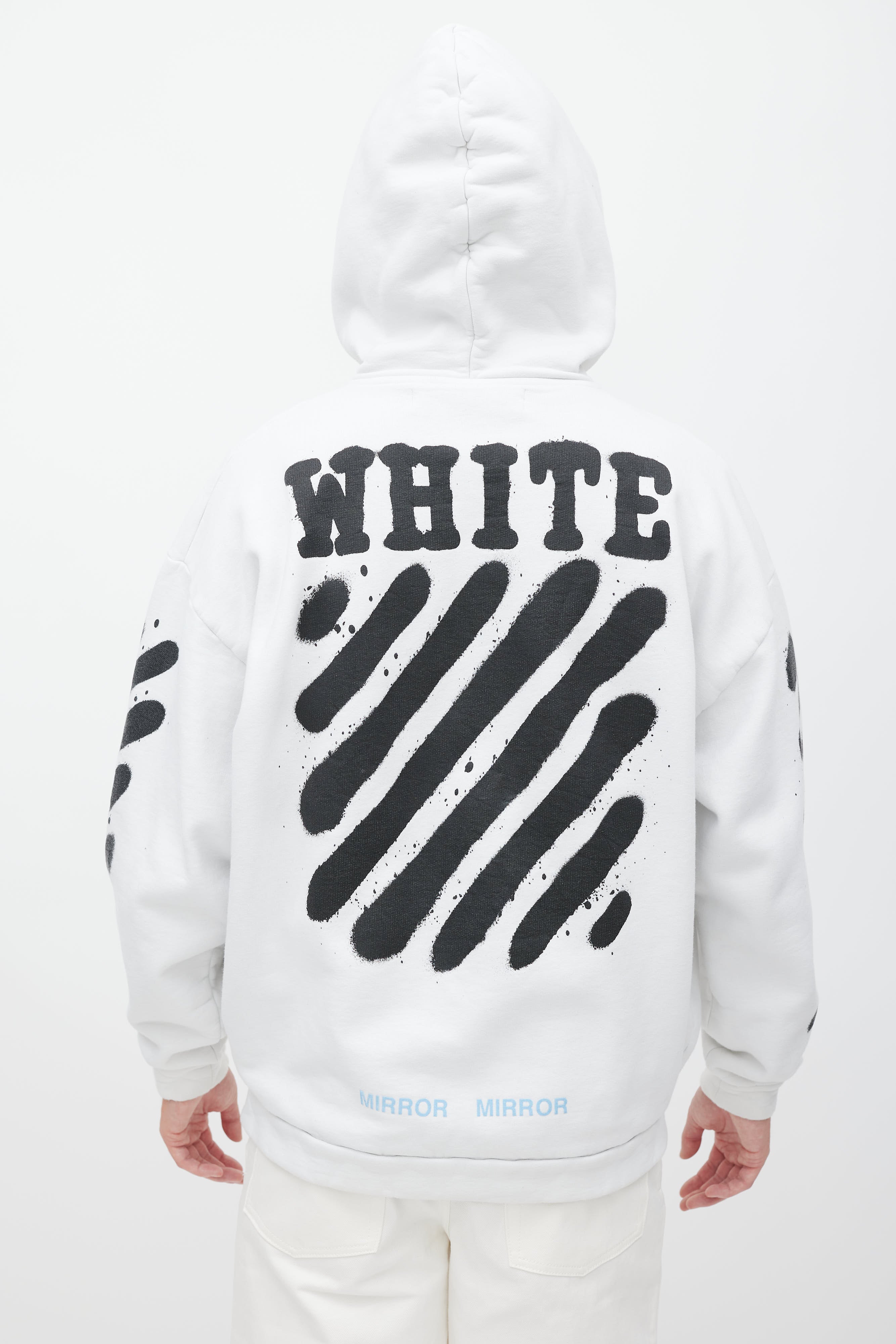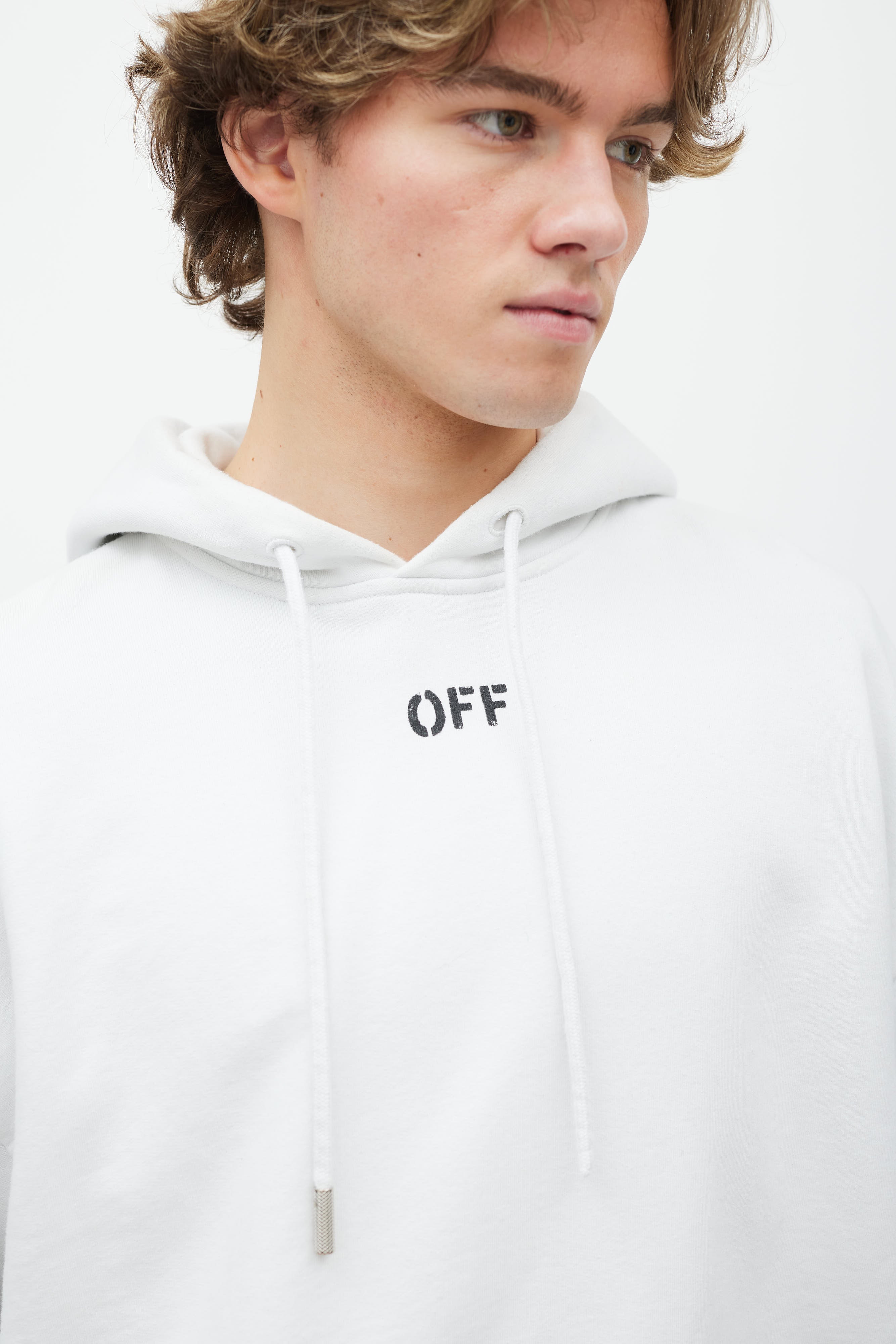 Pre-owned Off-White white cotton hoodie featuring drawstring at hood, logo printed at chest, graphic printed at front, back and sleeves, and rib knit at cuffs and hem.