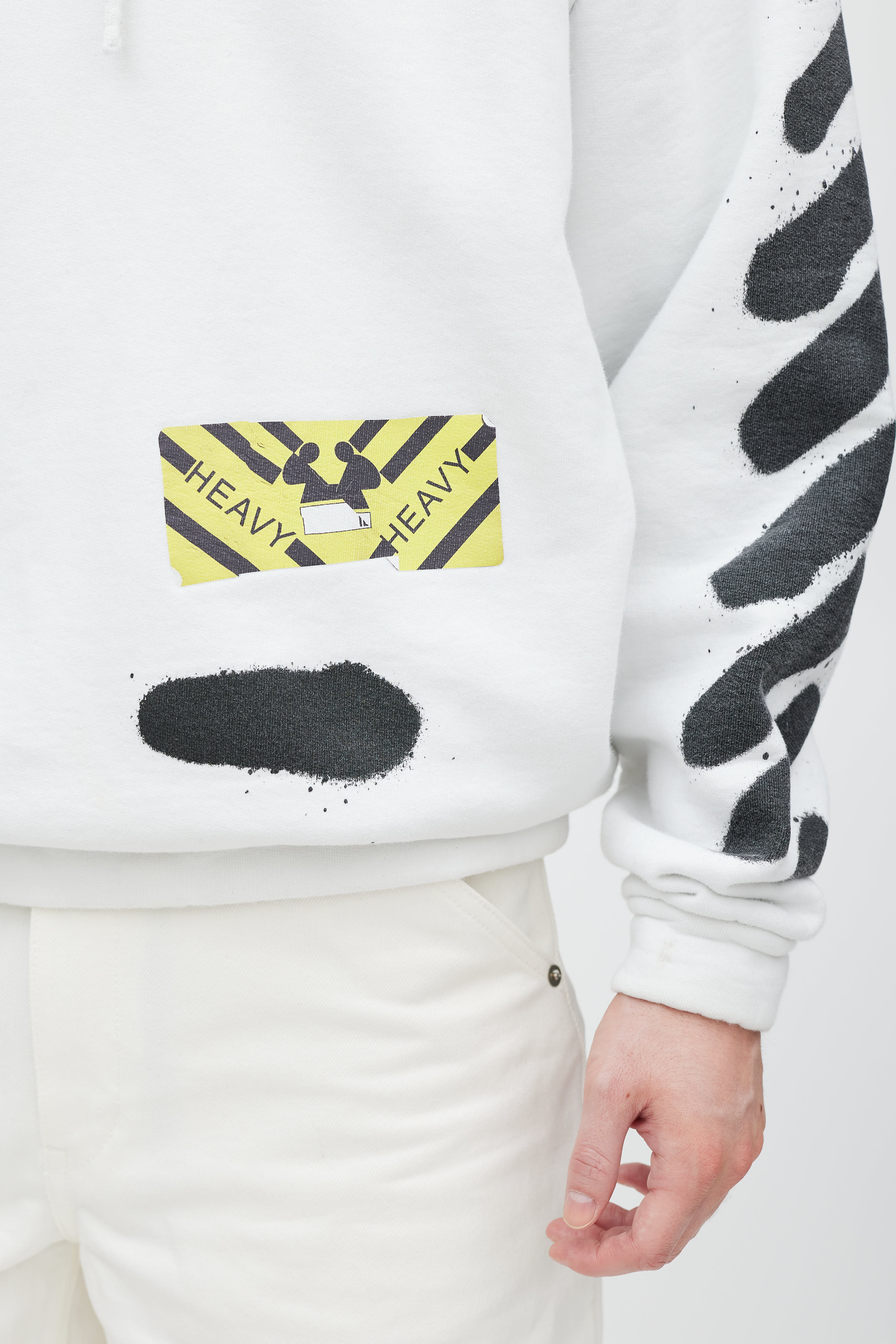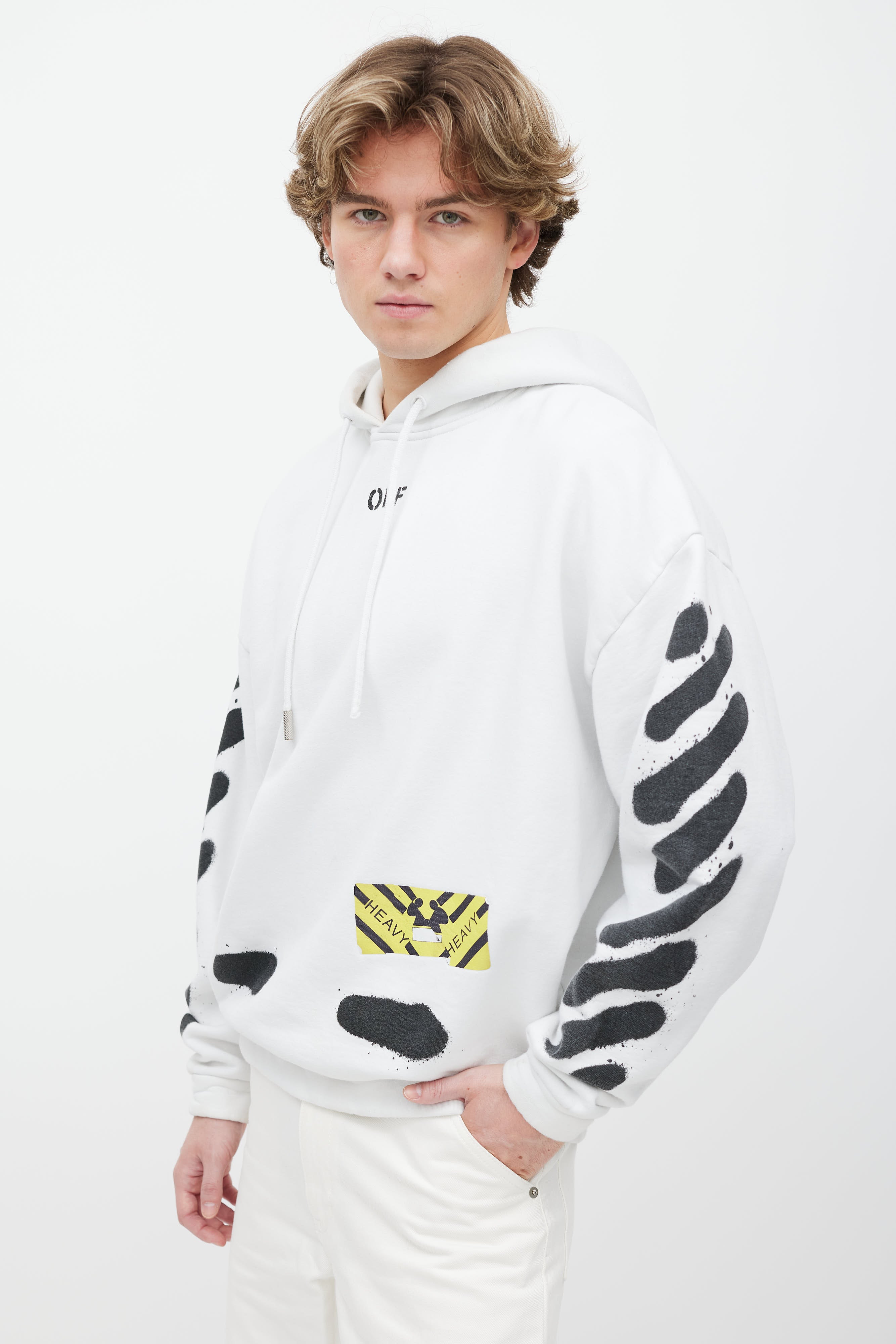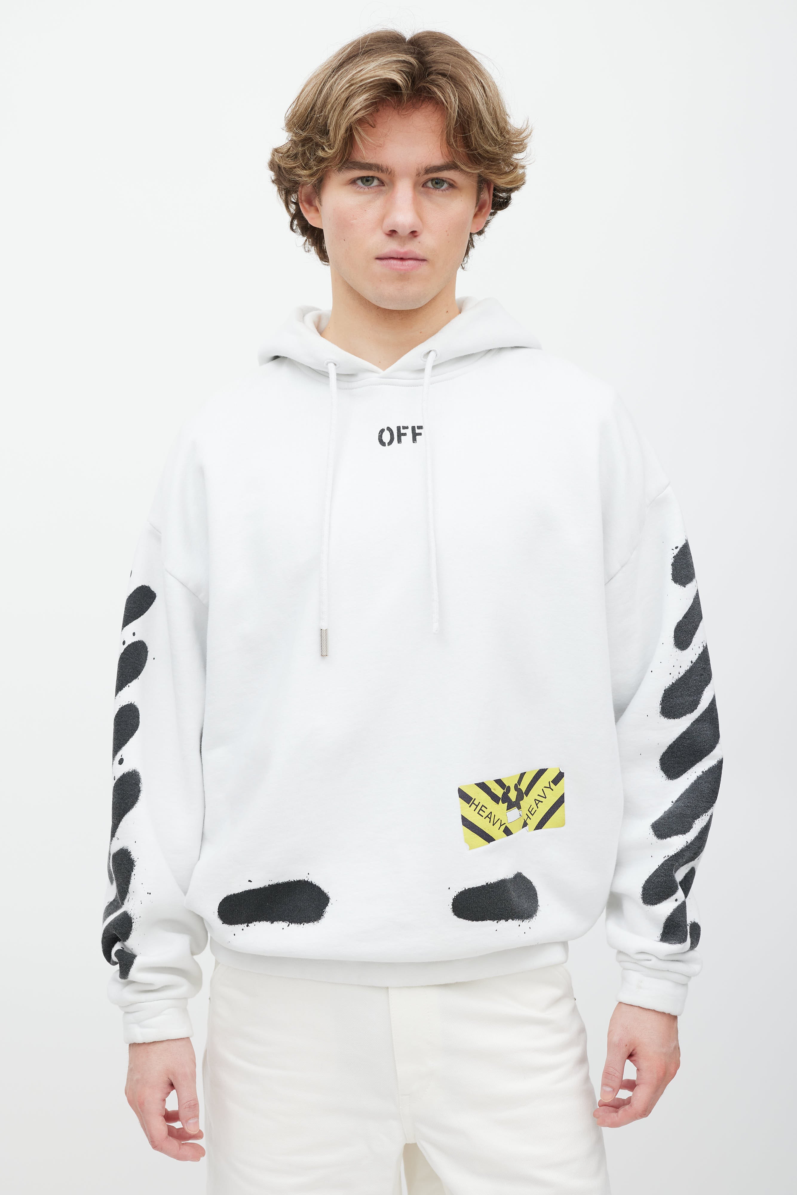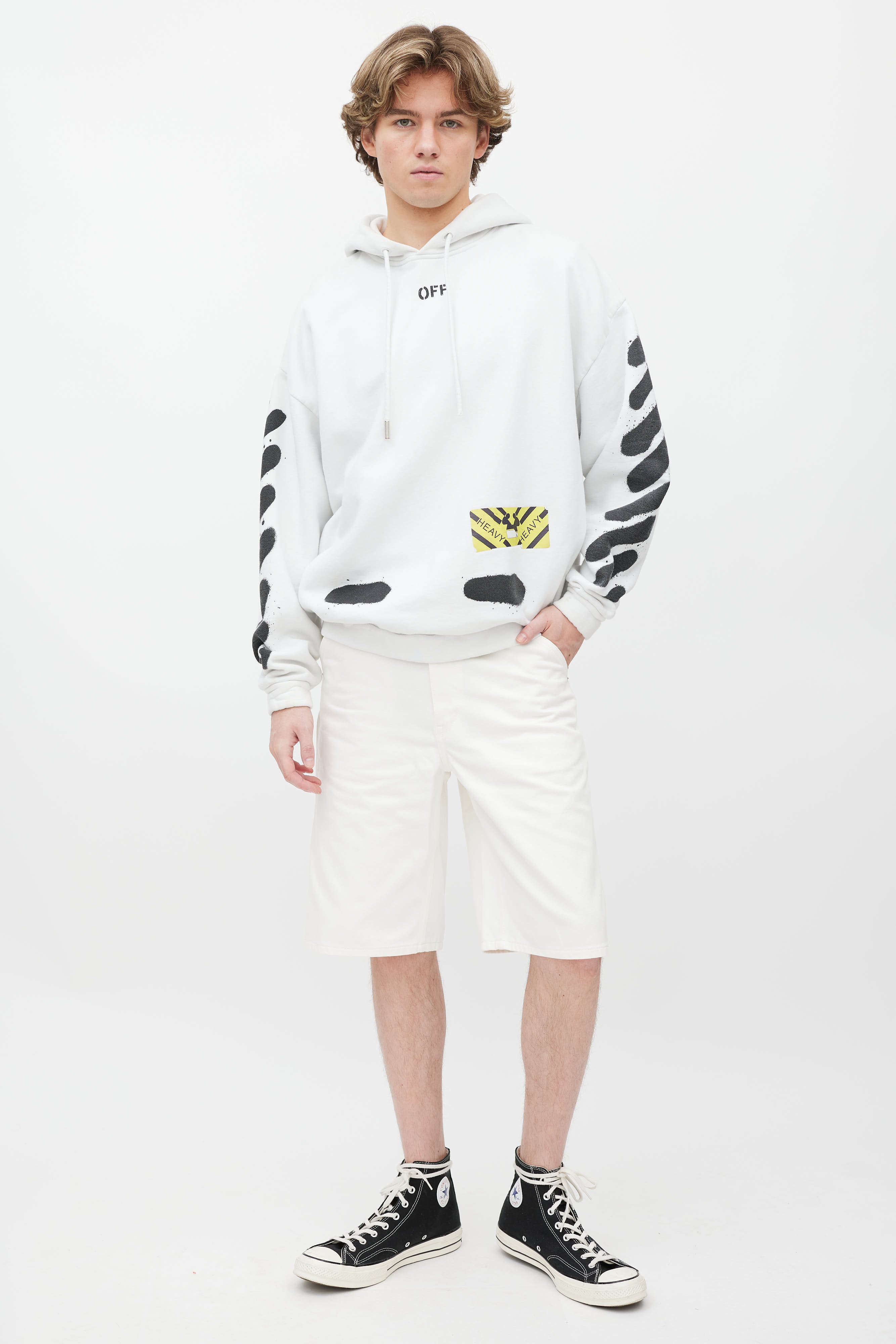 Pre-owned Off-White white cotton hoodie featuring drawstring at hood, logo printed at chest, graphic printed at front, back and sleeves, and rib knit at cuffs and hem.