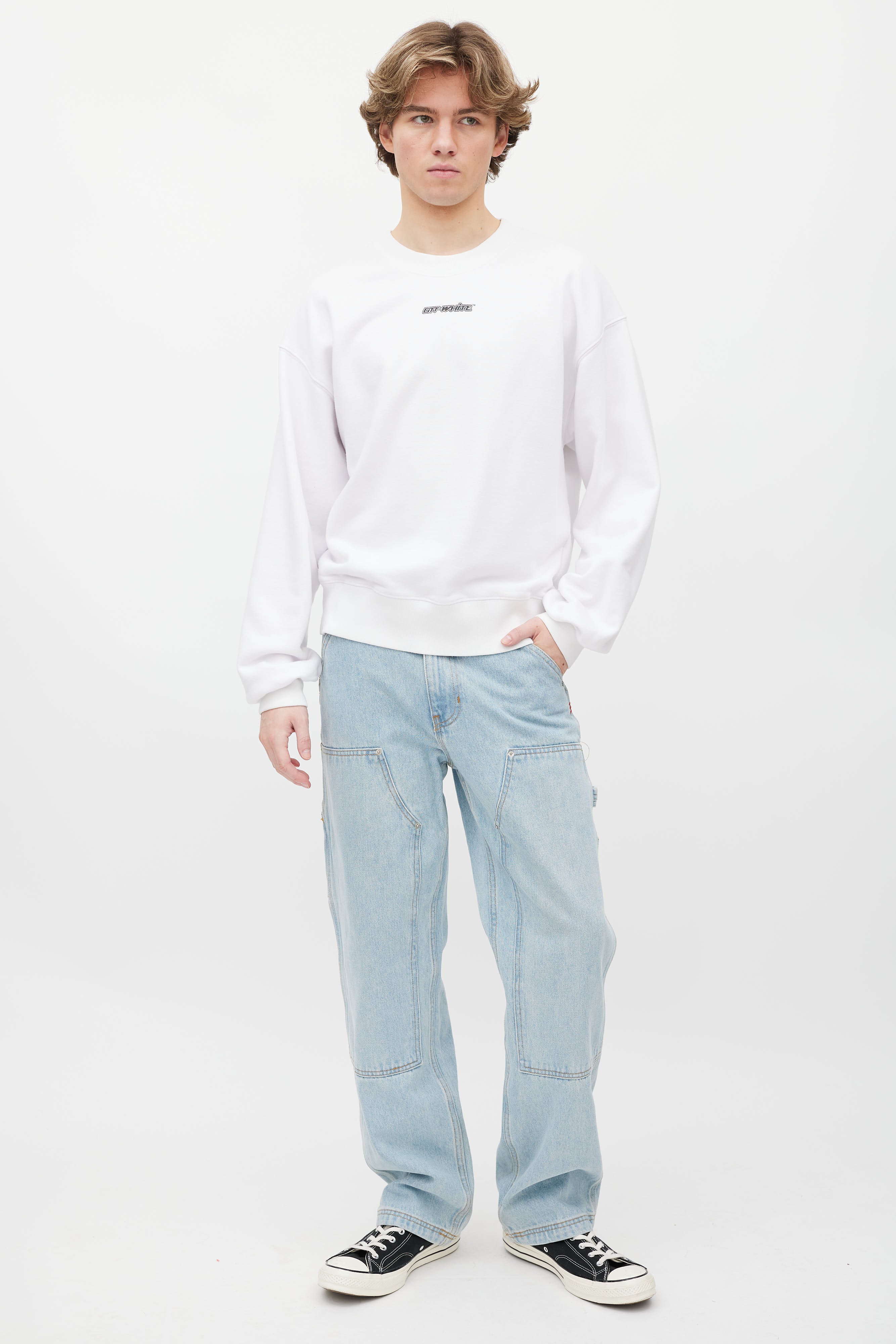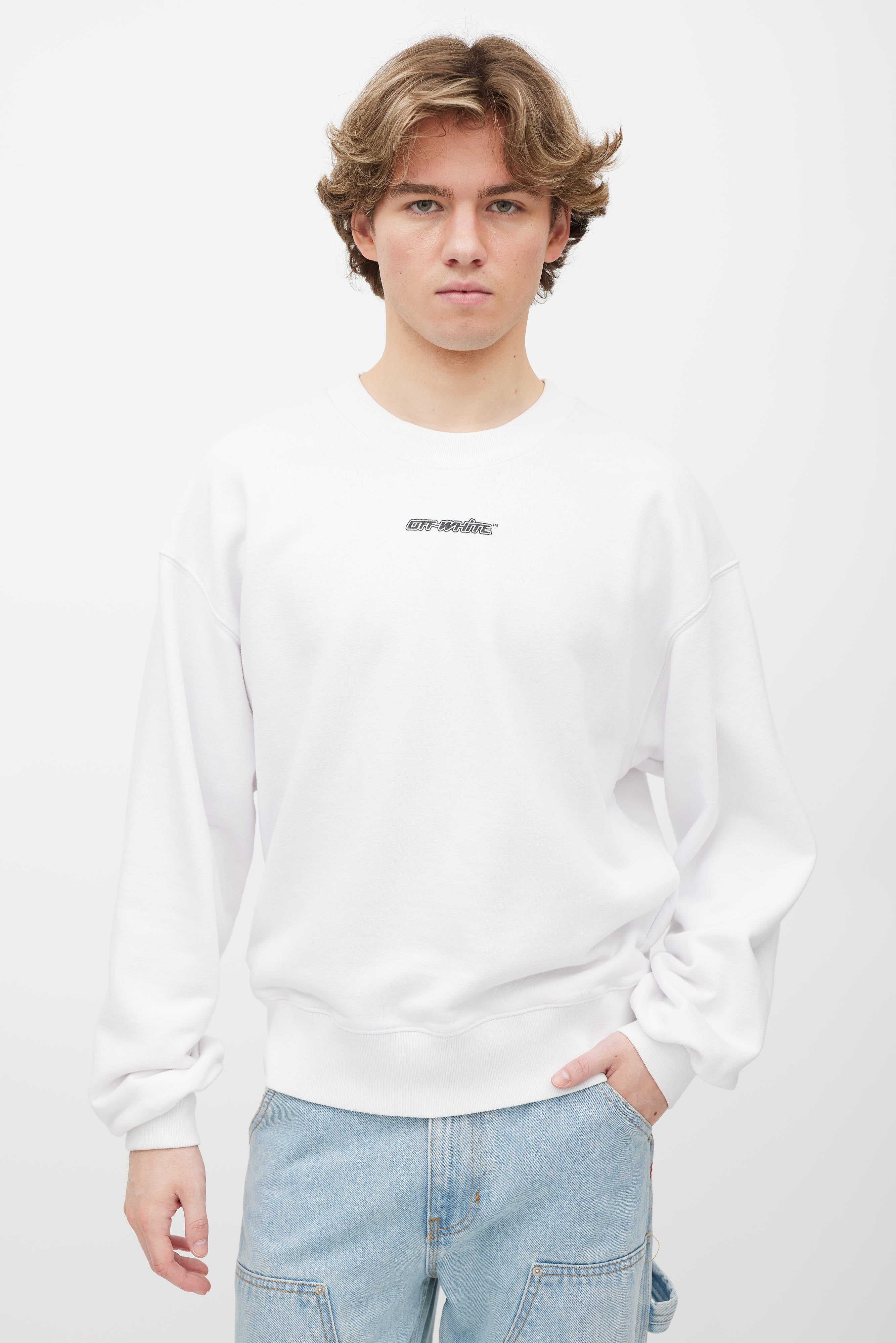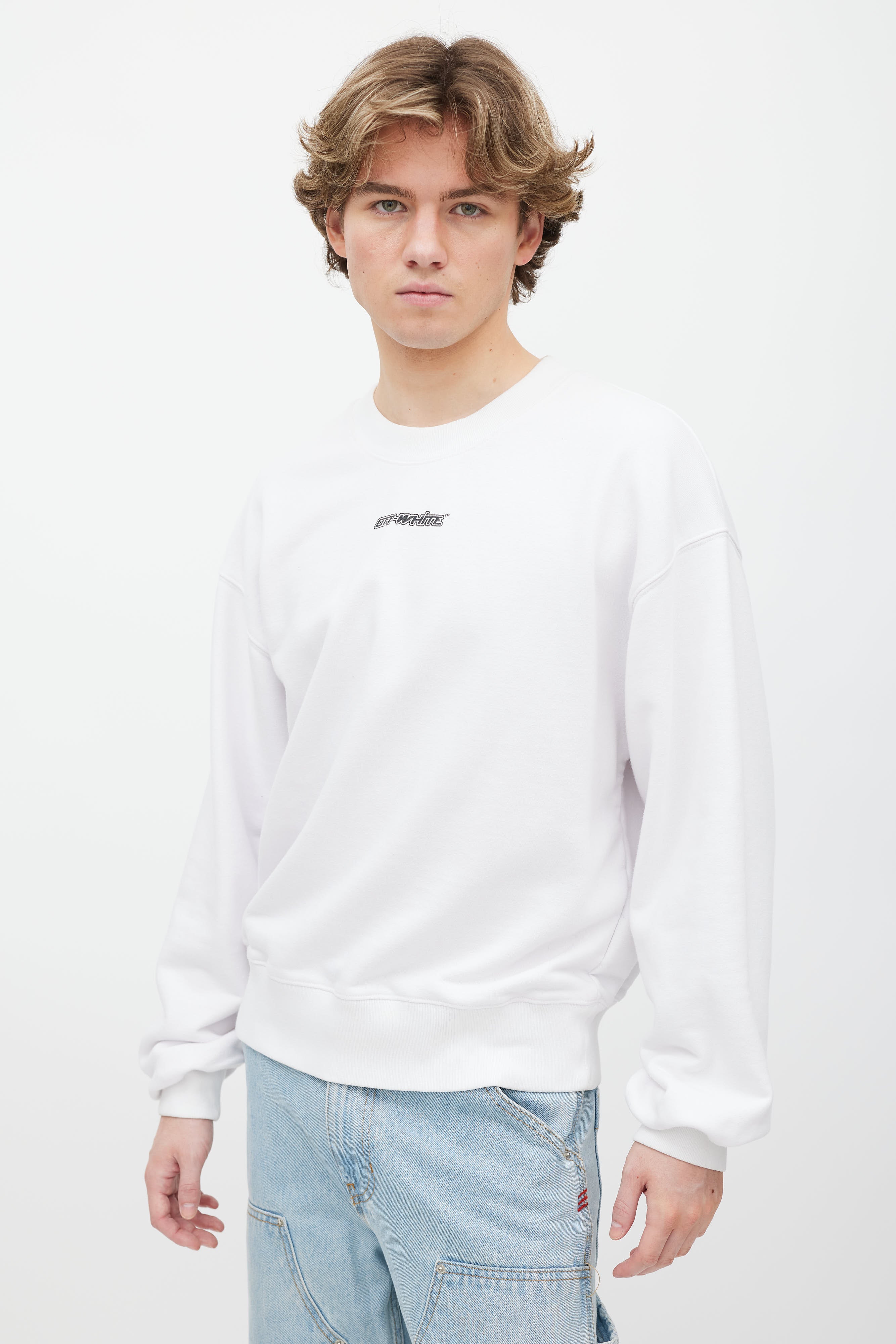 Pre-owned Off-White white cotton sweatshirt featuring crewneck, logo at chest and back, and rib knit at neckline, cuffs and hemline.