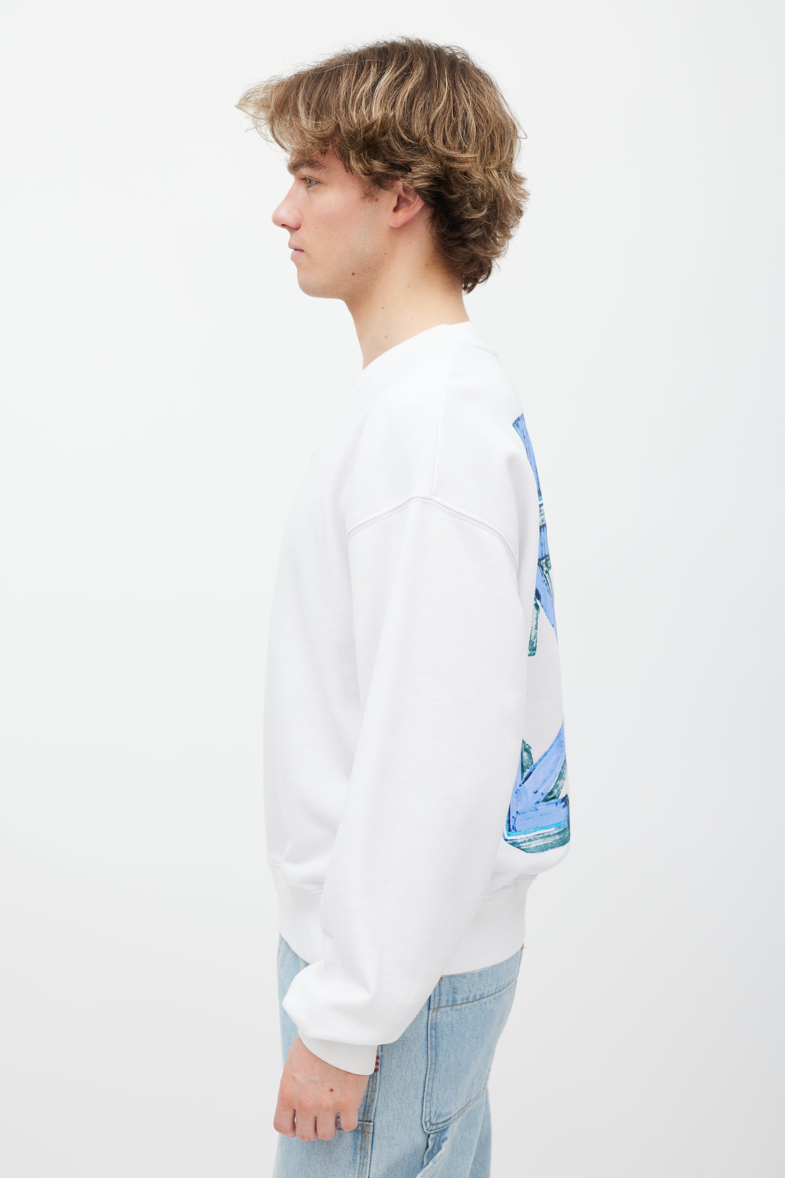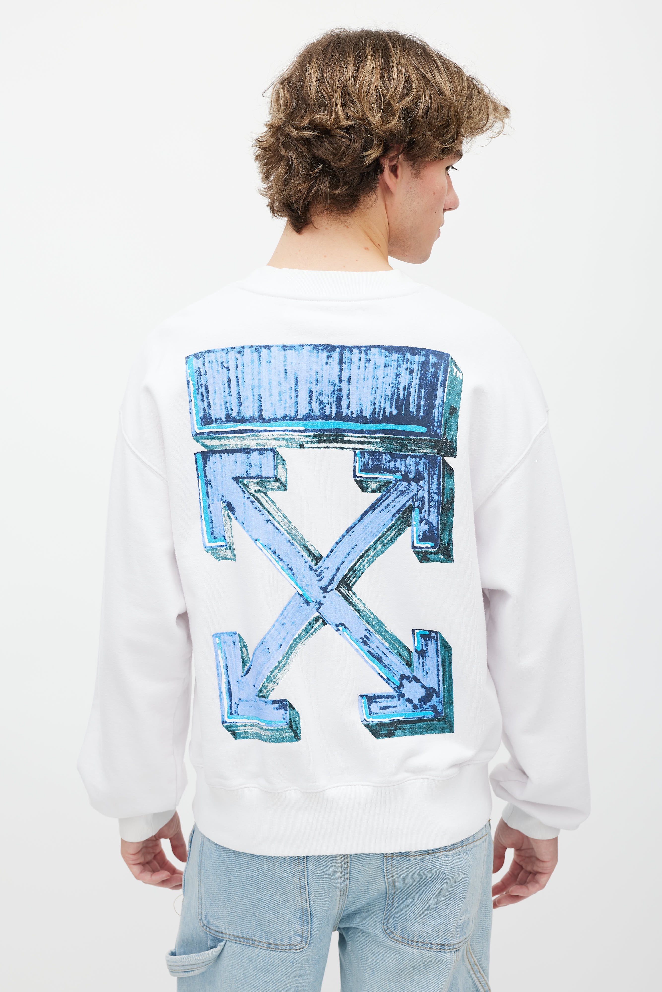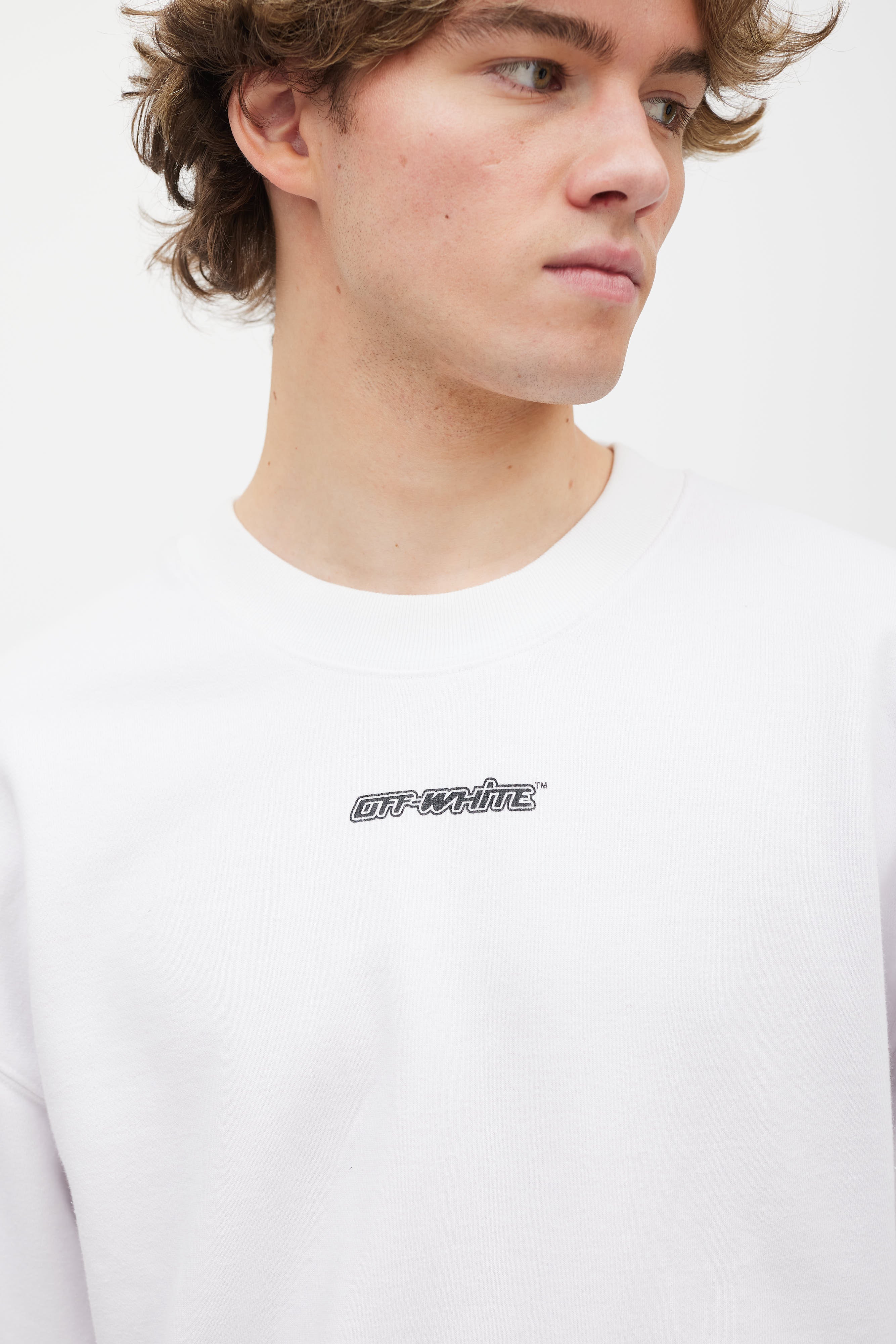 Pre-owned Off-White white cotton sweatshirt featuring crewneck, logo at chest and back, and rib knit at neckline, cuffs and hemline.