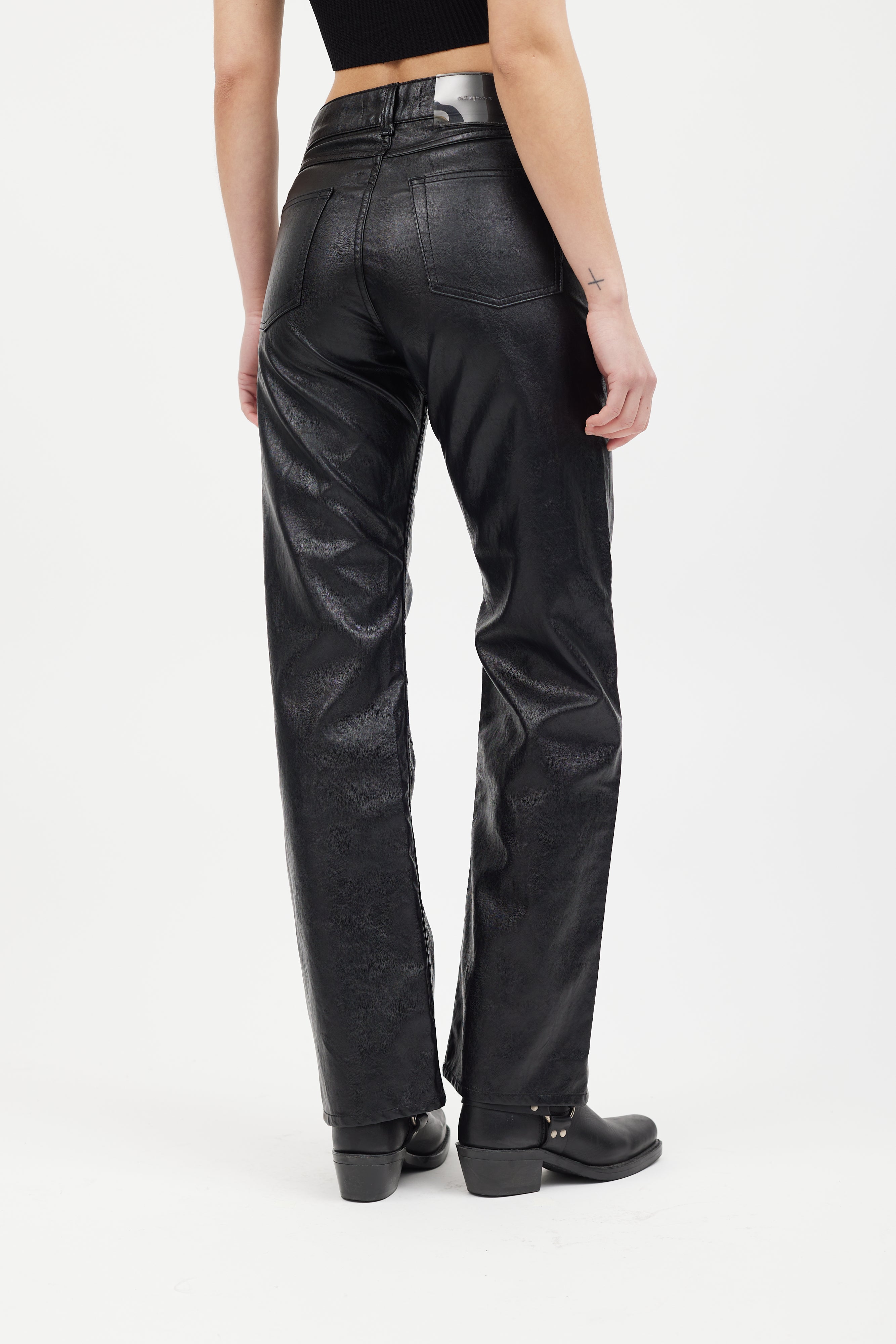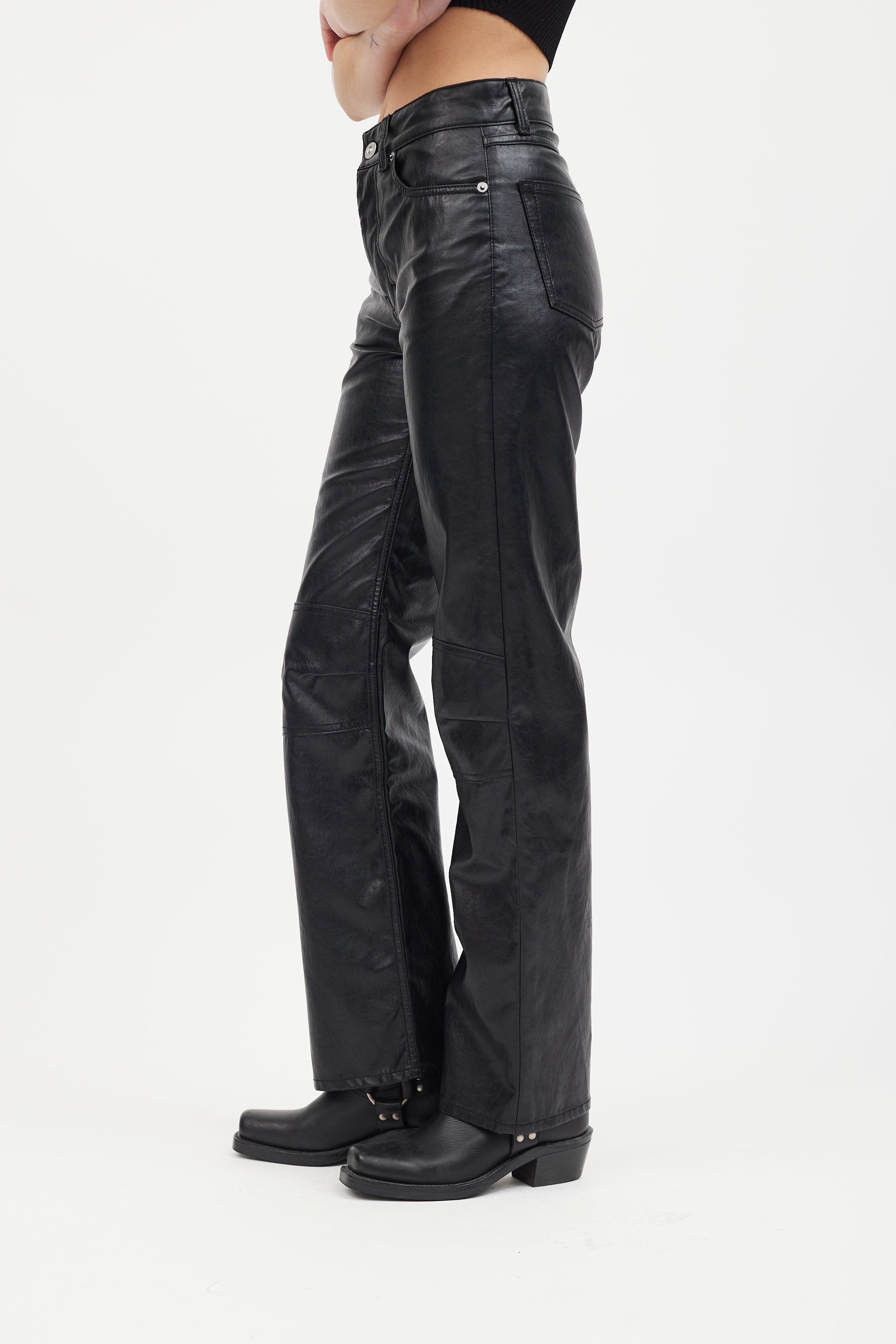 Black Faux Leather Linear Moto Pant US Waist 25 Size Guide