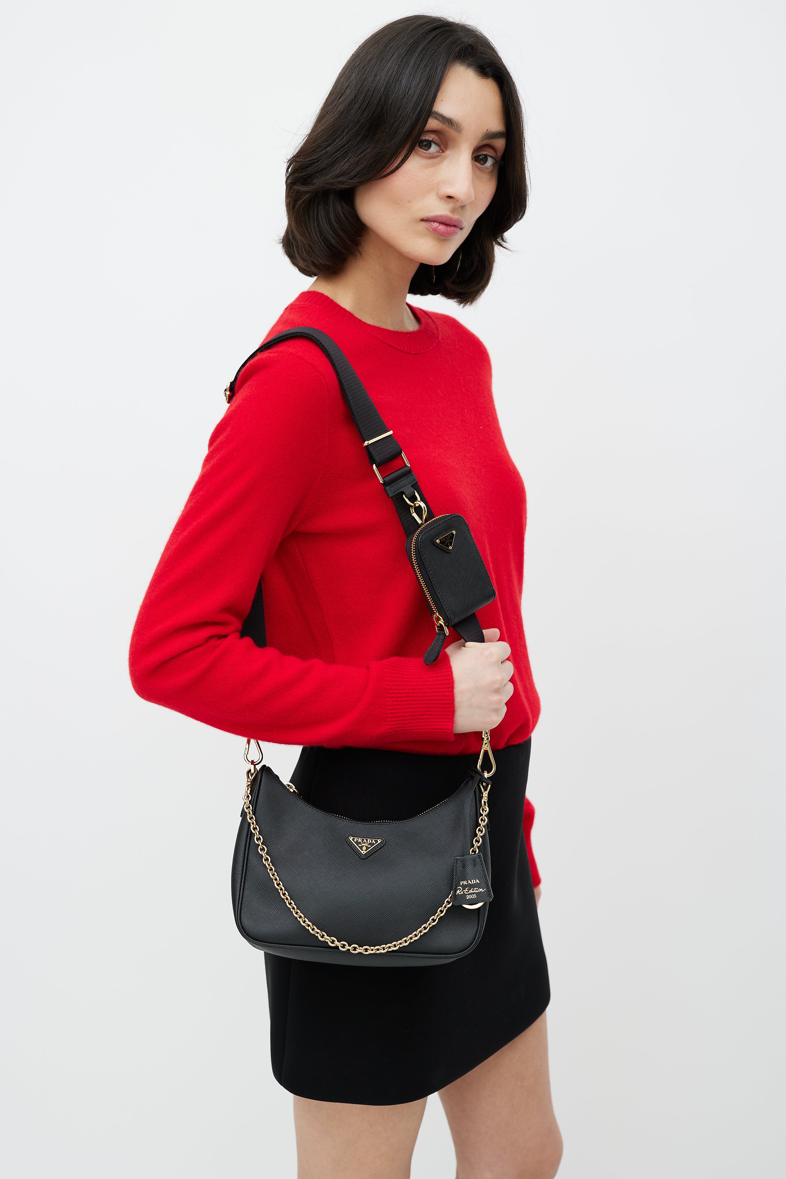 Black Saffiano Leather Re-Edition 2005 Shoulder Bag