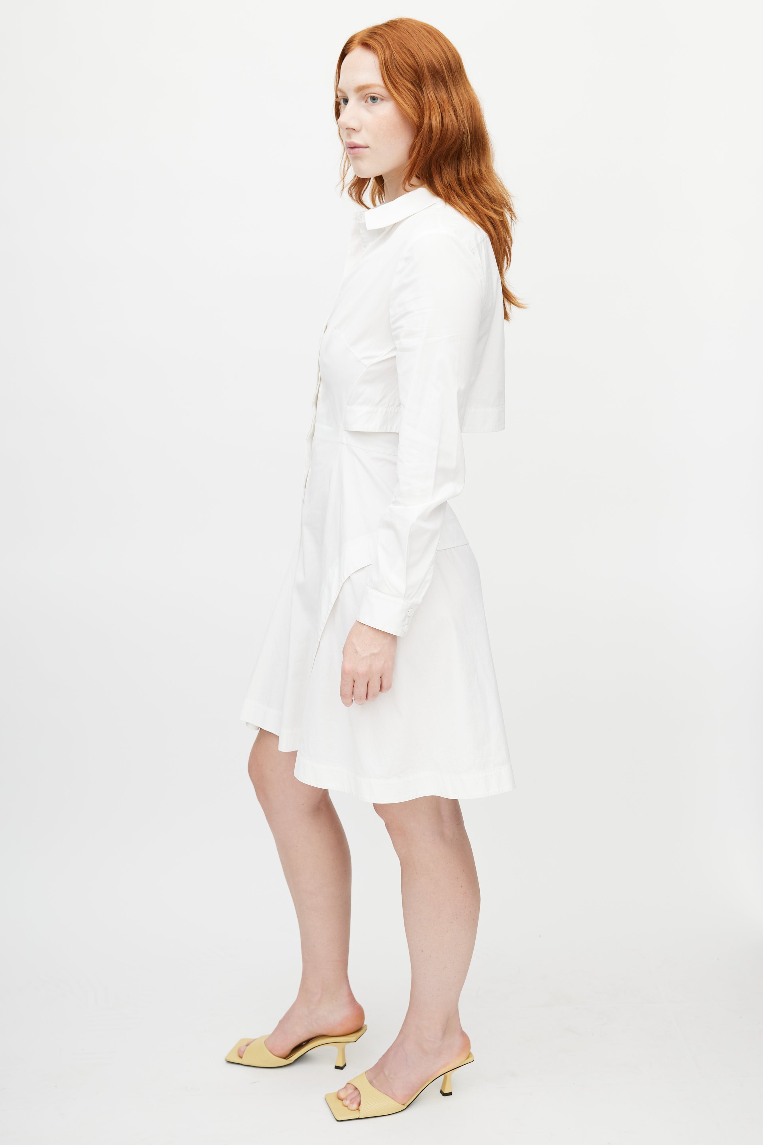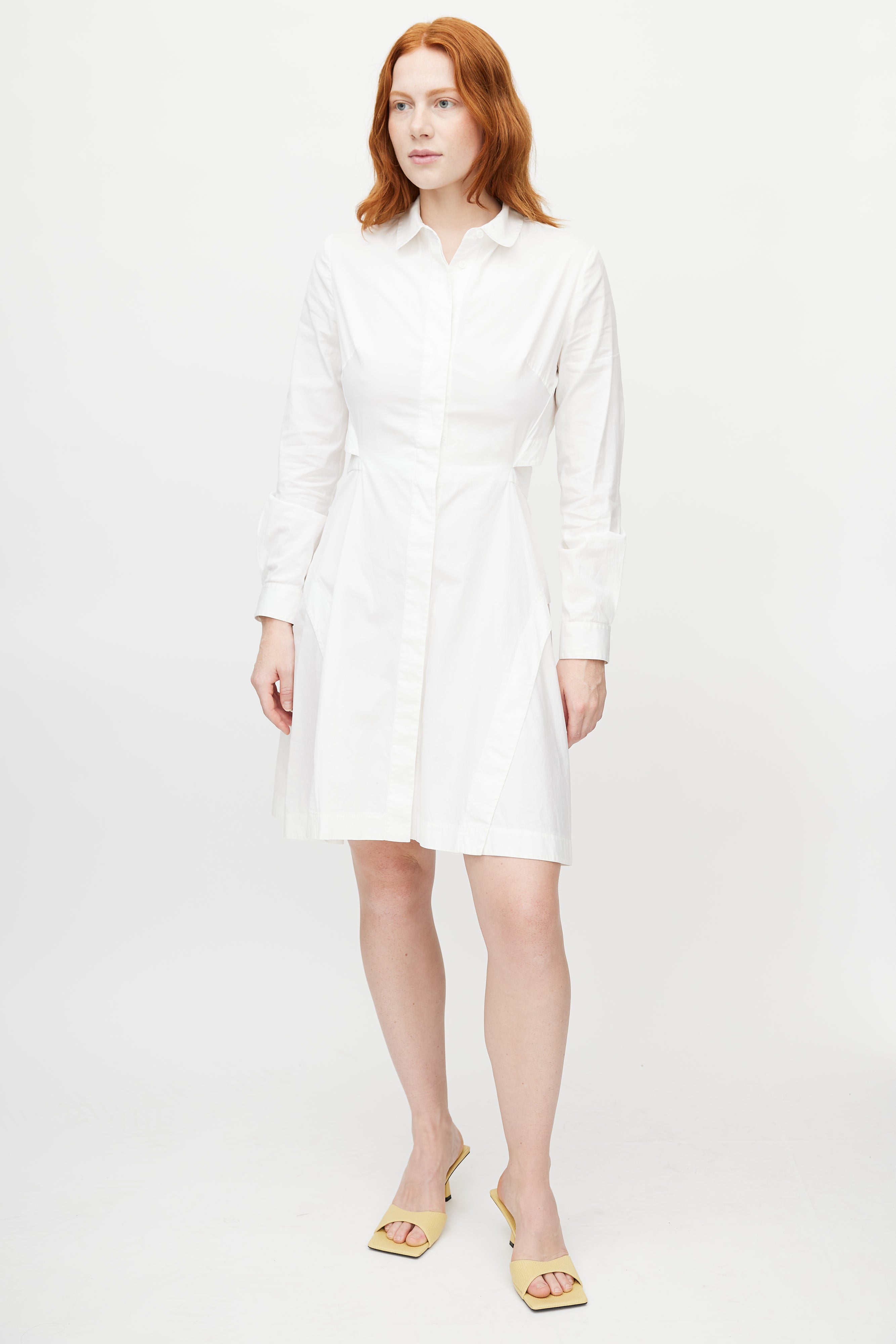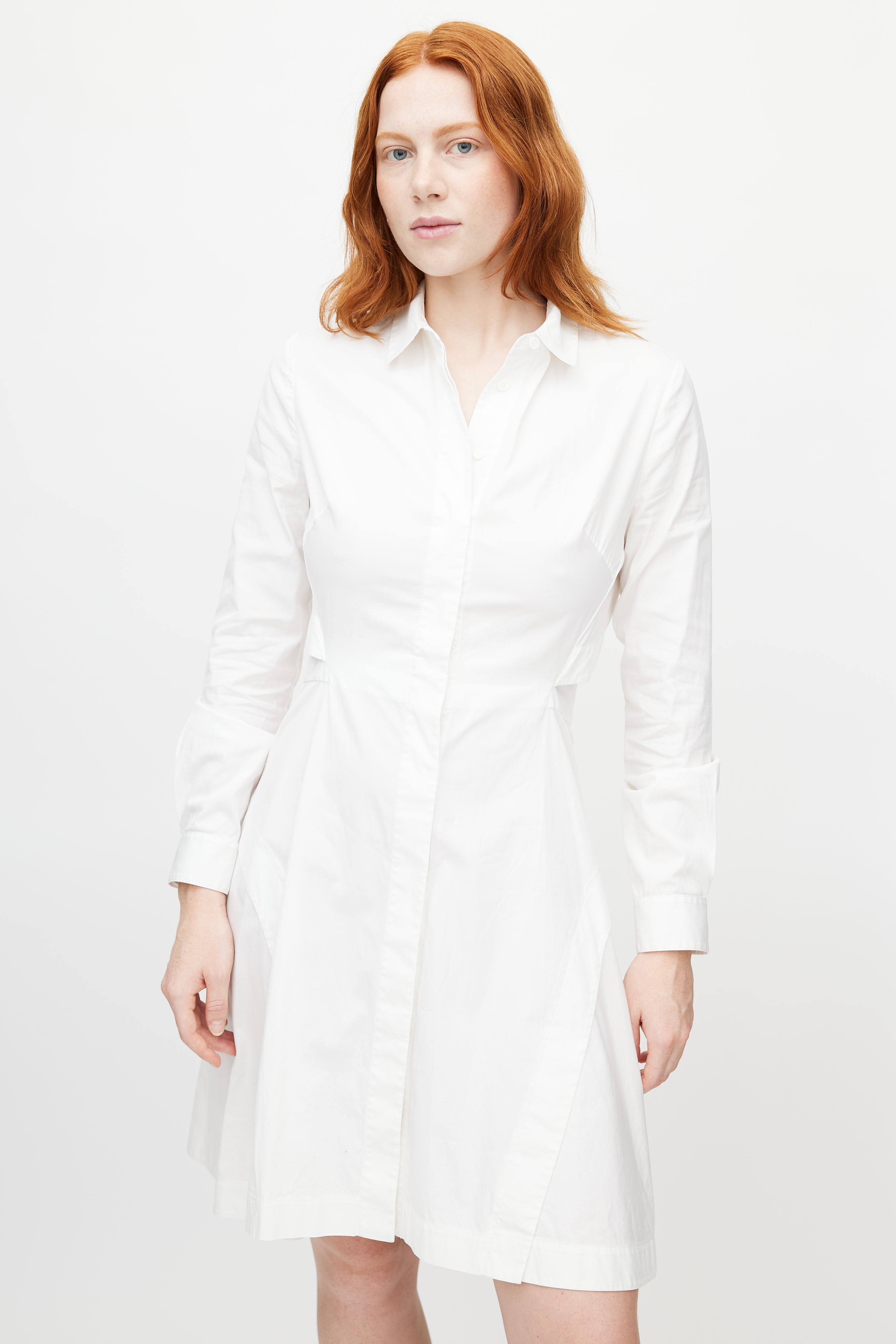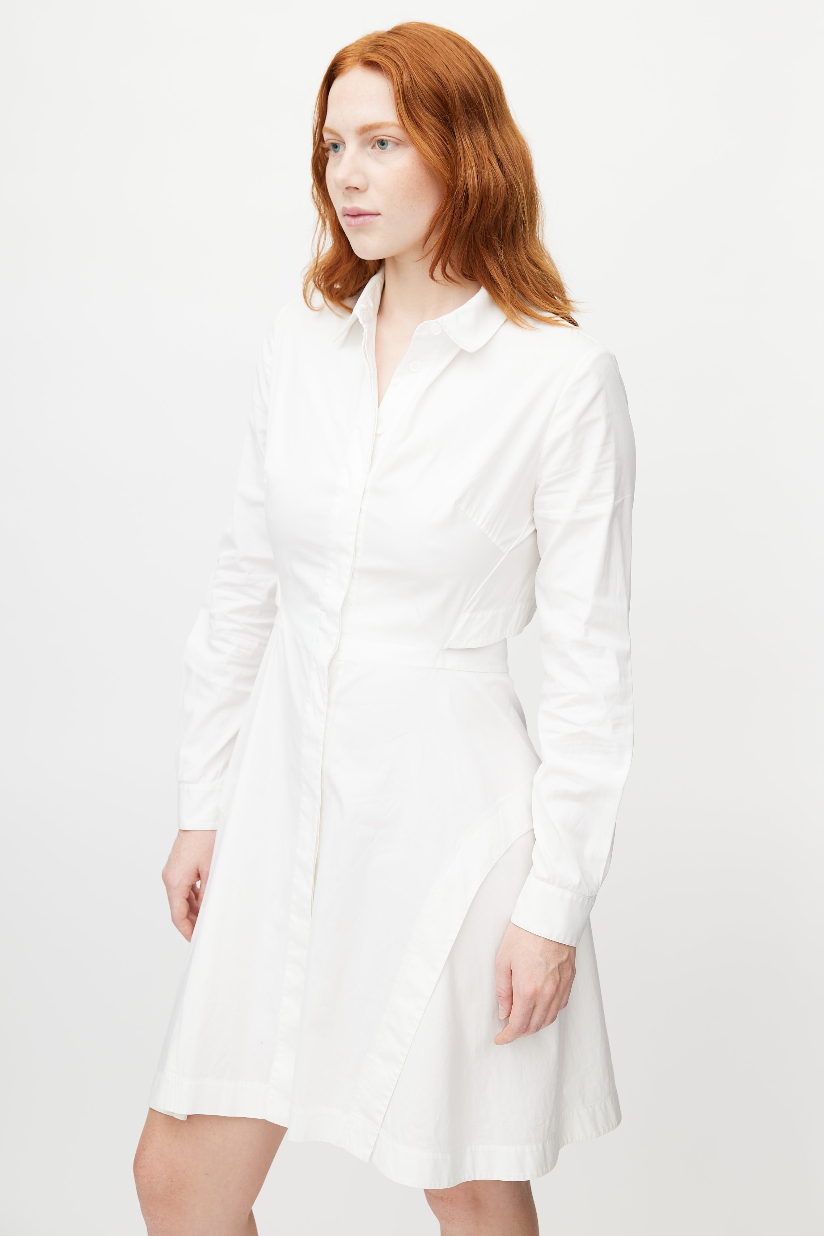 Pre-owned Proenza Schouler white shirt dress featuring a pointed collar, long sleeves with buttoned cuffs, cut out at back, and button up front.