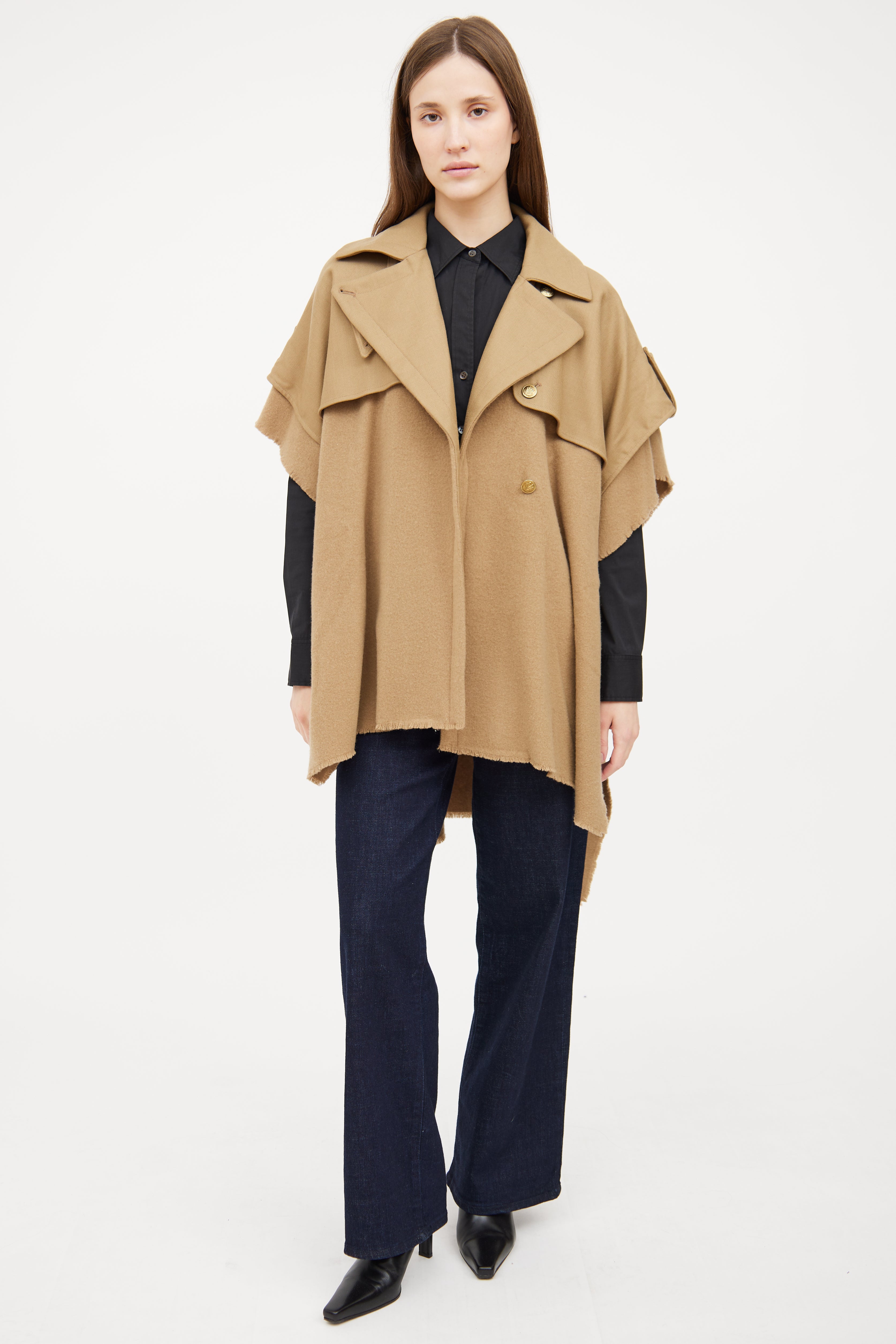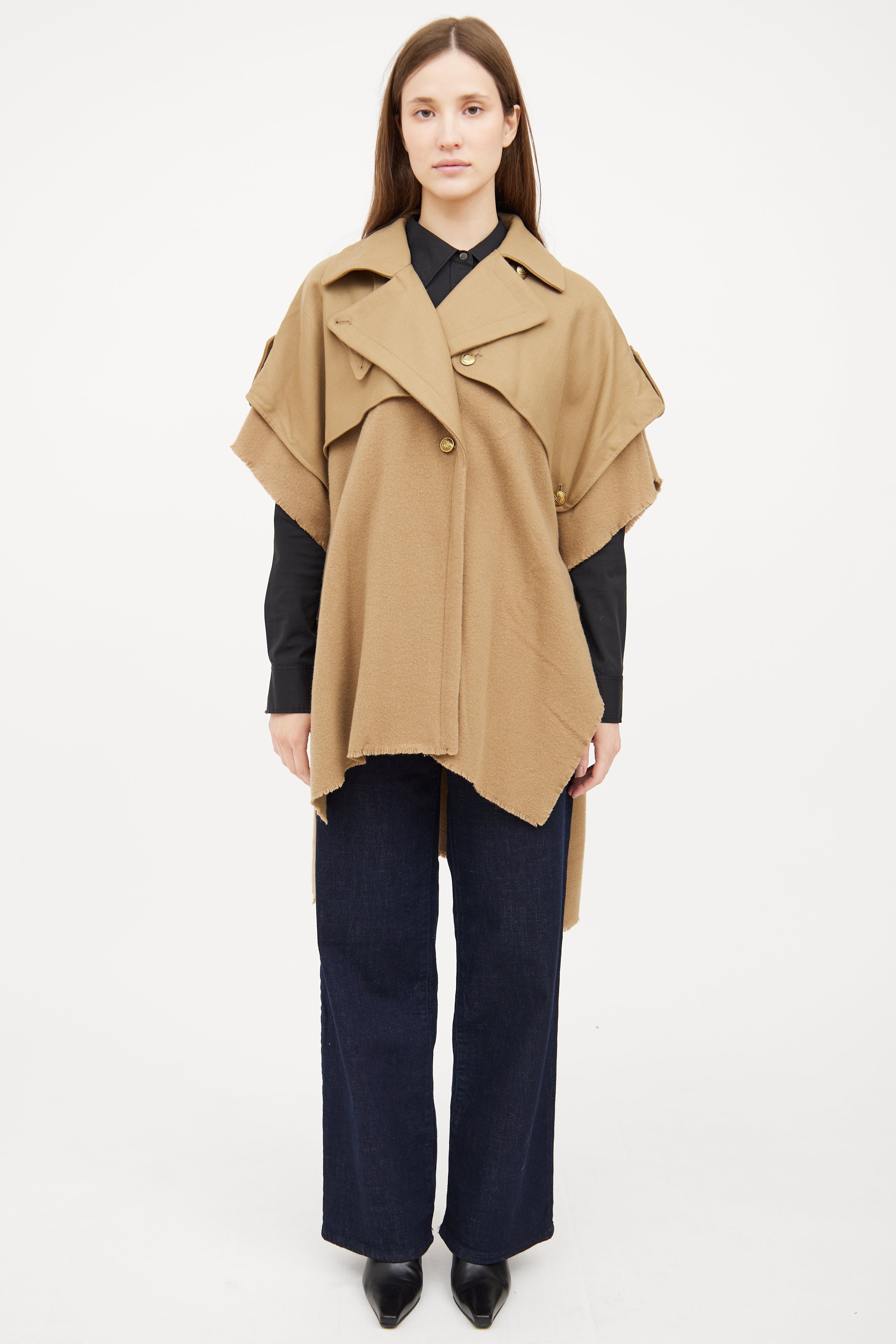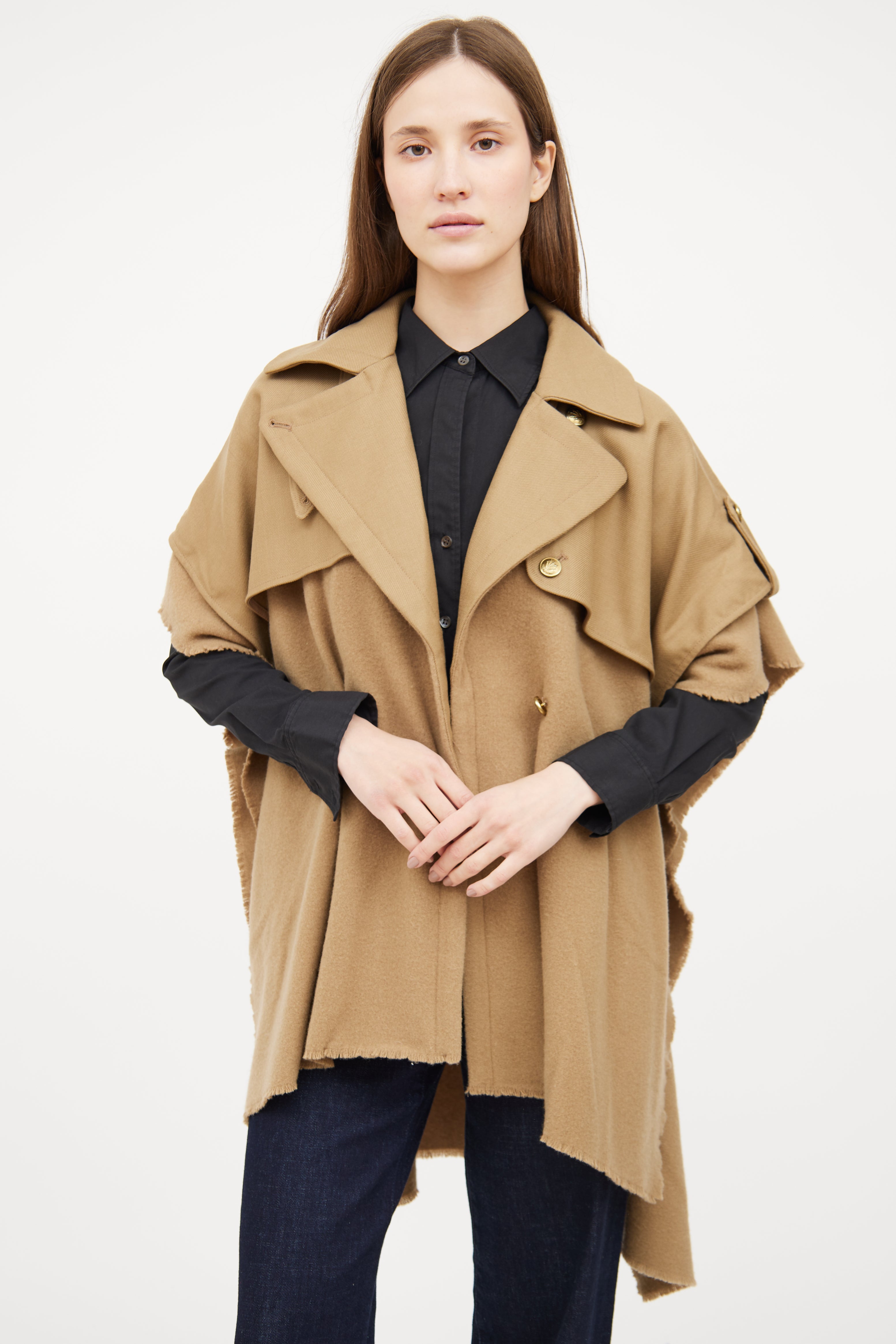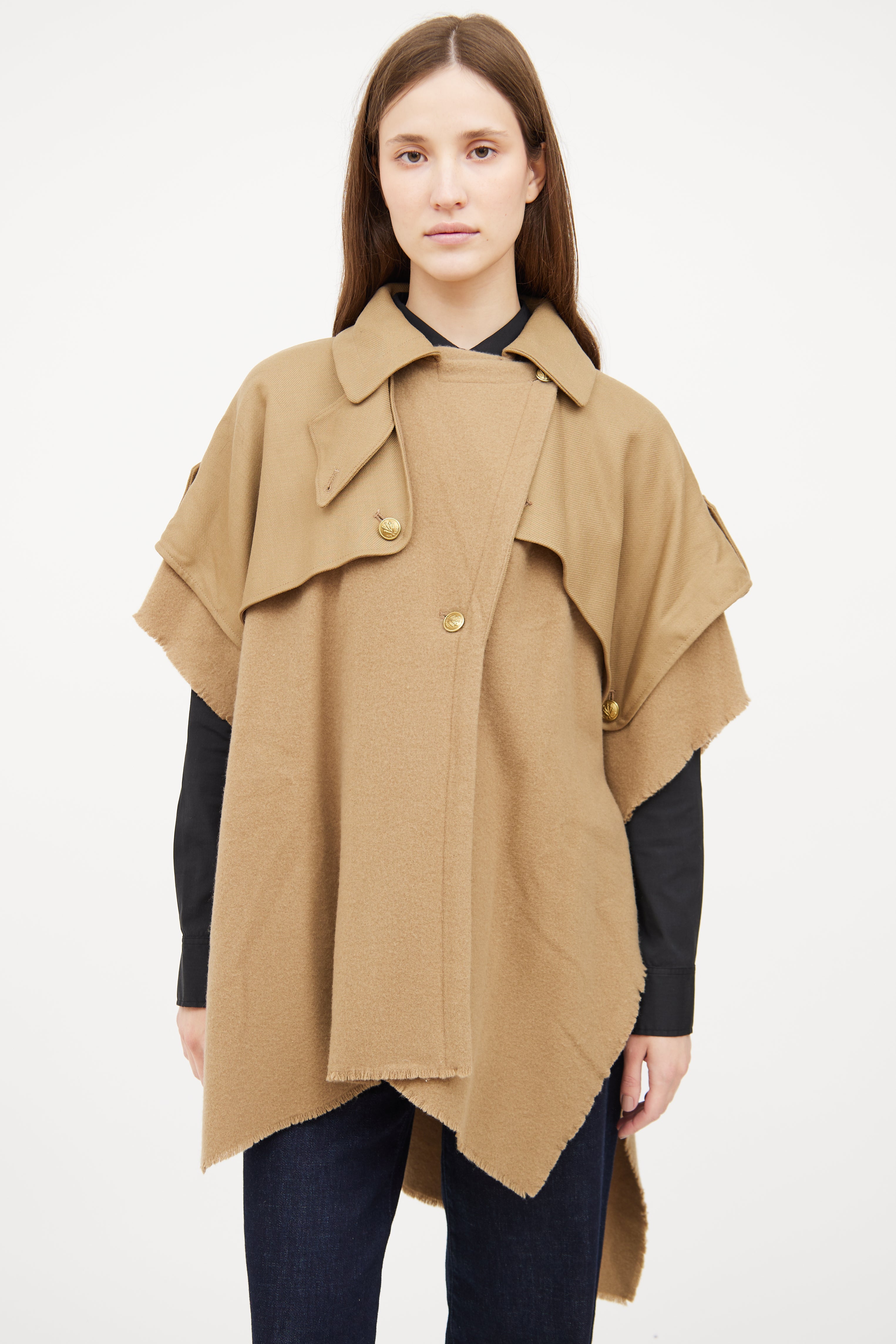Beige Wool Trench Cape Medium Size Guide