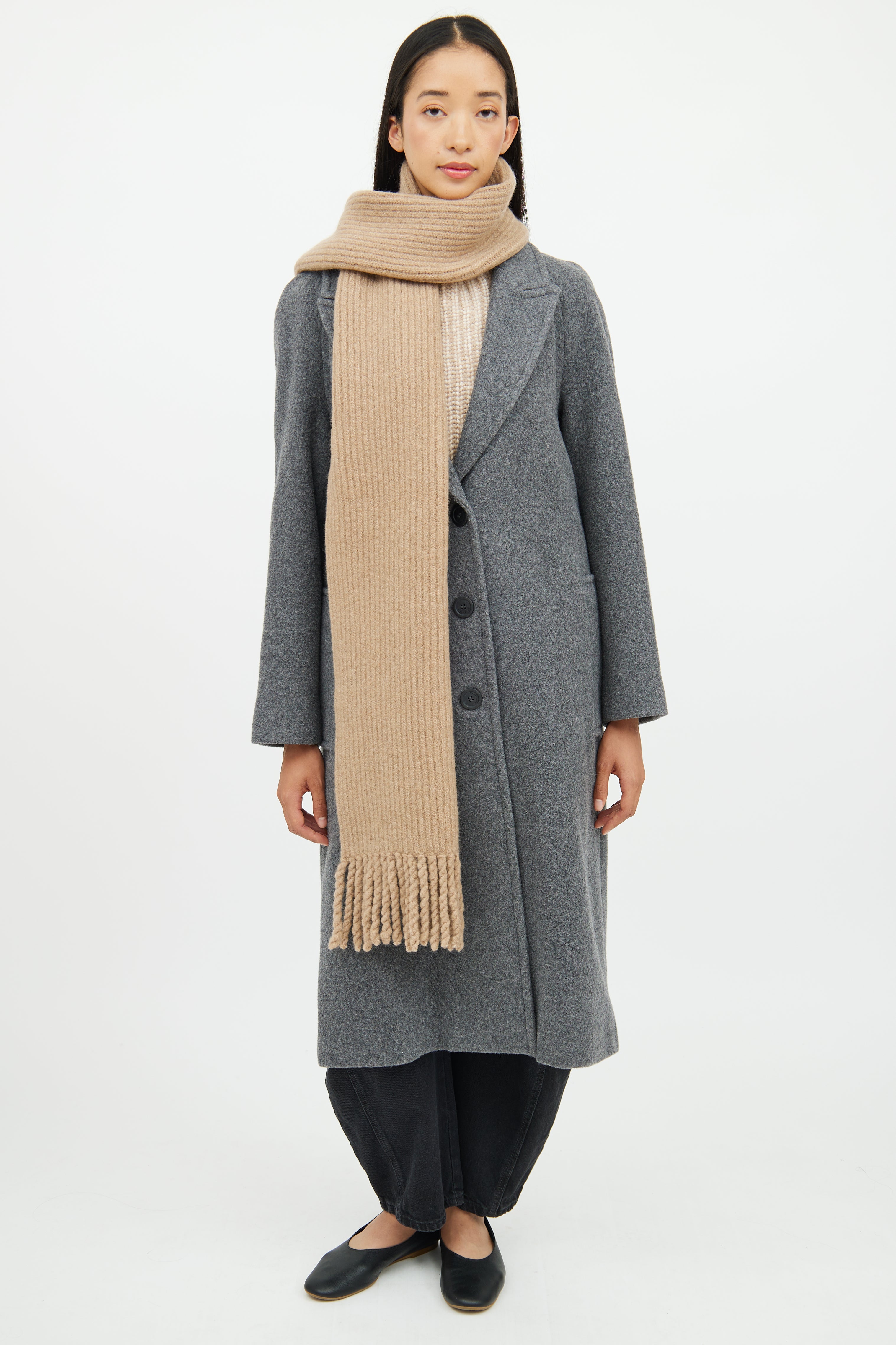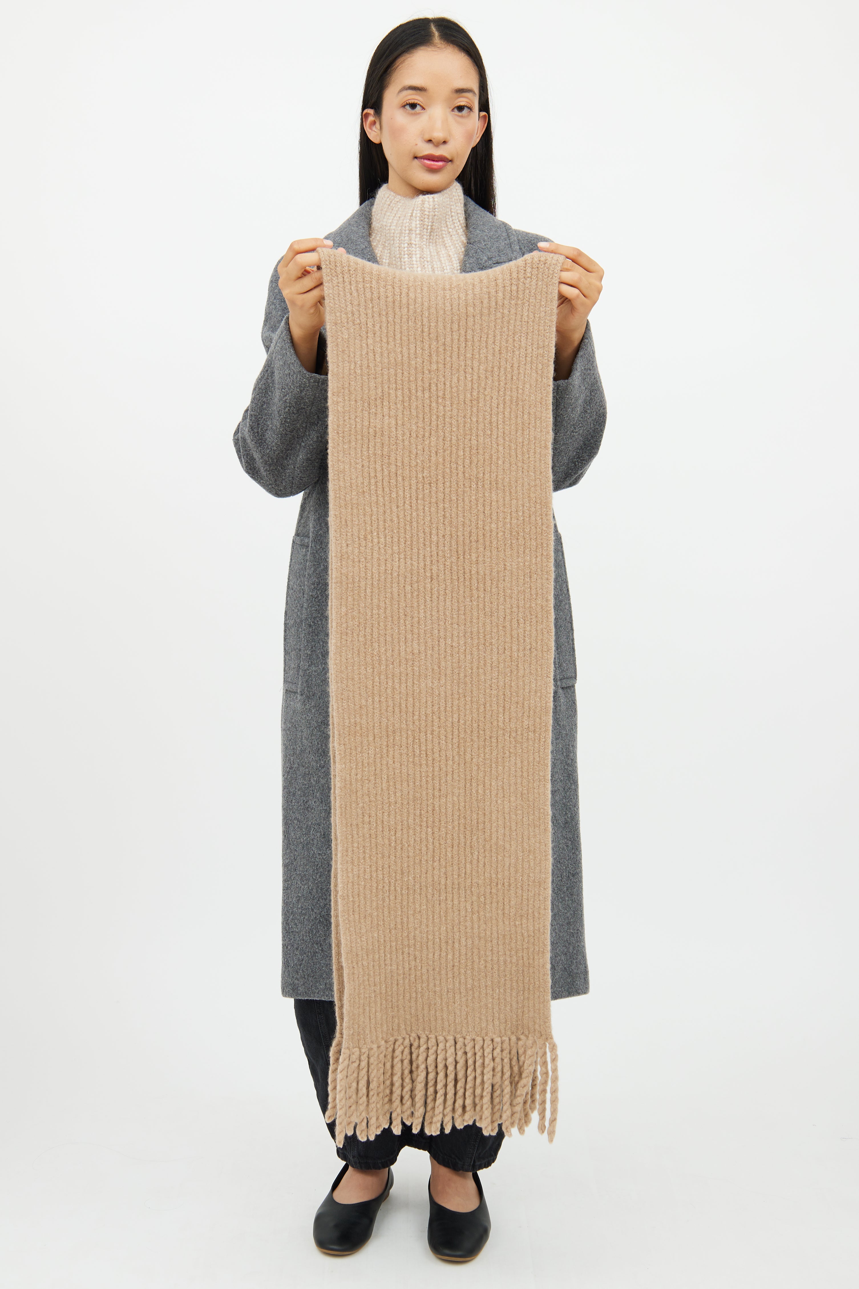 Pre-owned Rag & Bone long brown wool scarf featuring ribbing throughout and fringe hem.
