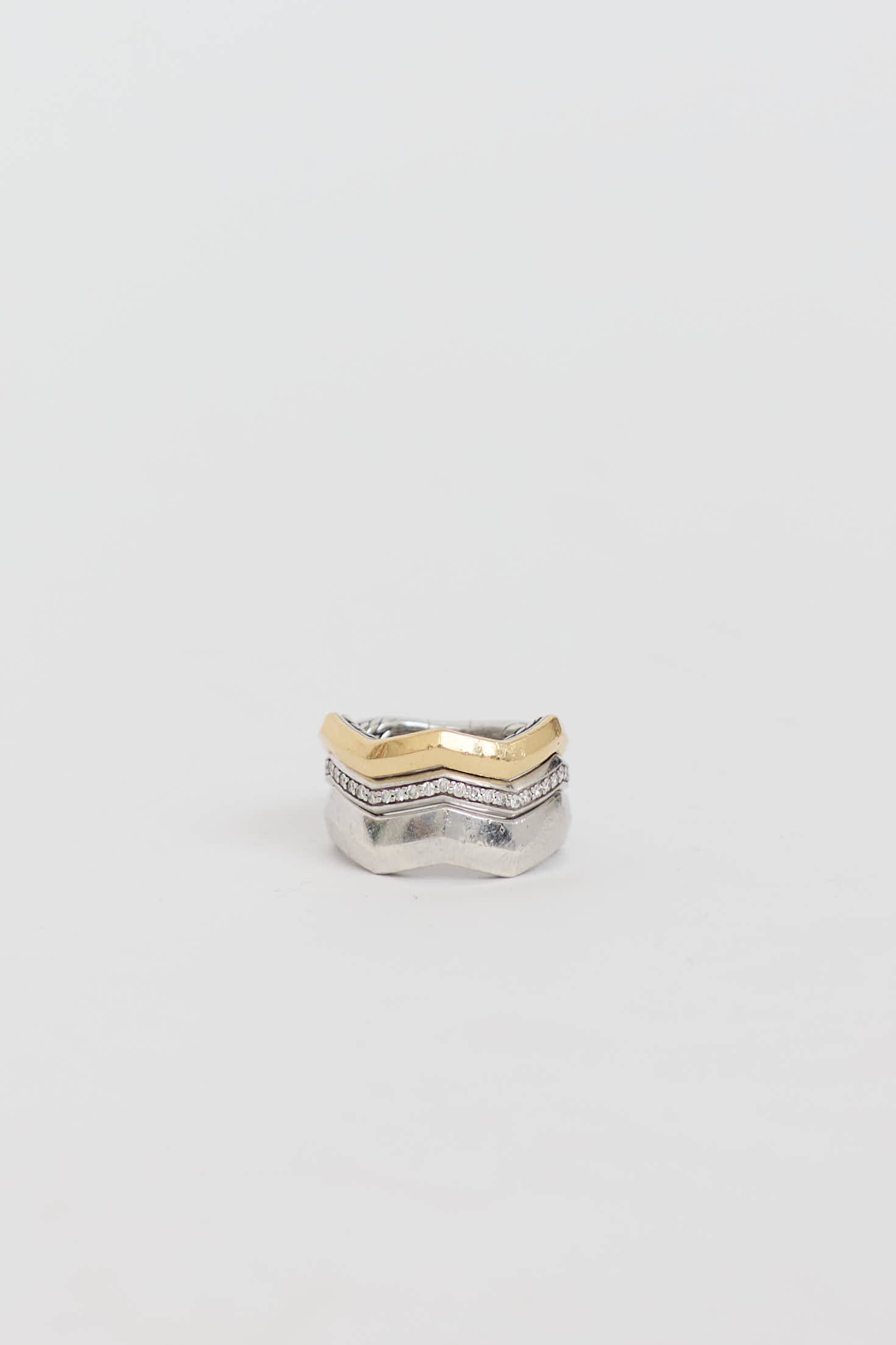 Sterling Silver & 18K Yellow Gold Diamond Zig Zag Stax Ring