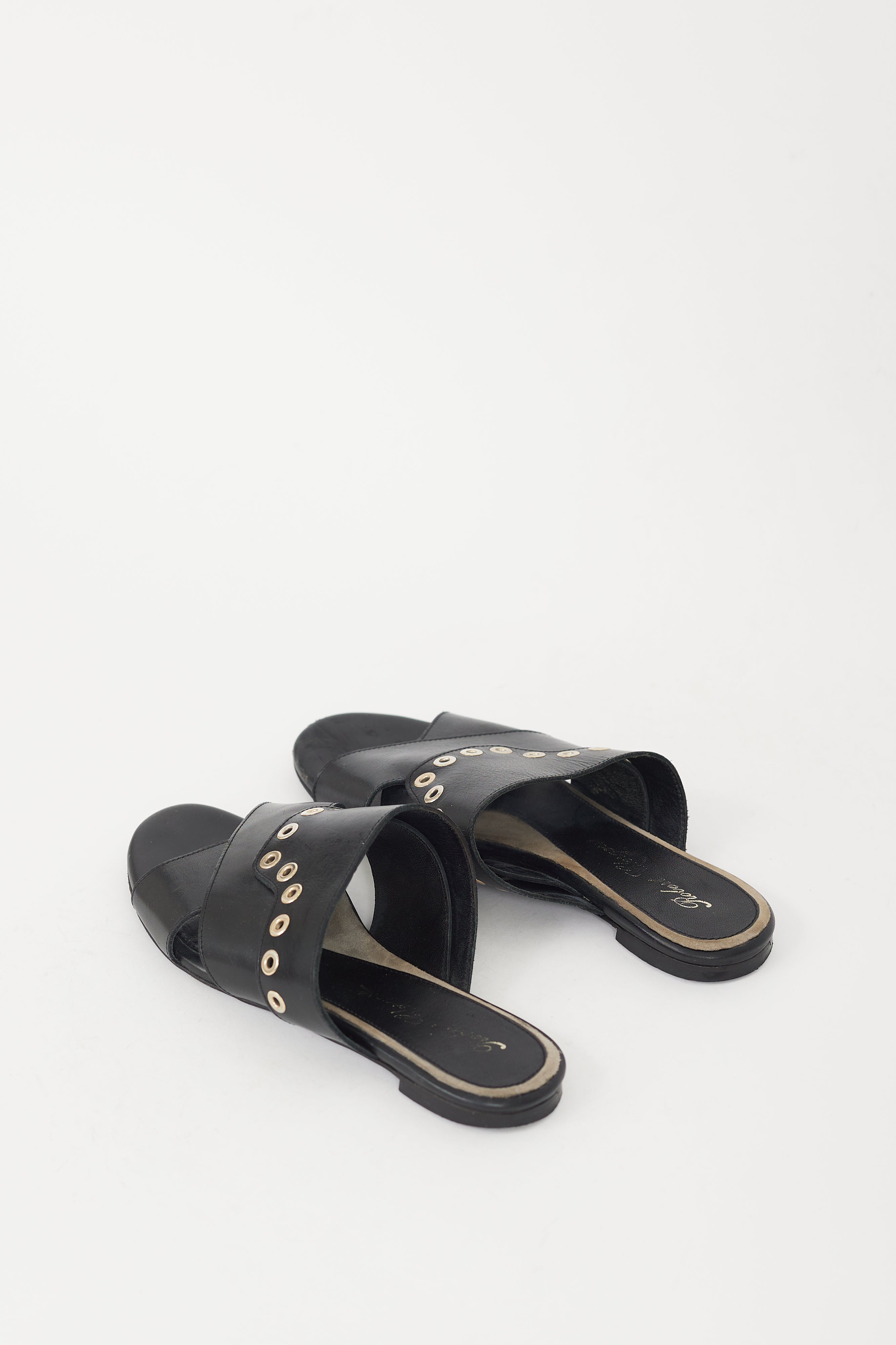 Black & Silver Grommet Leather Sandal FR 37 Size Guide
