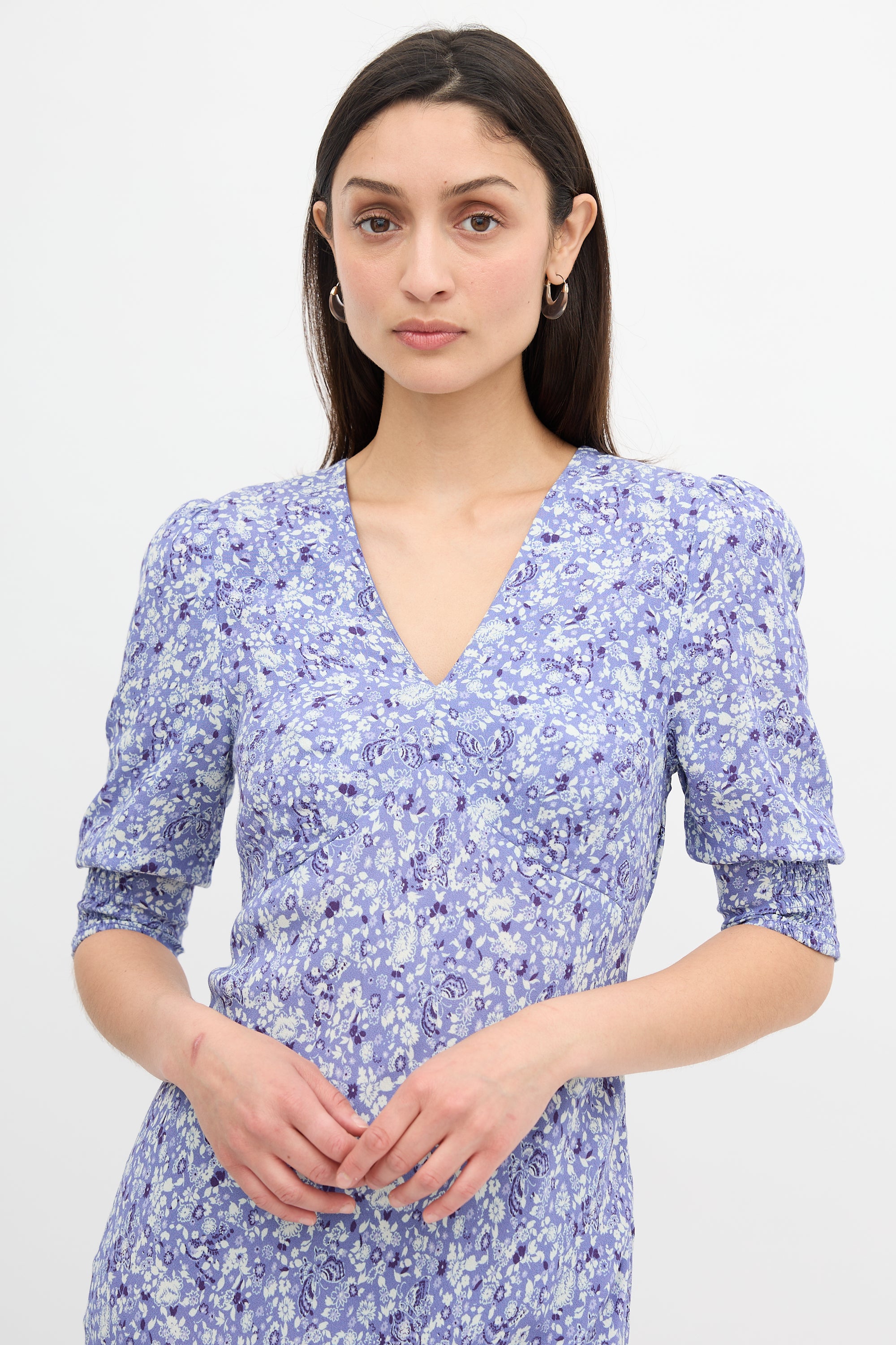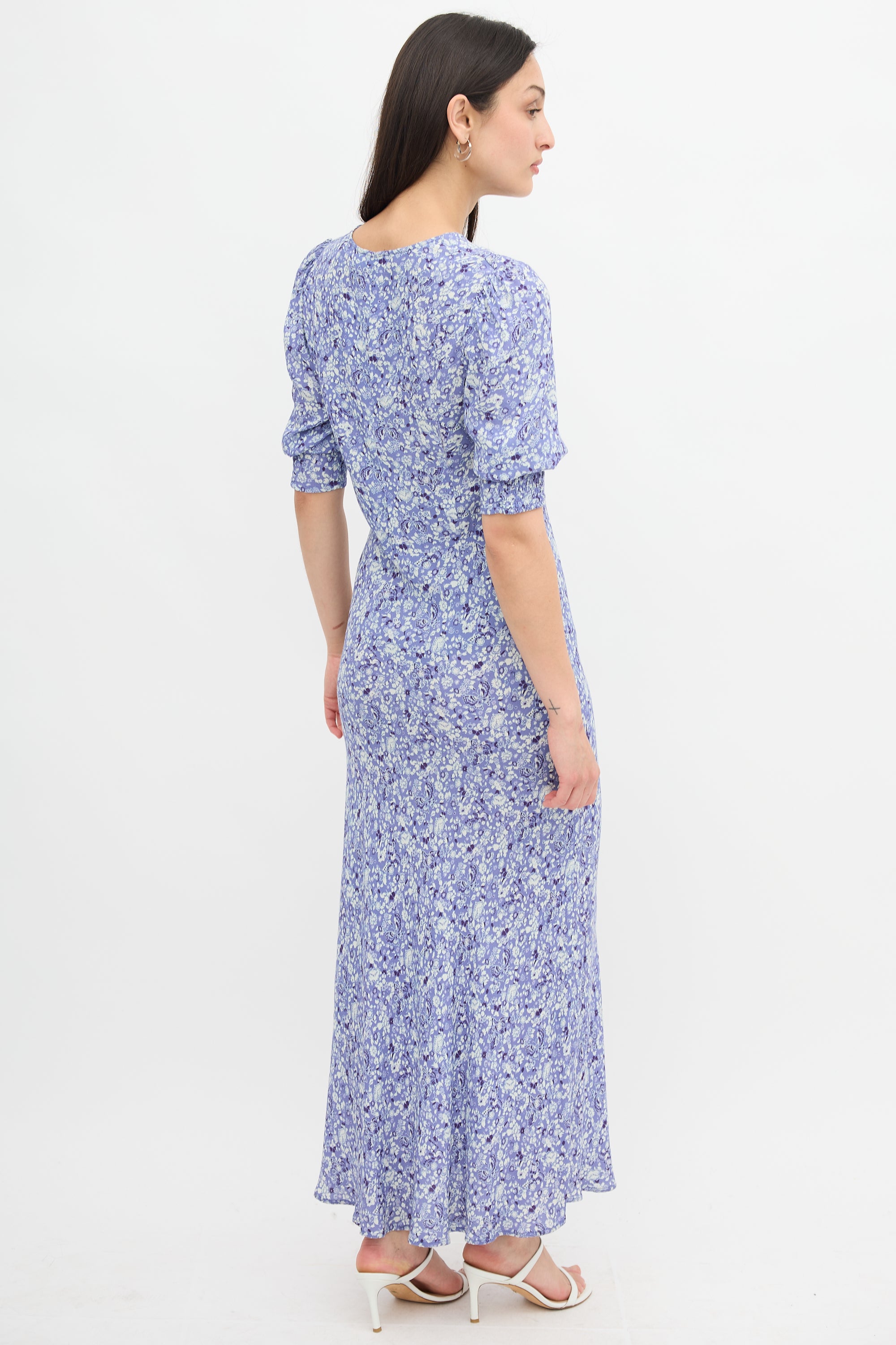 Pre-owned Rixo Zadie maxi dress featuring smocked cuffs and concealed side zip. Lined bust.