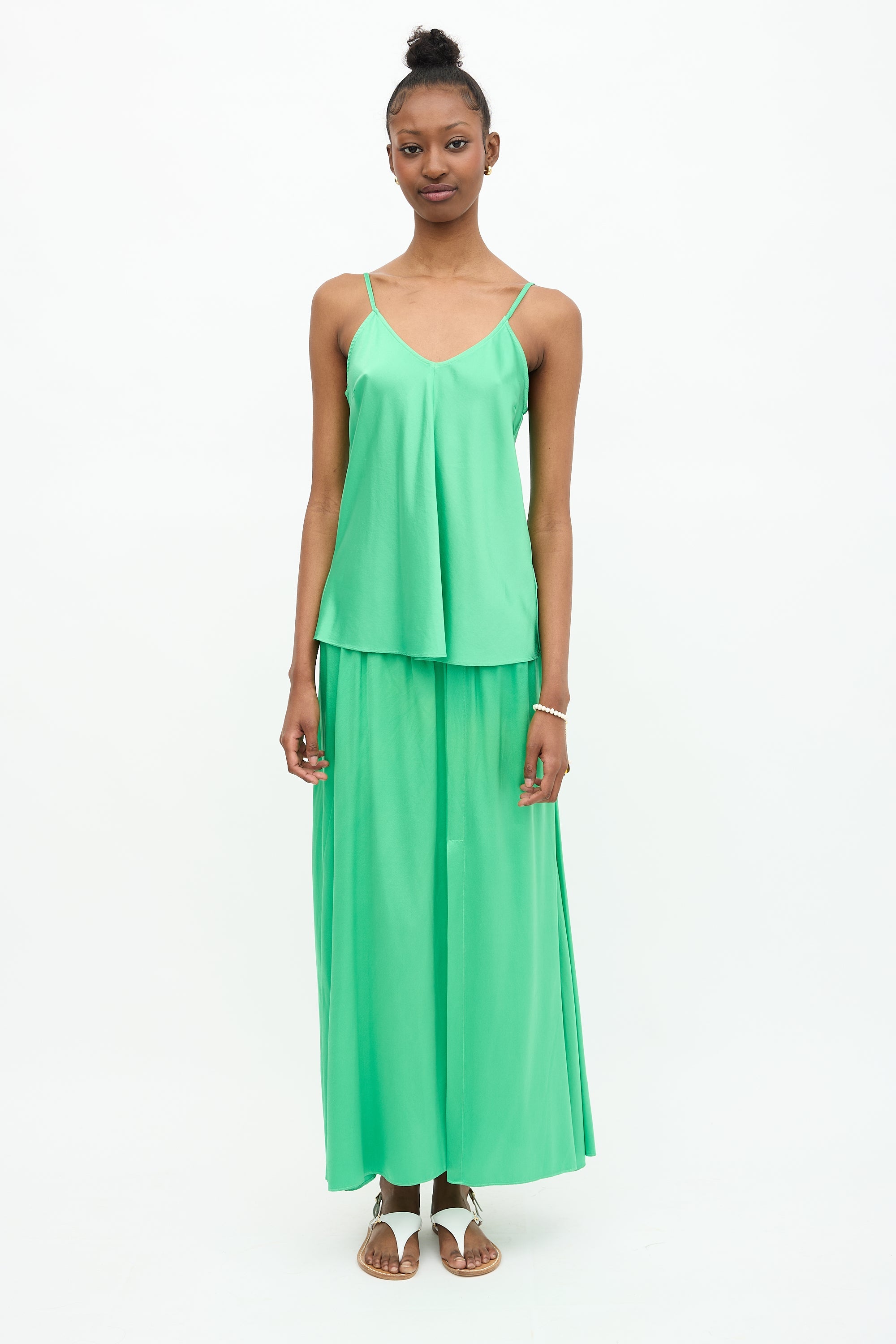 Pre-owned Forte Forte green silk blend camisole top featuring adjustable straps and V-neckline.