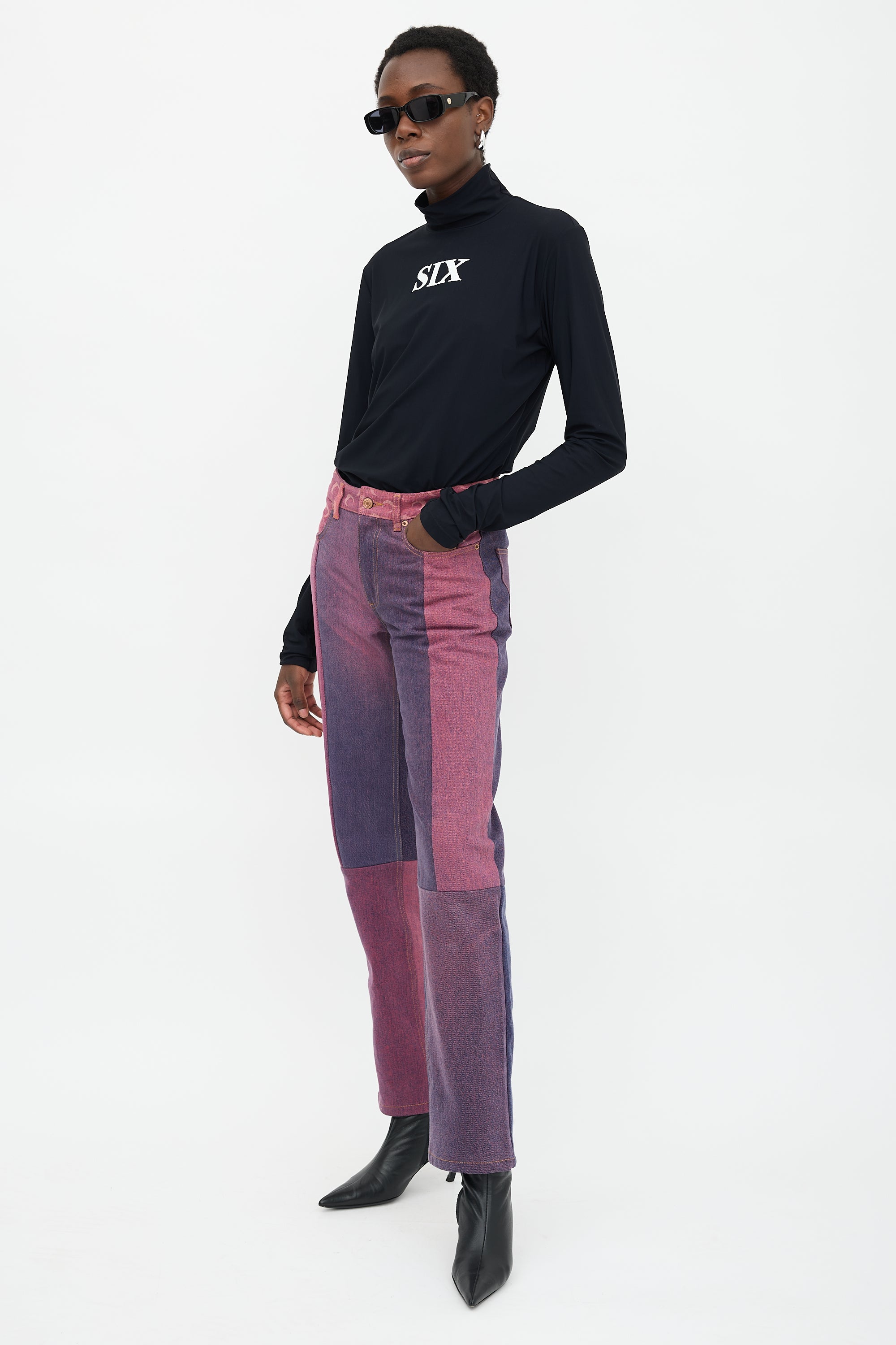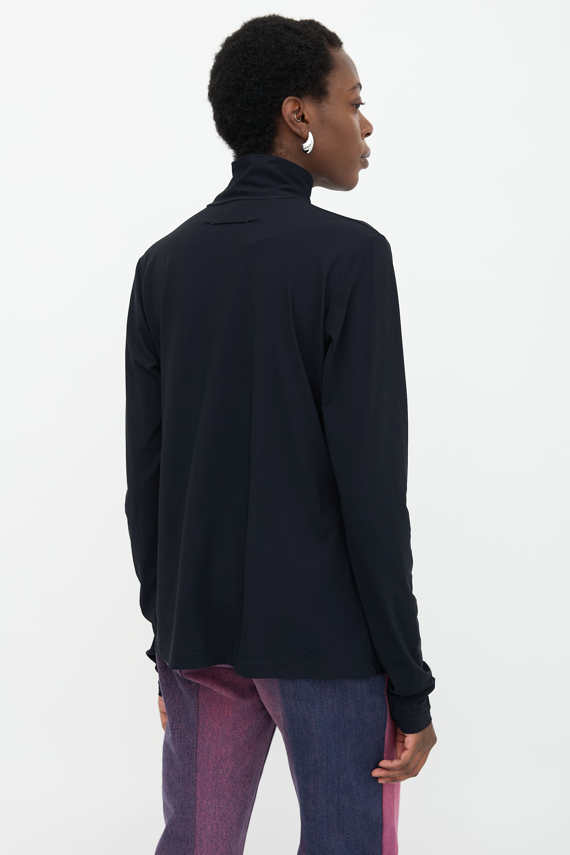 Pre-owned MM6 Maison Margiela black knit top featuring a turtle neckline, white 'Six' script at front, and long sleeves.