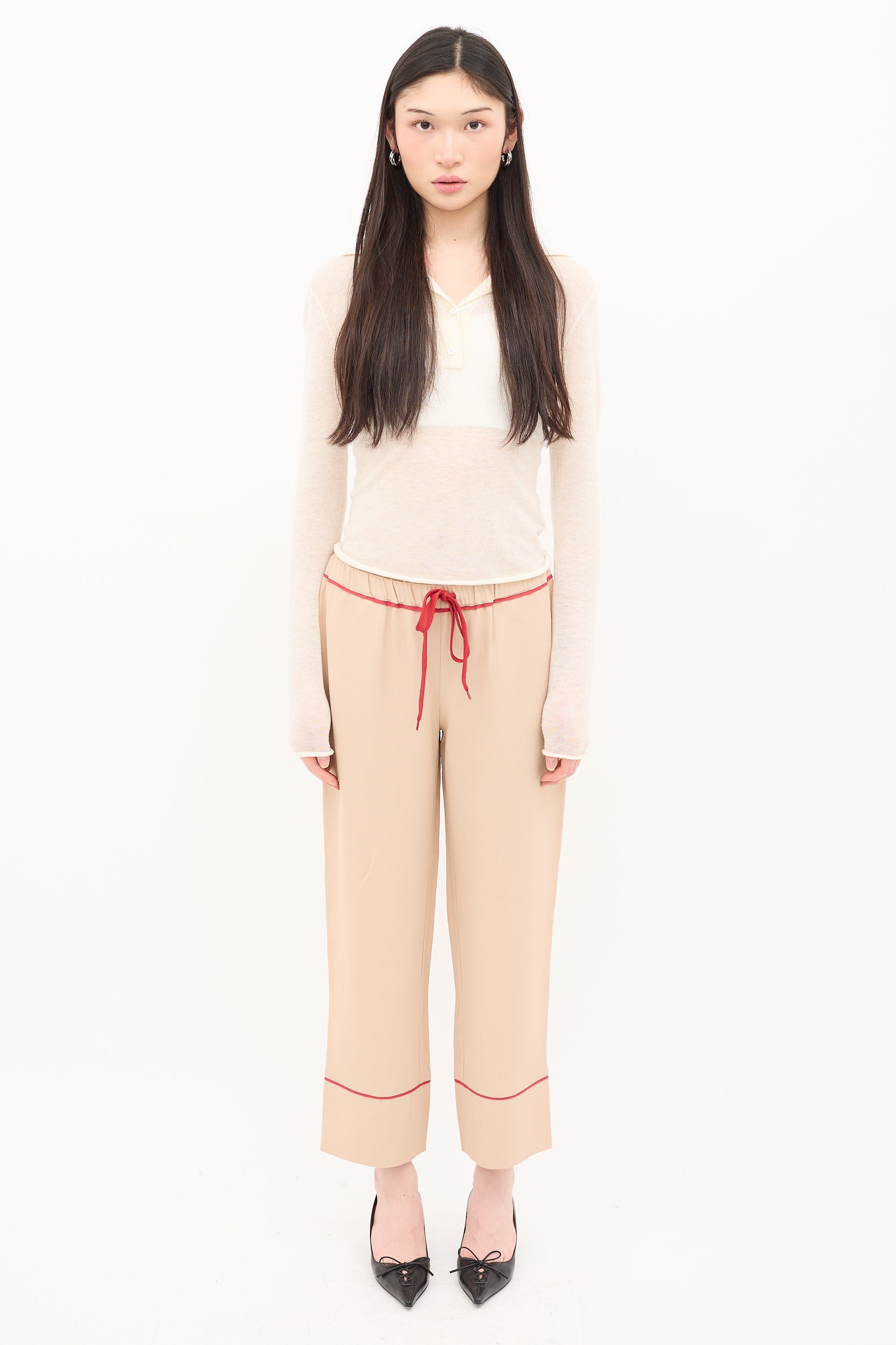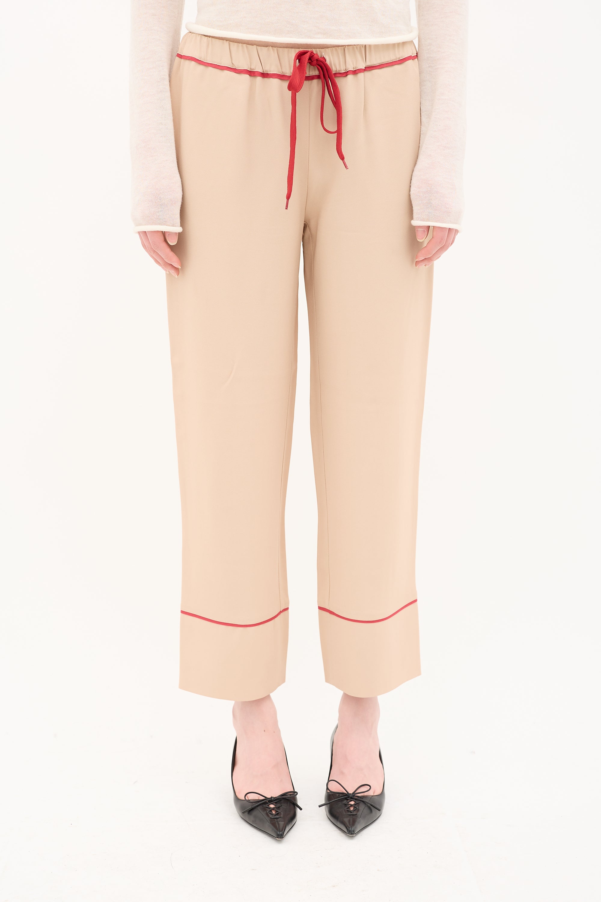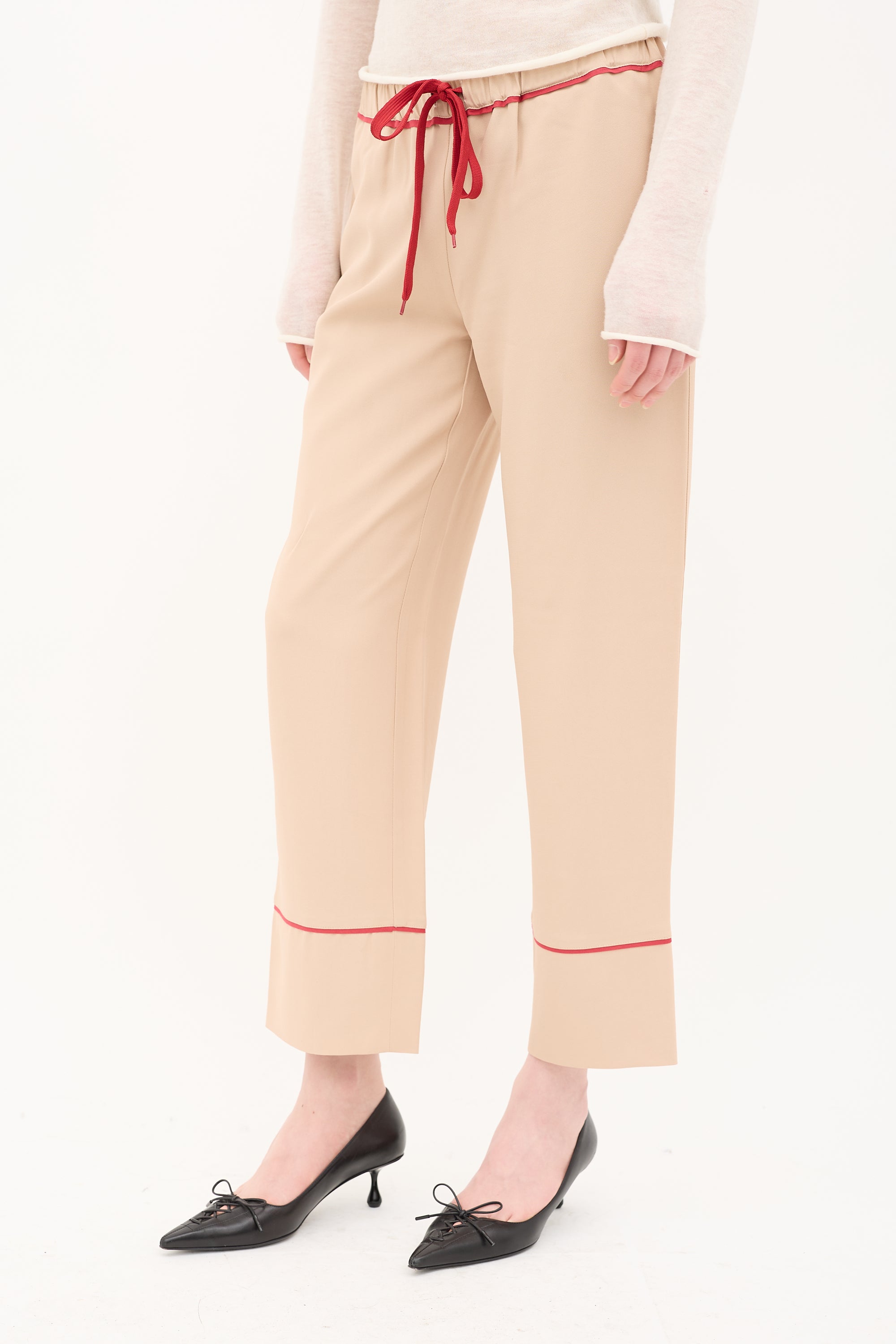 Pre-owned Marni beige trousers featuring drawstring waist, wide leg, and in seam pockets.
