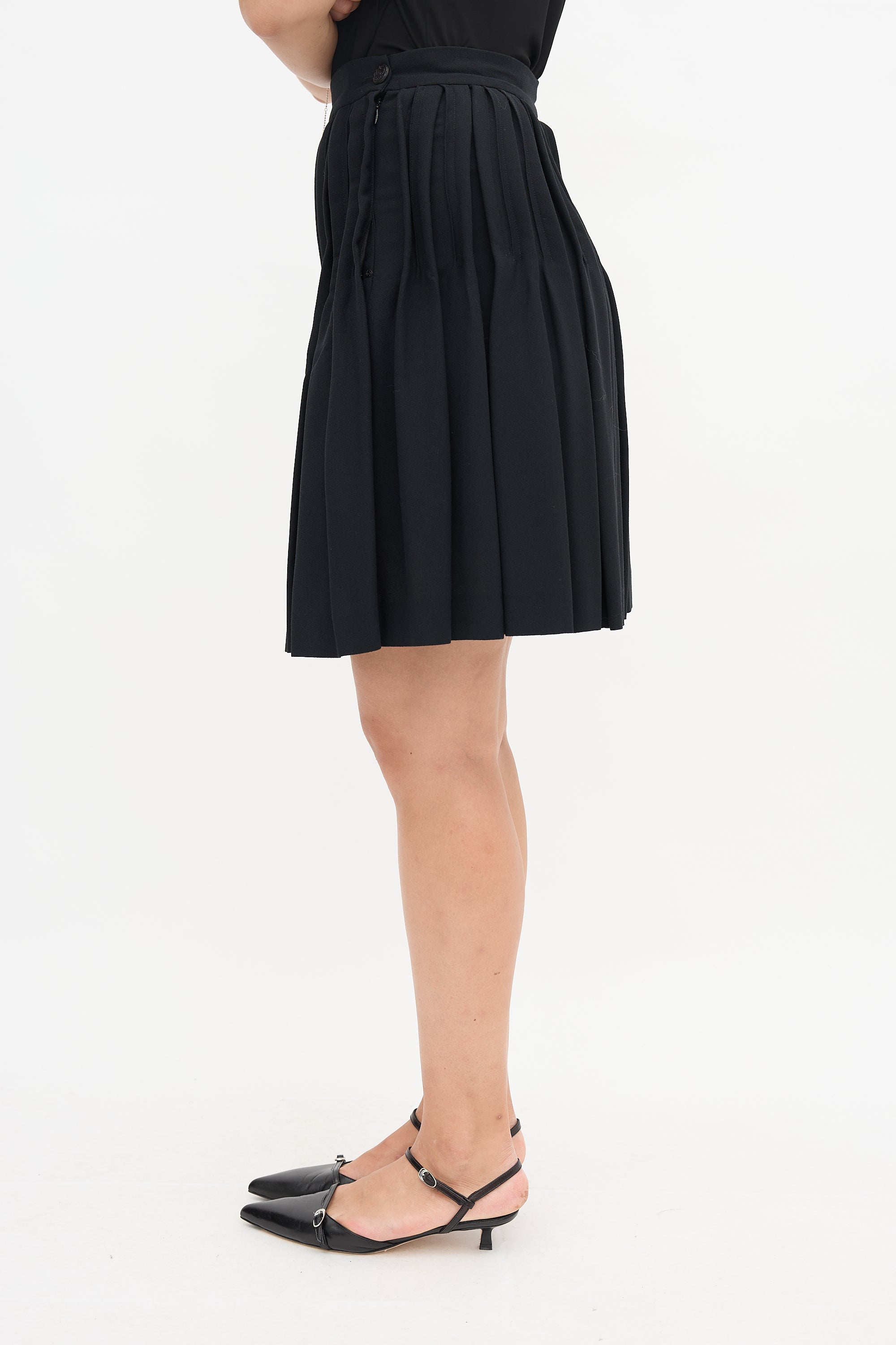 Pre-owned Chanel black crepe skirt featuring pleated and pintuck waist, in seam pockets, and concealed side zip. Lined.