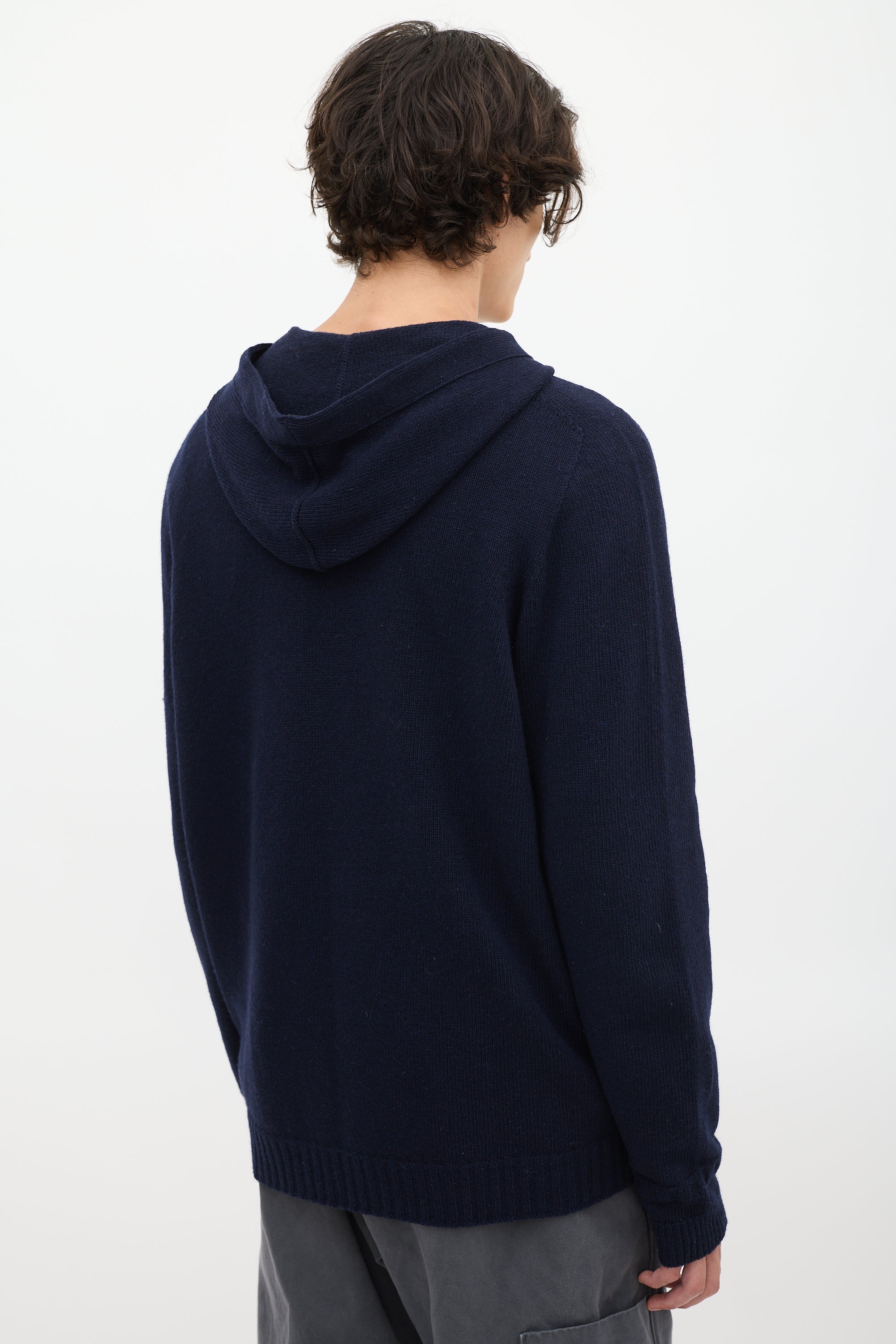 Navy Wool Knit Zip Up Hoodie X-Large Size Guide