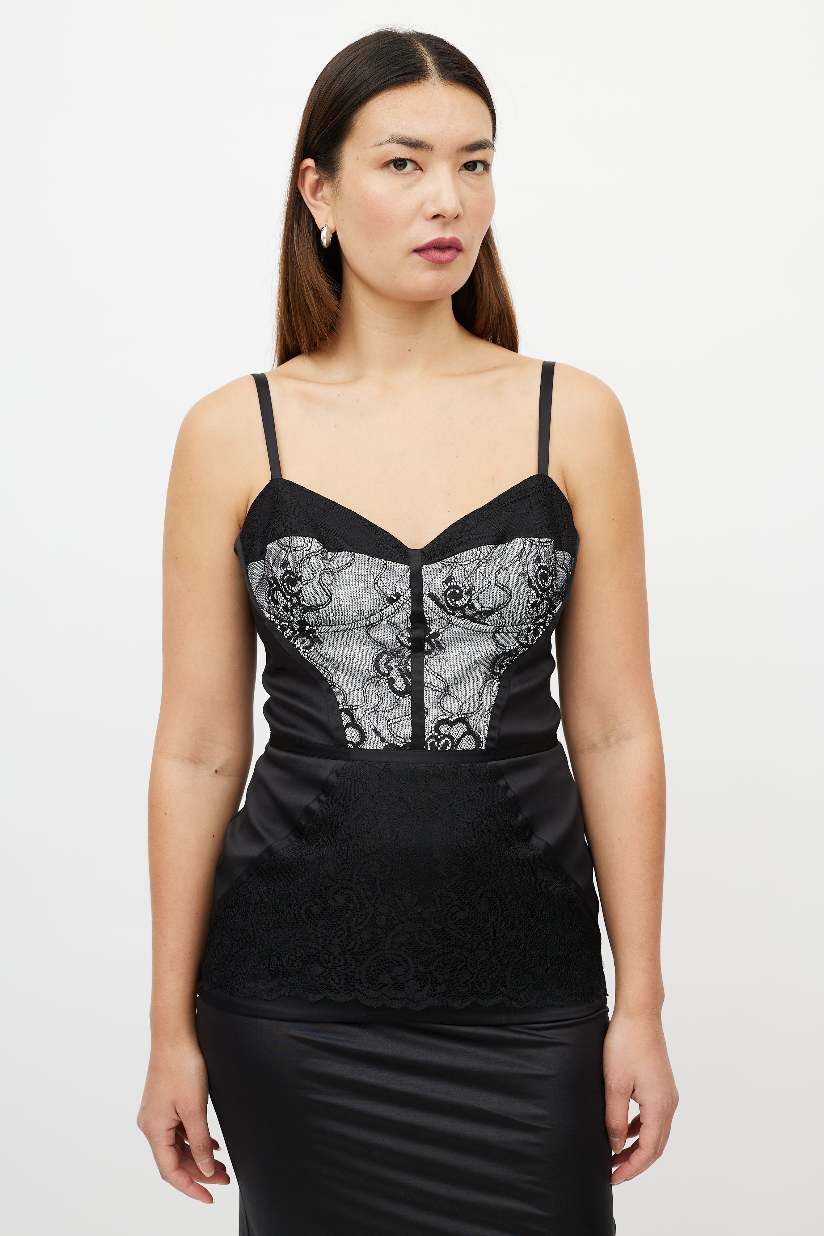 Black & White Satin Lace Bustier Top Medium Size Guide