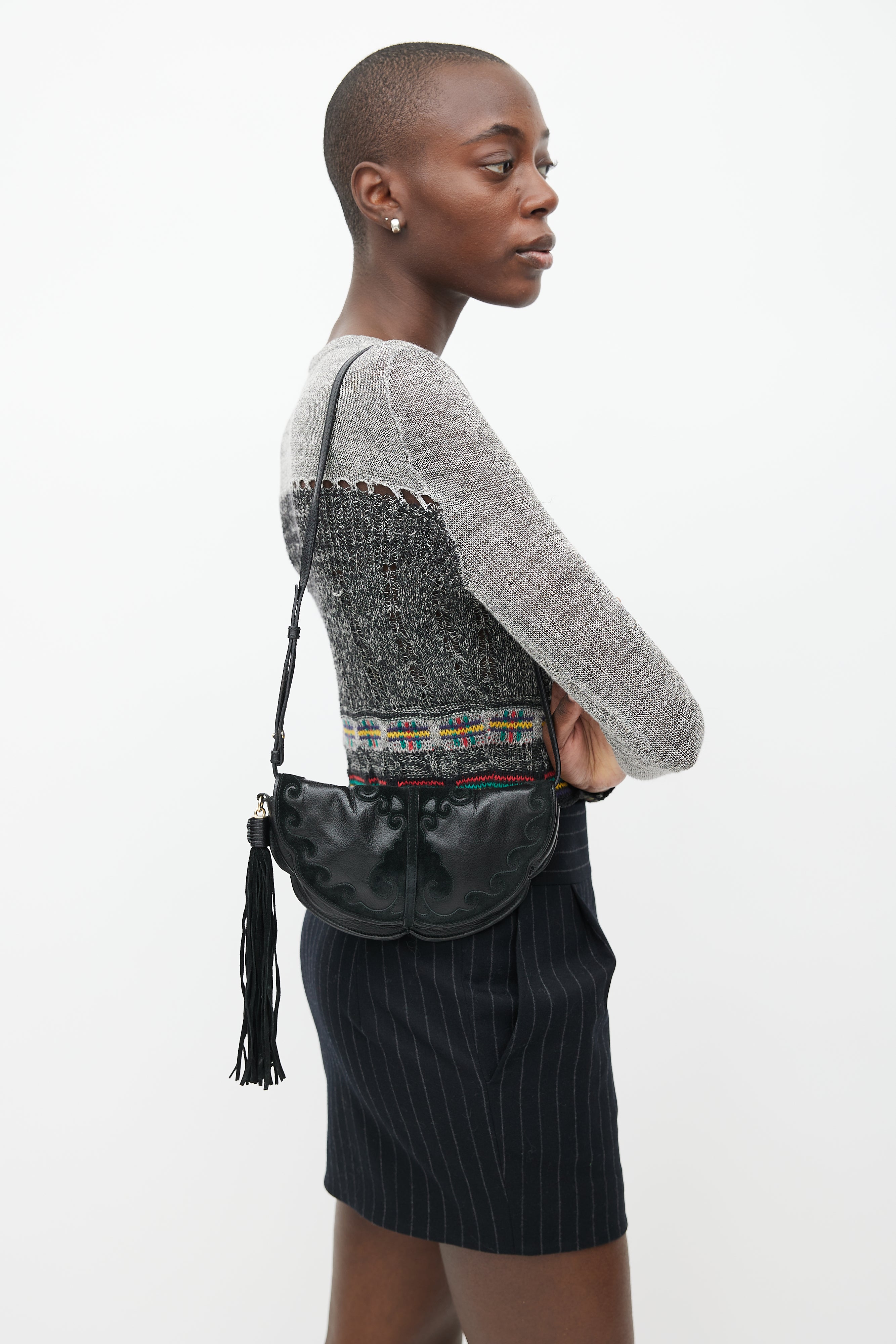 Vintage Black Leather & Suede Tassel Shoulder Bag