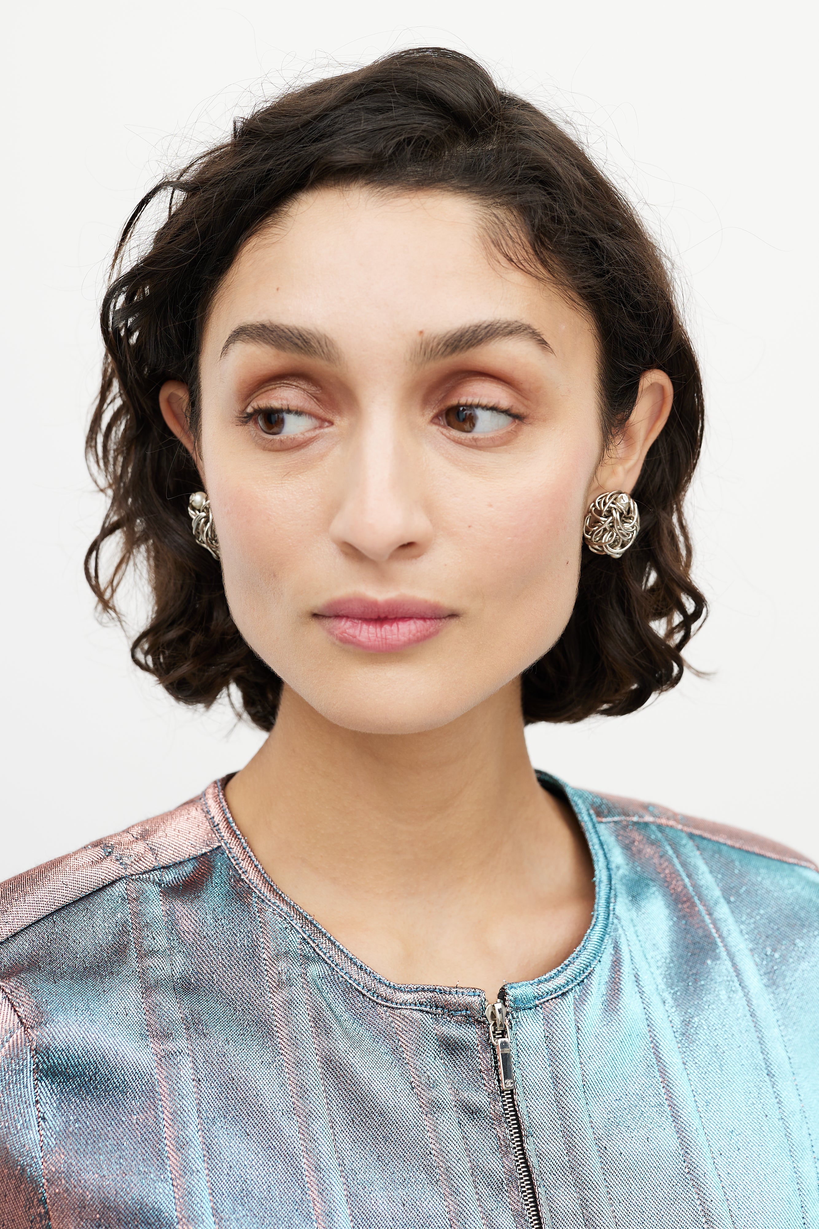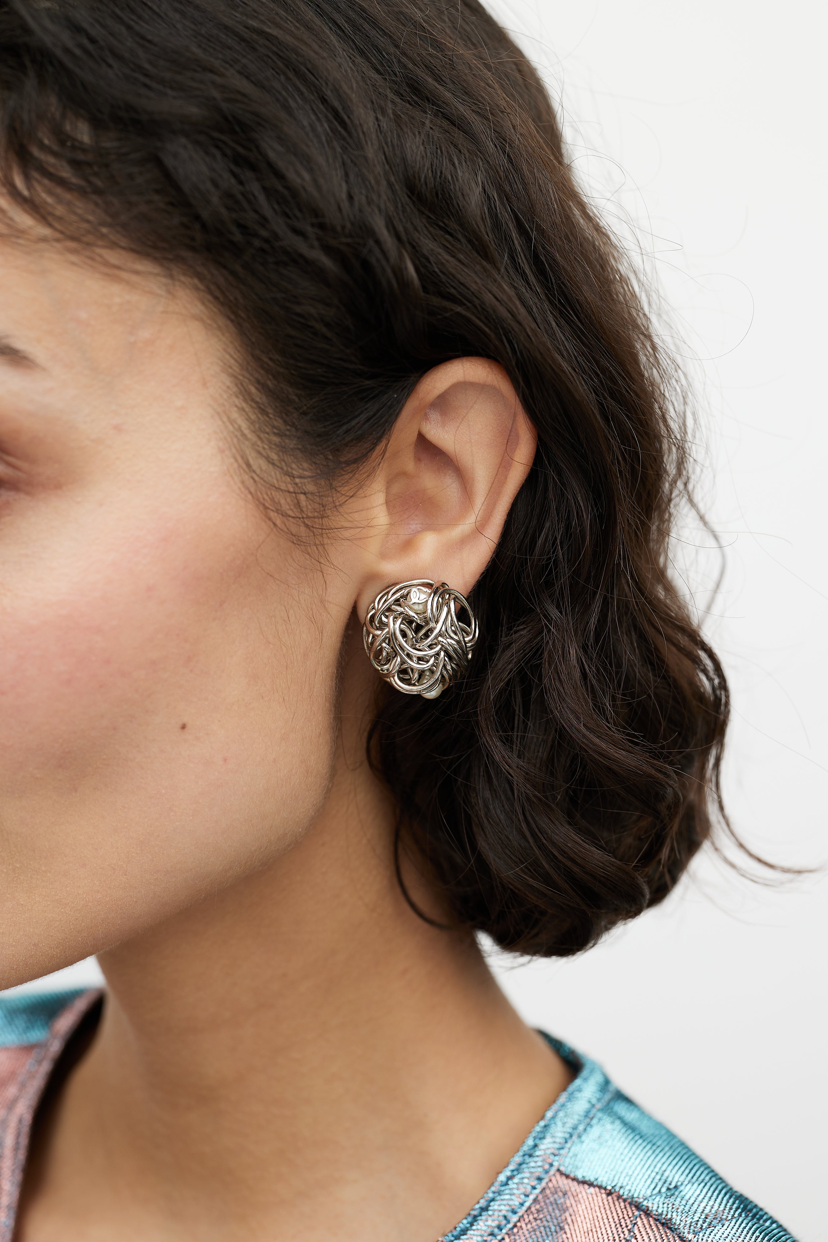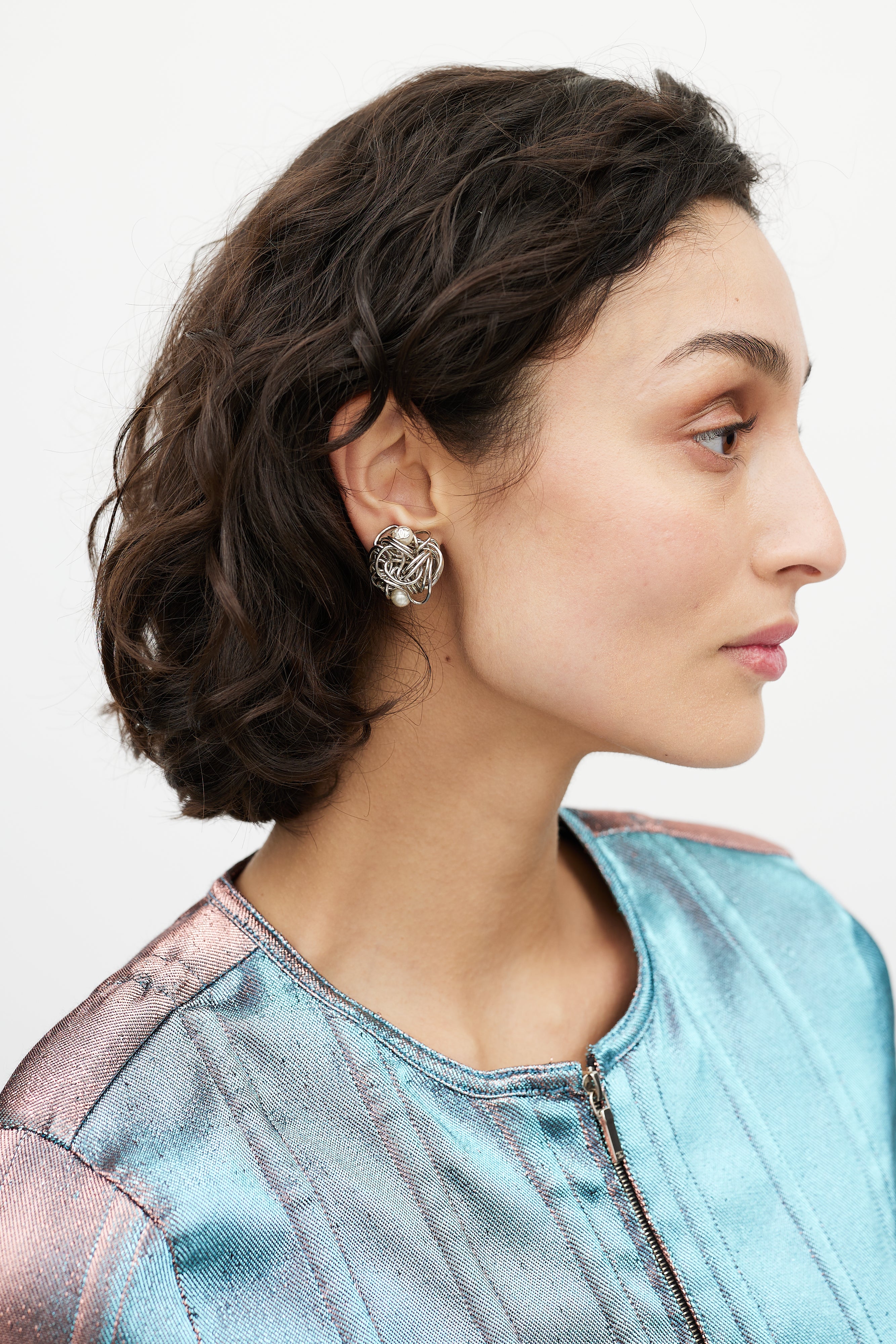 Chanel Fall 1997 Silver Wire & Pearl Clip On Earrings