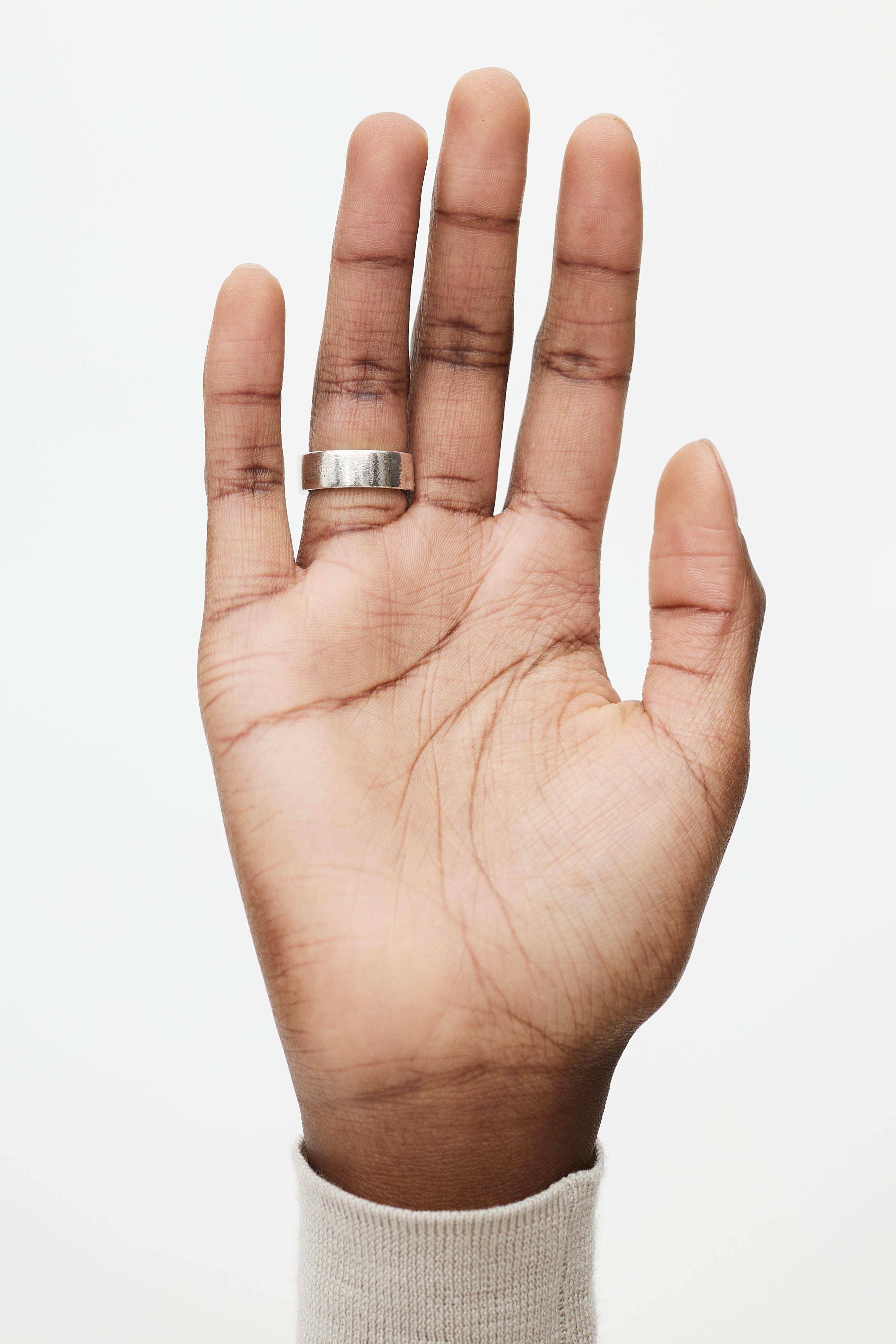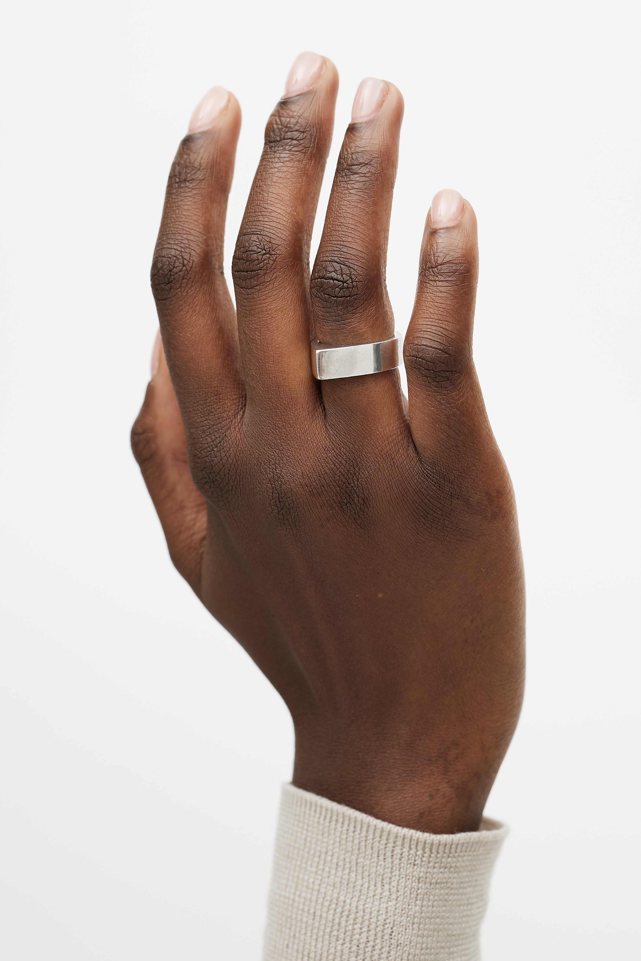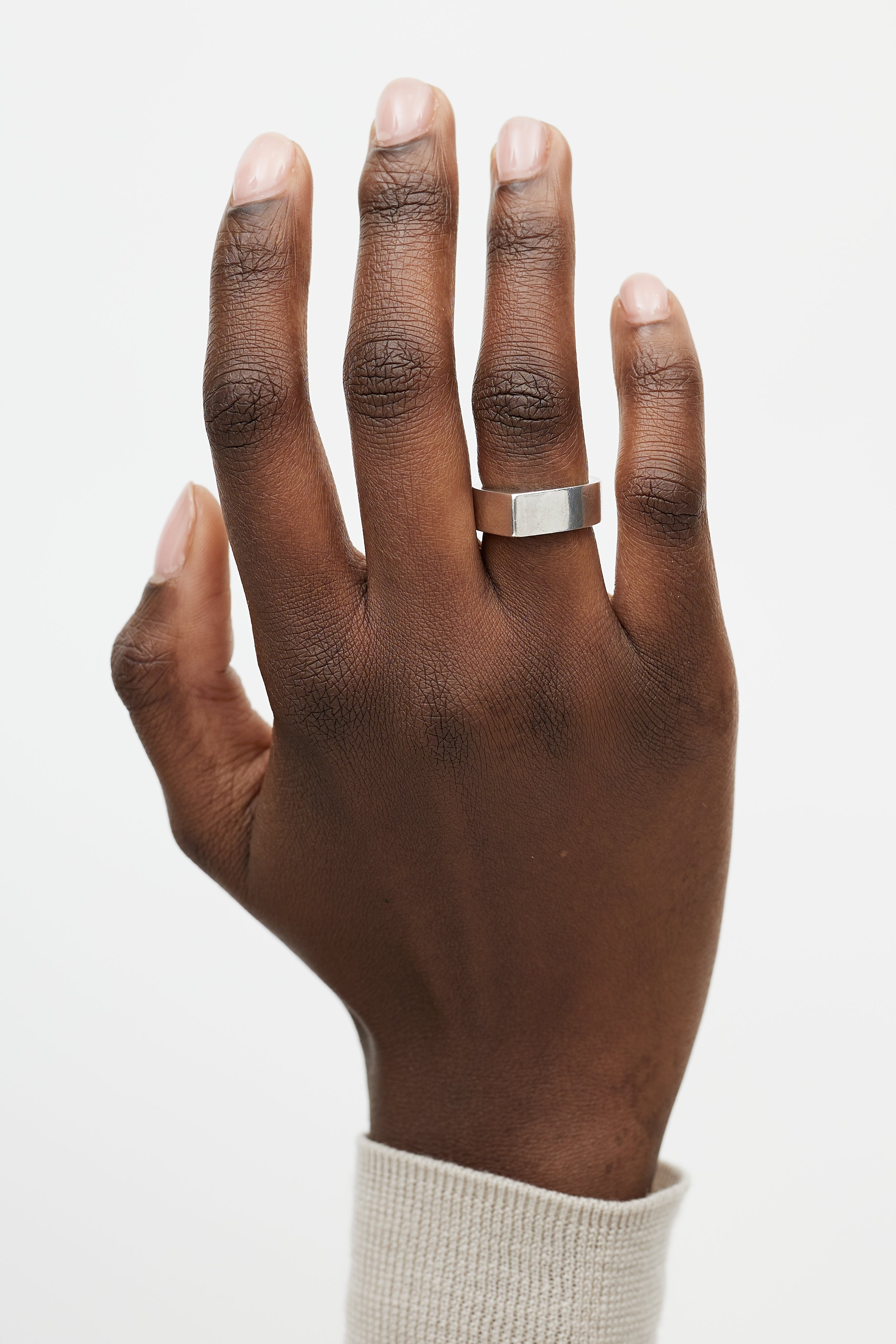 Pre-owned Gucci sterling silver ring featuring pointed triangle motif and engraved logo at inside band.