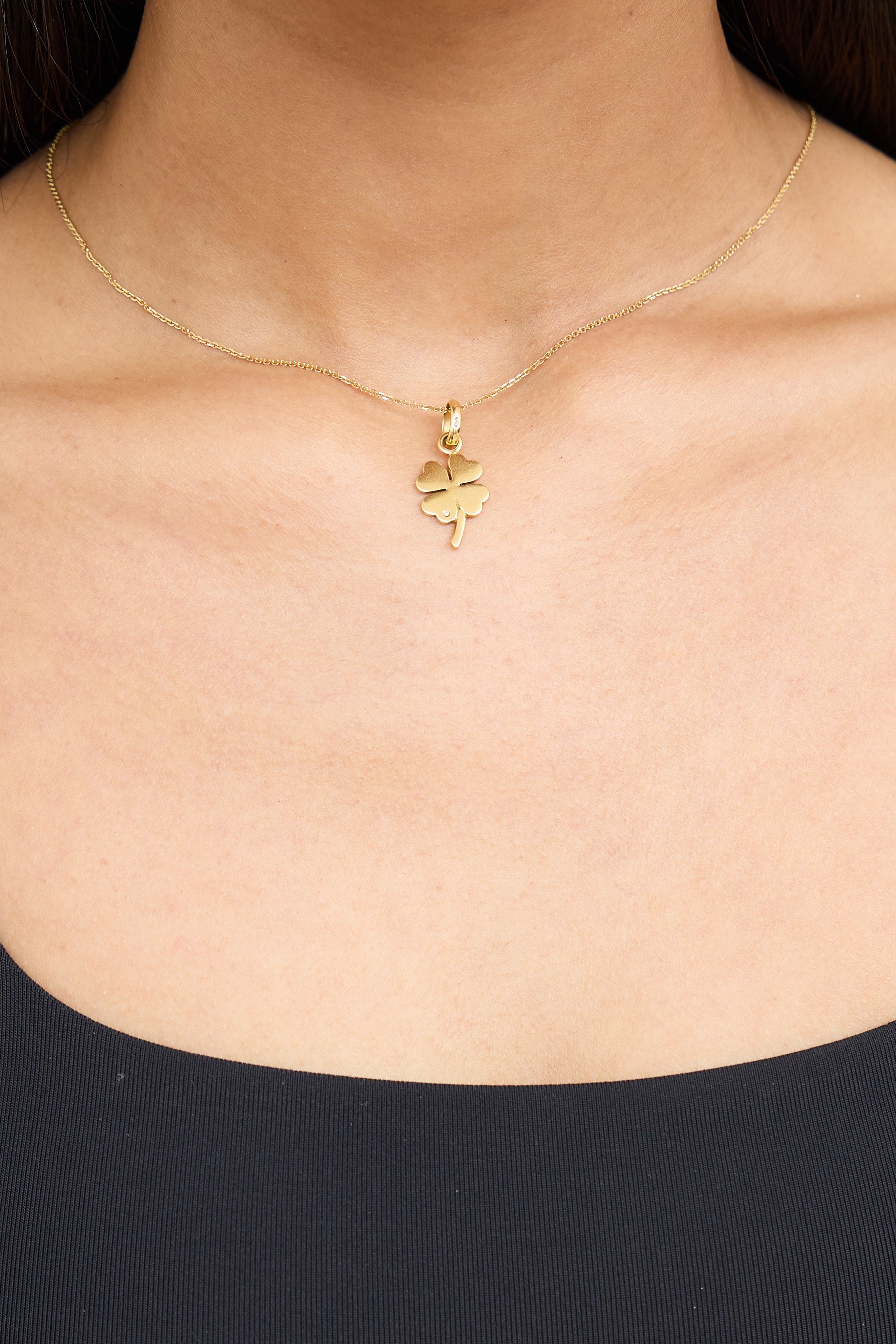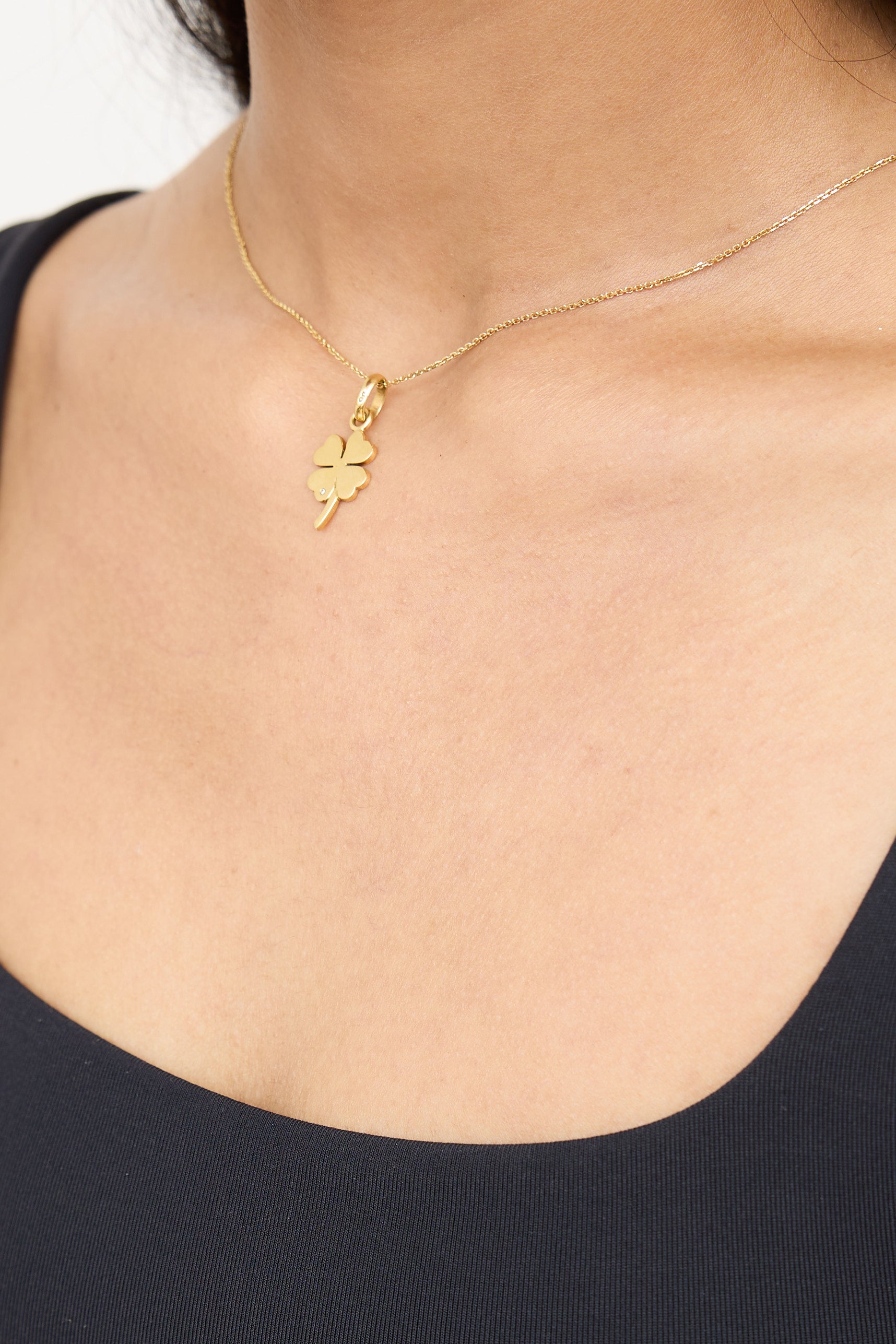 18K Yellow Gold Clover Charm Necklace