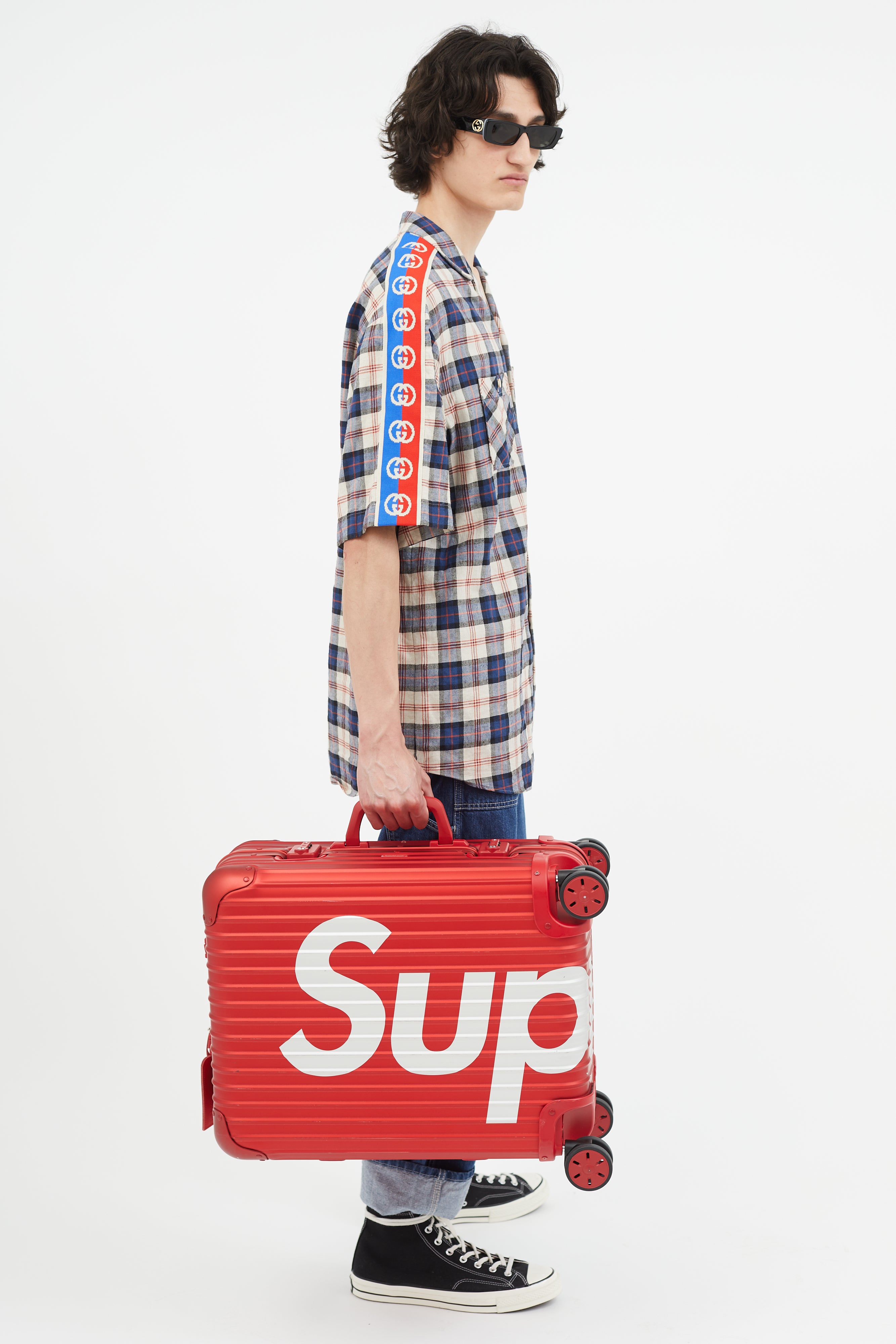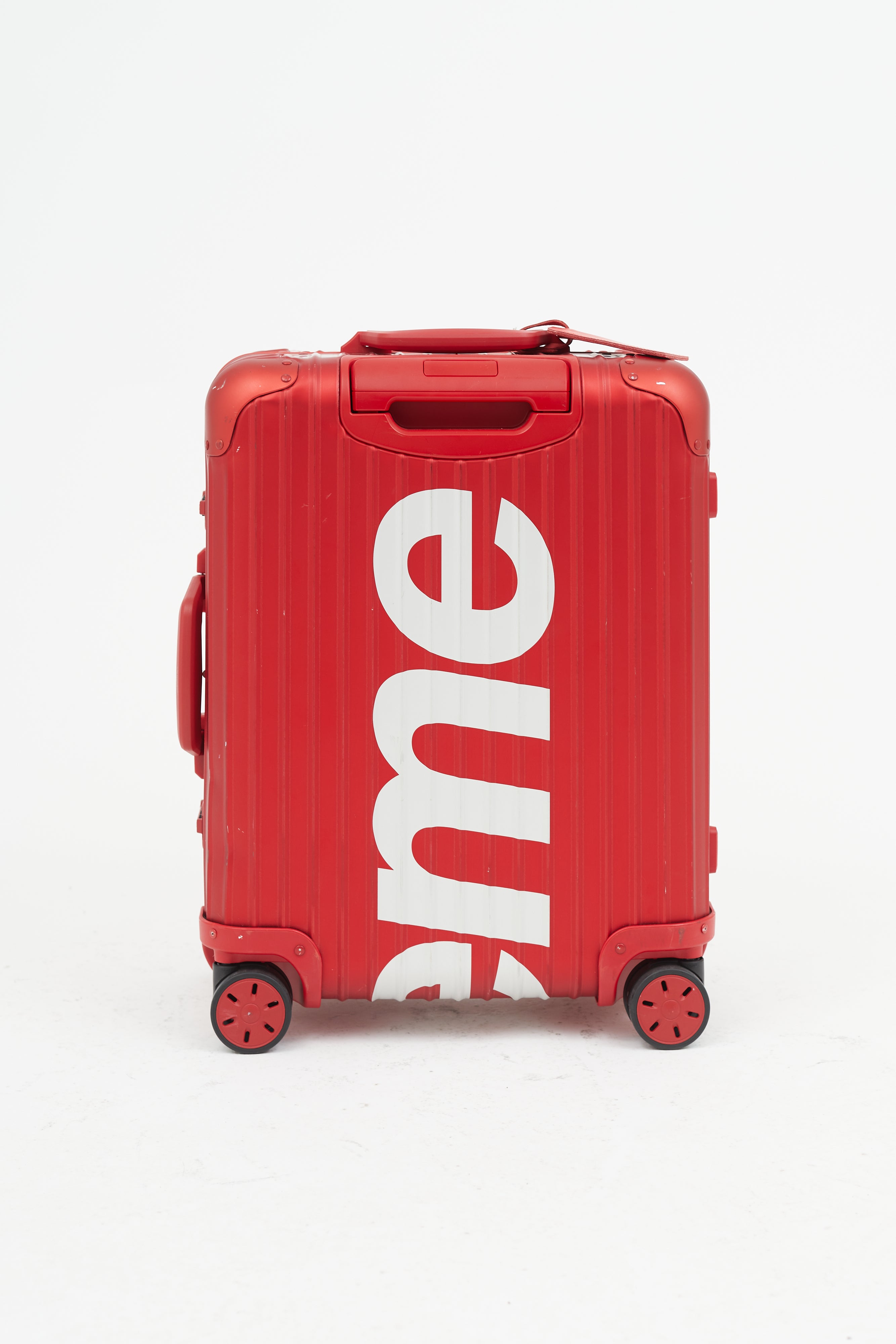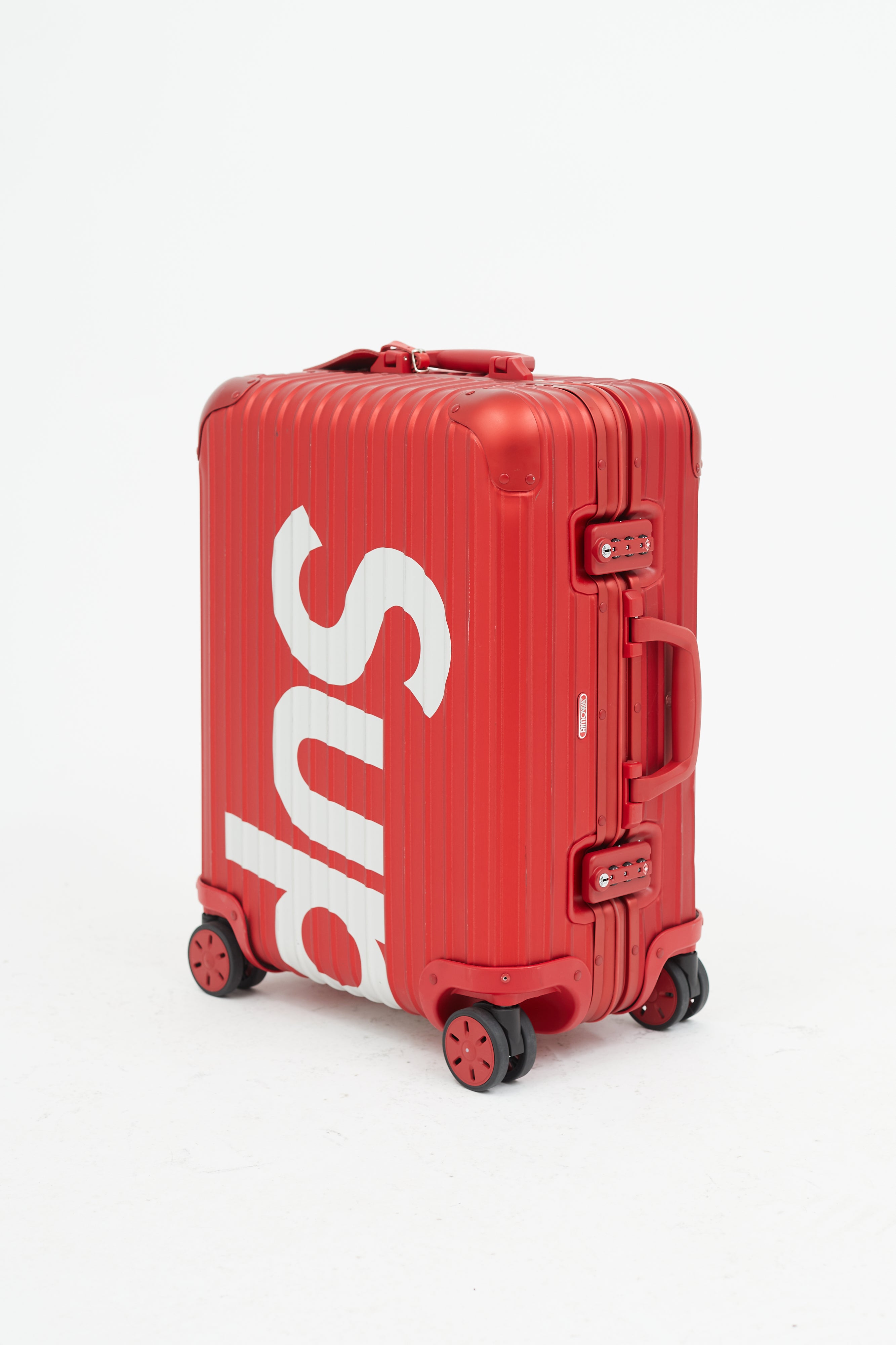 Rimowa x Supreme 45L Red & White Logo Hard Case Topas Luggage