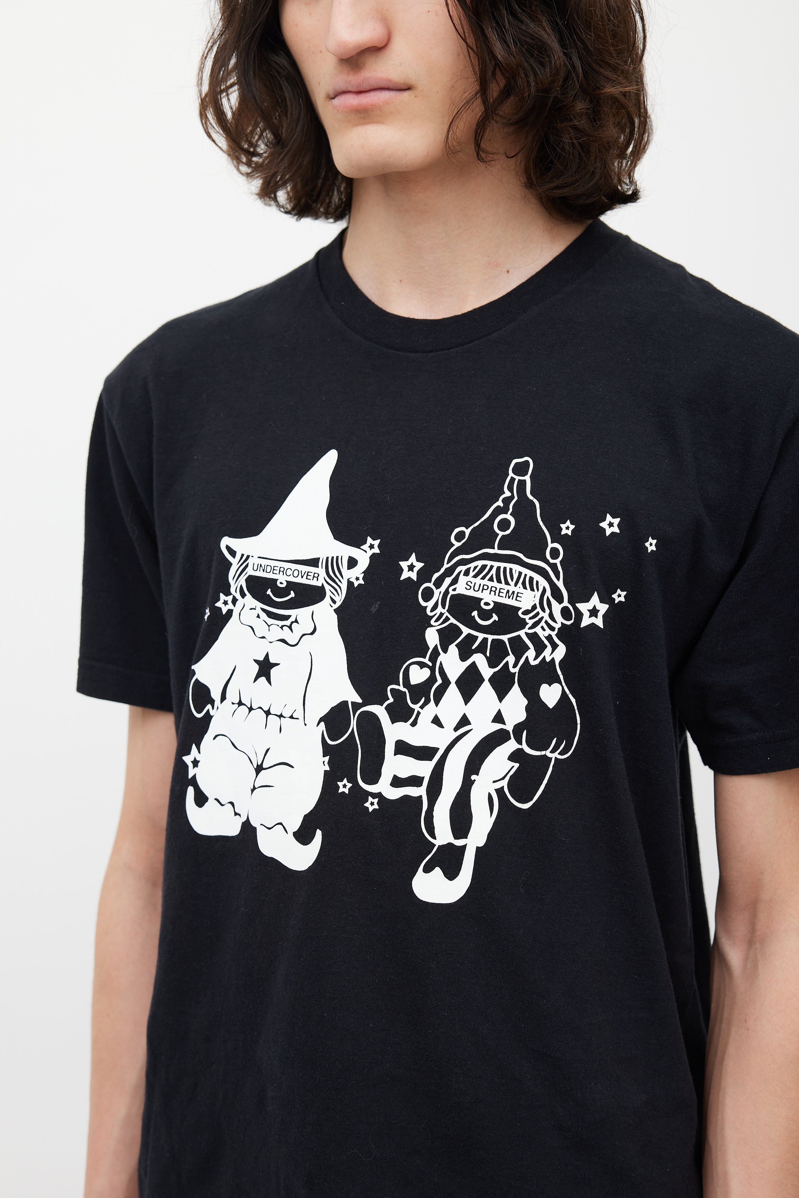 Pre-owned Supreme x Undercover black T-shirt featuring a white clown logo at chest, round neckline, and short sleeves.