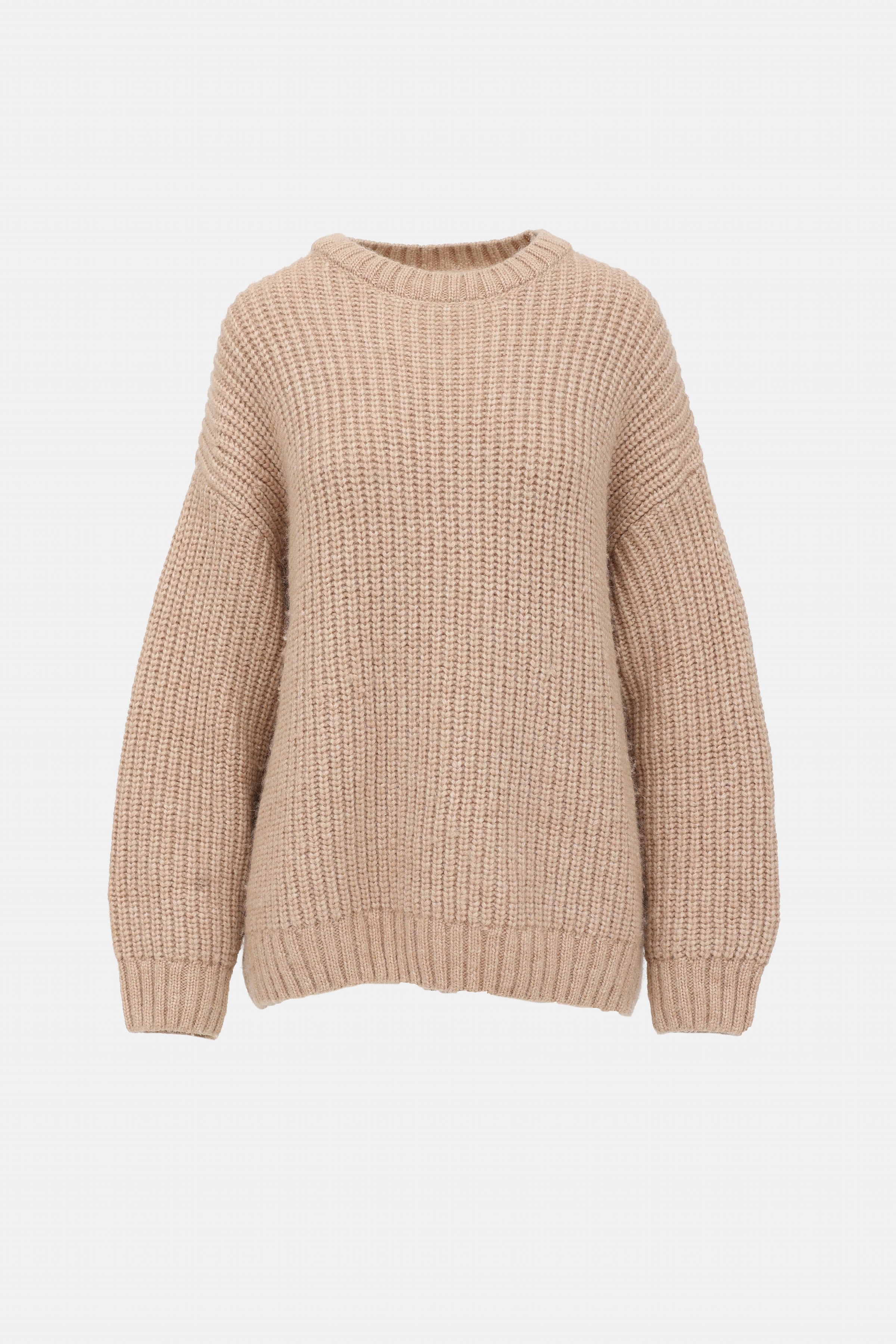 Pre-owned Anine Bing brown Sydney knit sweater featuring a crew neckline, long sleeves, and ribbed detailing.