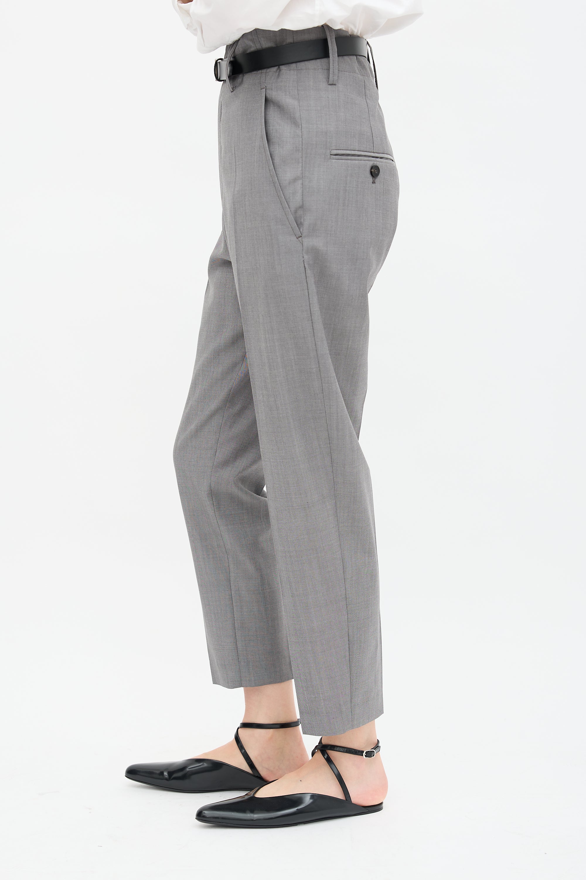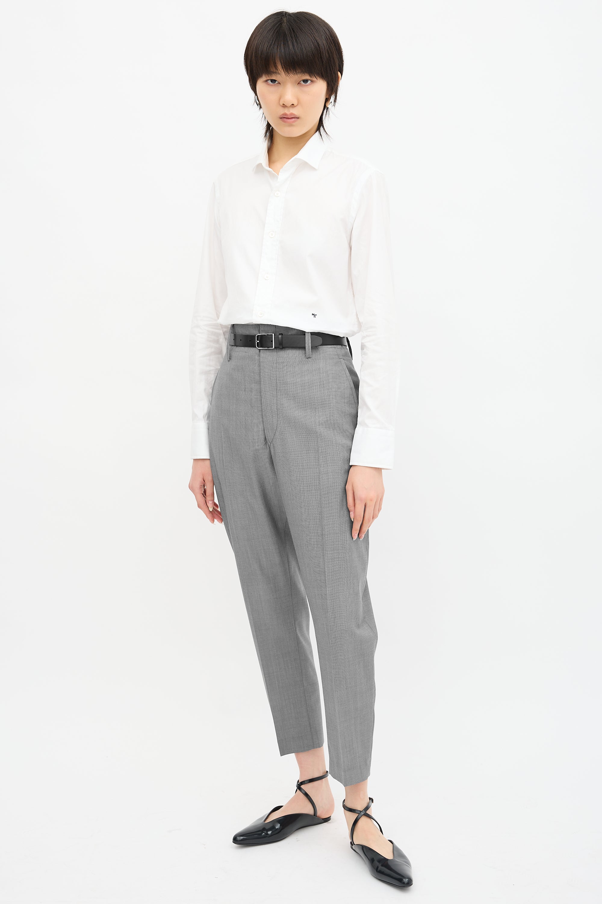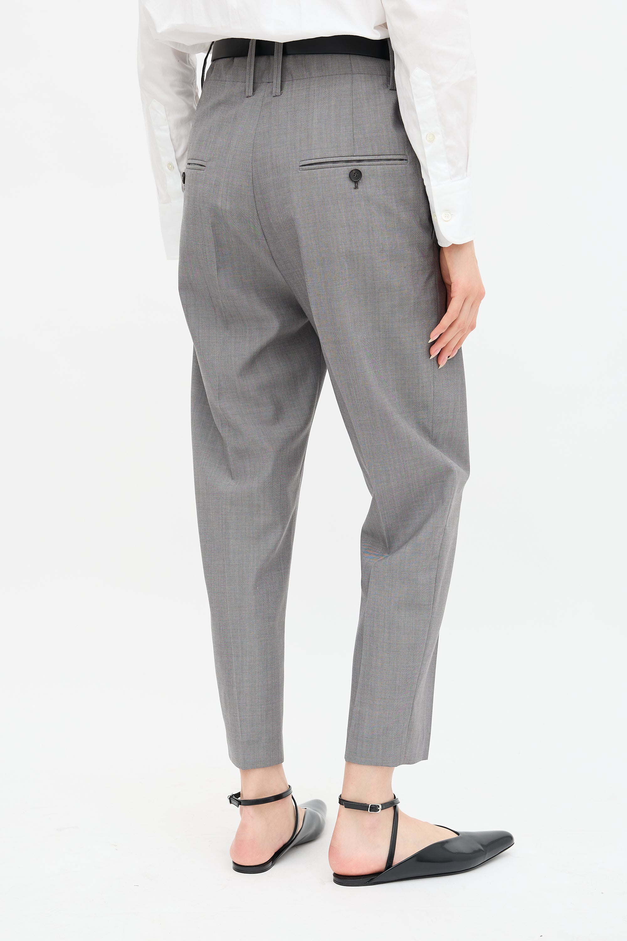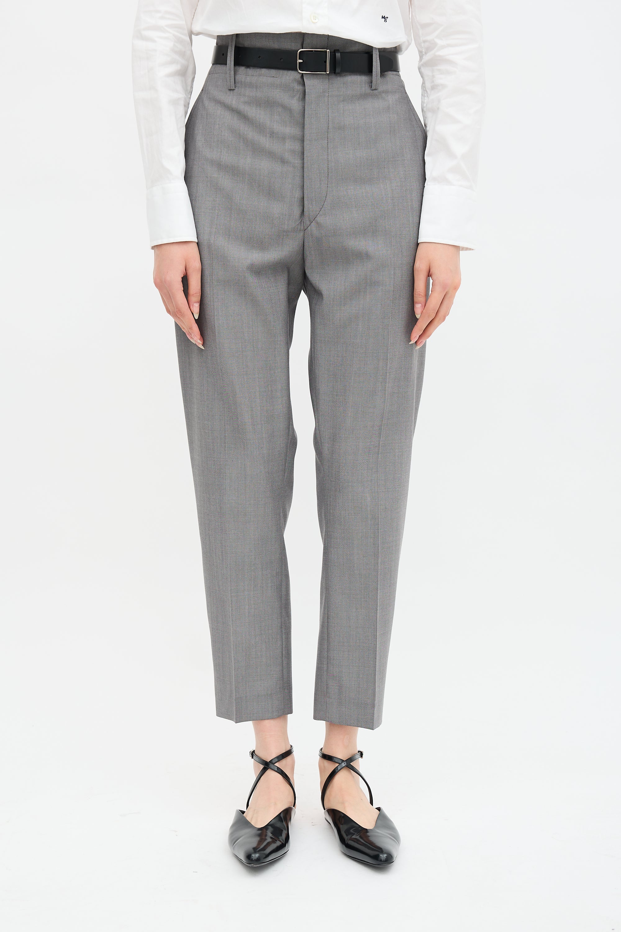 Pre-owned Isabel Marant Étoile grey cotton blend high waist trousers featuring a zip fly, belt loops, four pocket styling, pressed seams and a tapered leg.