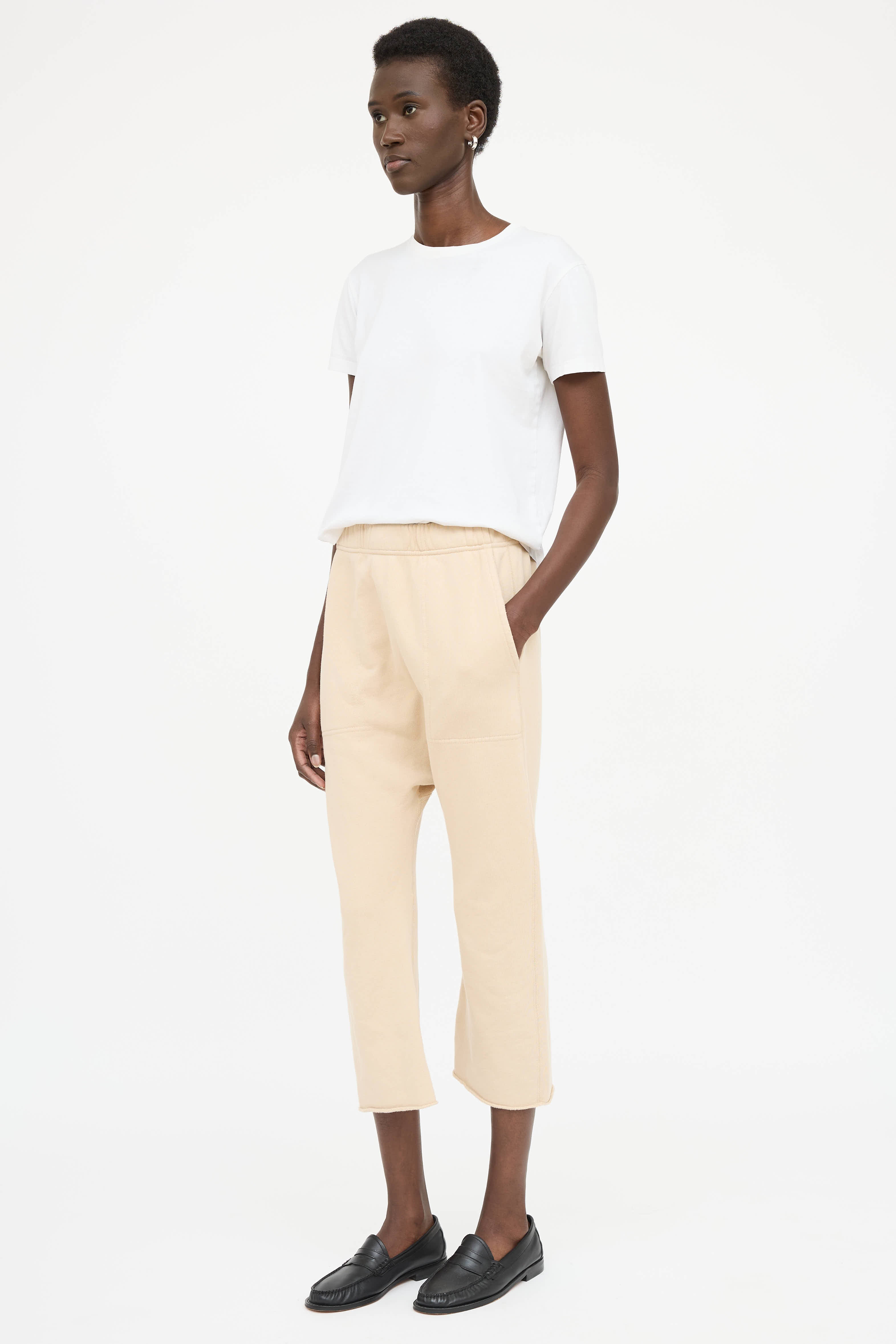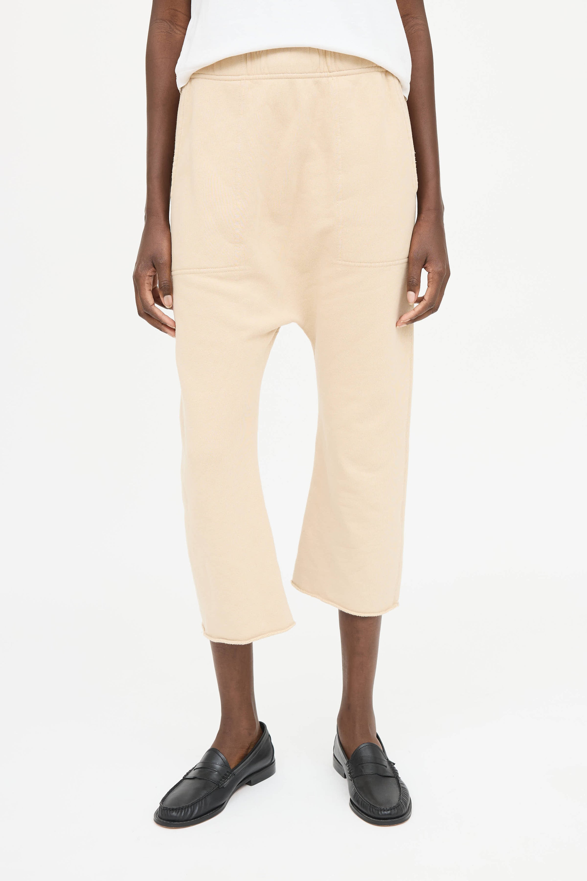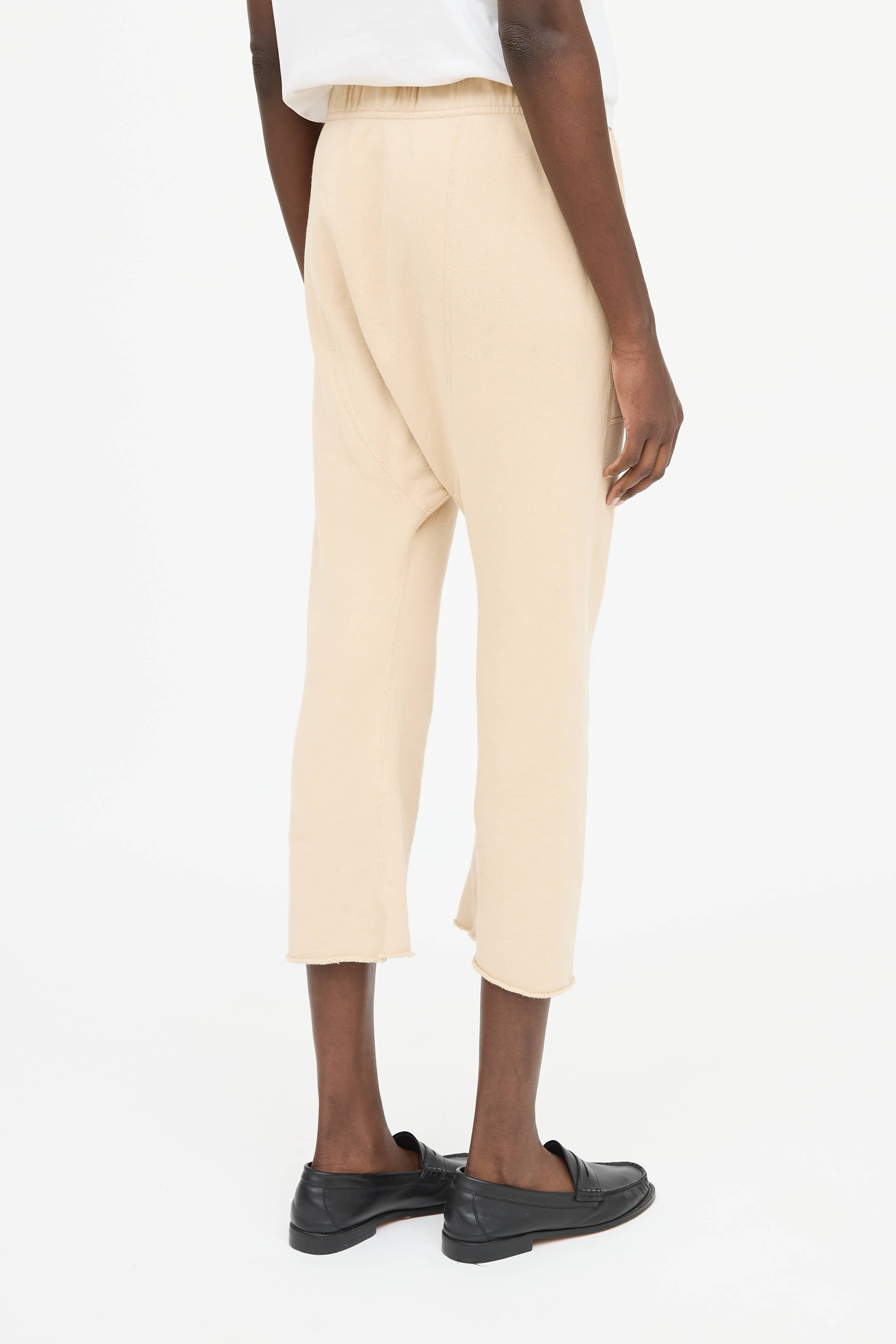 Pre-owned Nili Lotan beige sweatpants featuring drawstring waistband, slit pockets at hip, and dropped seat.