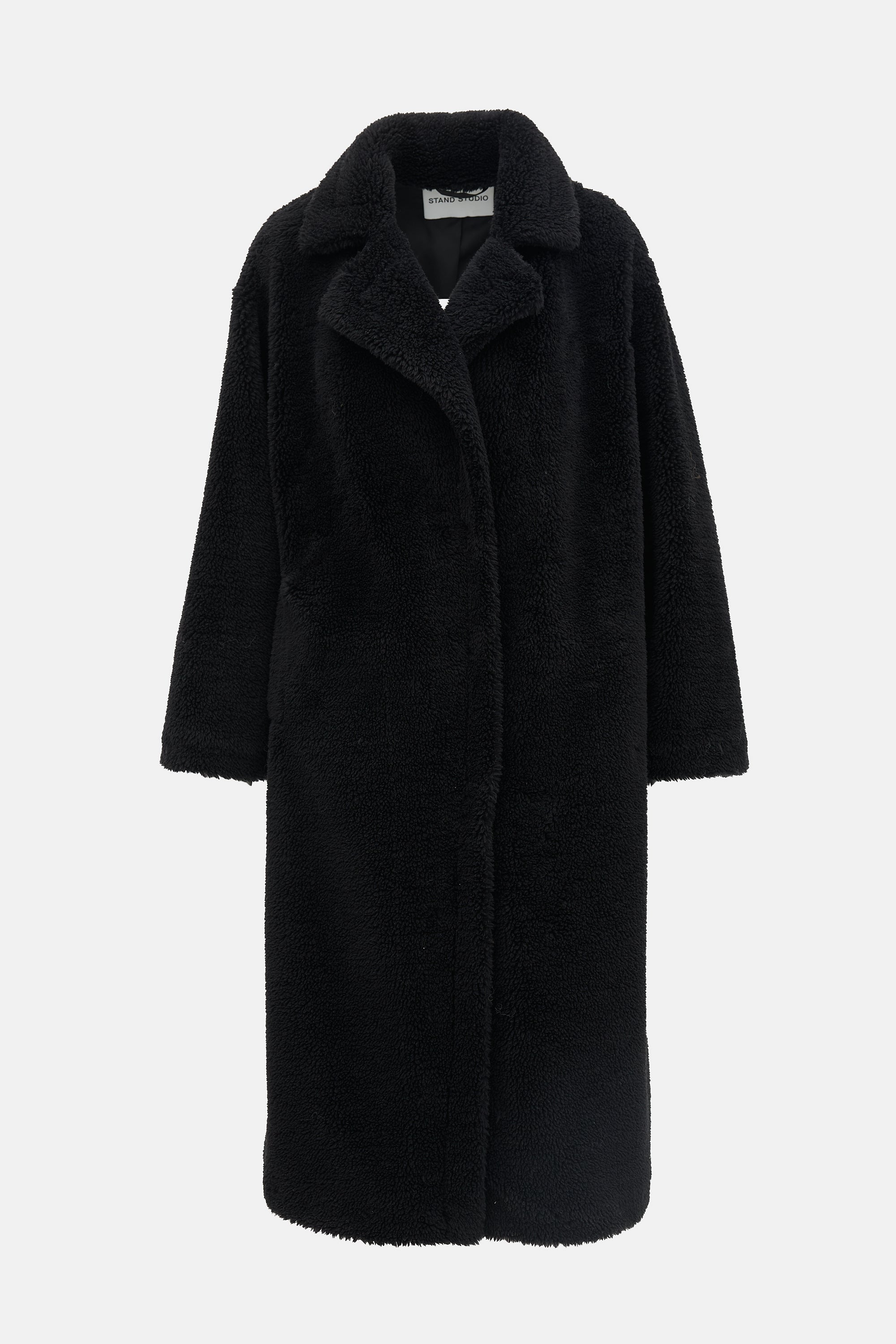 Pre-owned Stand Studio black Maria Oversized Teddy coat featuring wide collar and lapel, snap button up front, two front slip pockets. Lined.