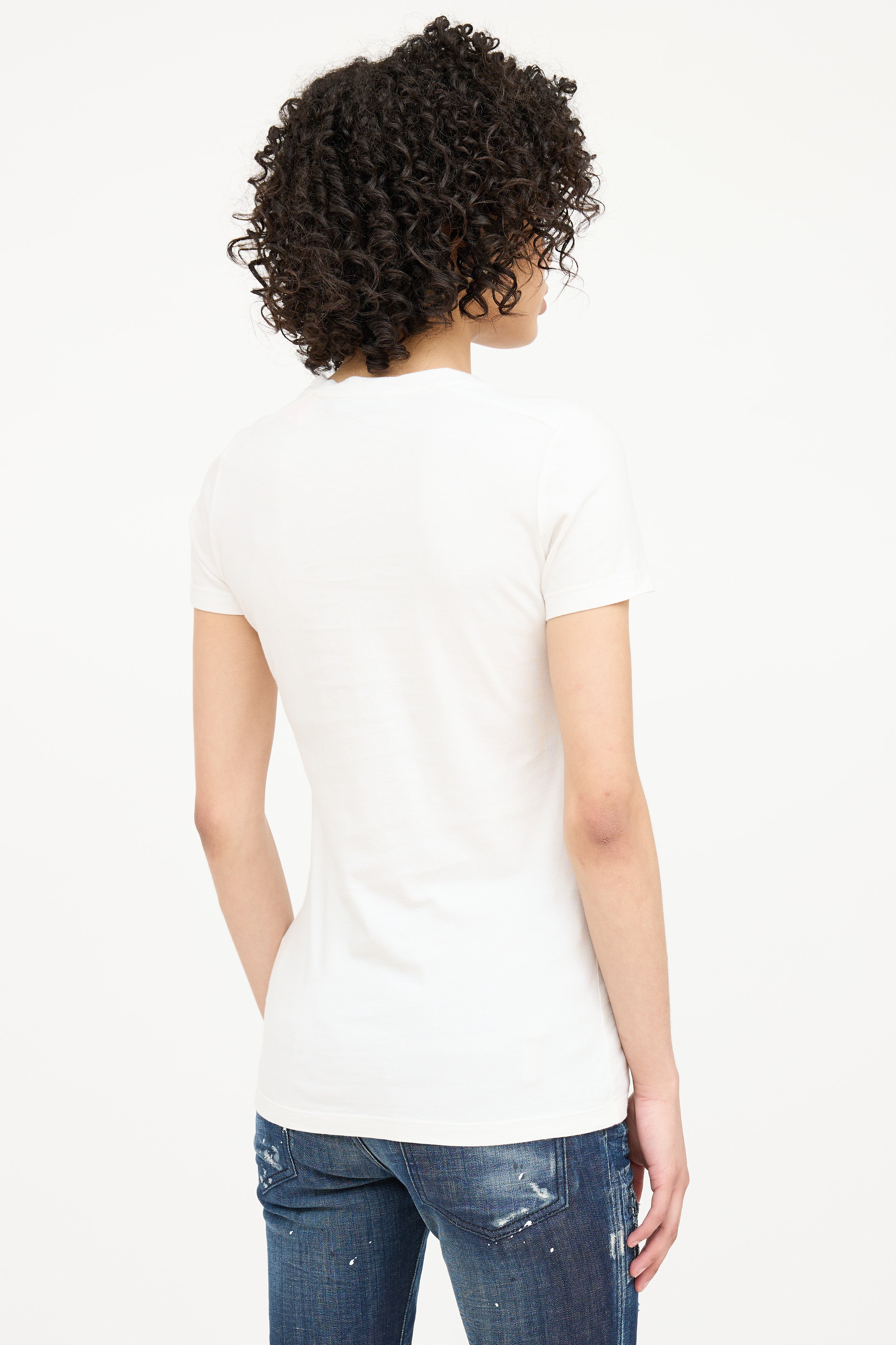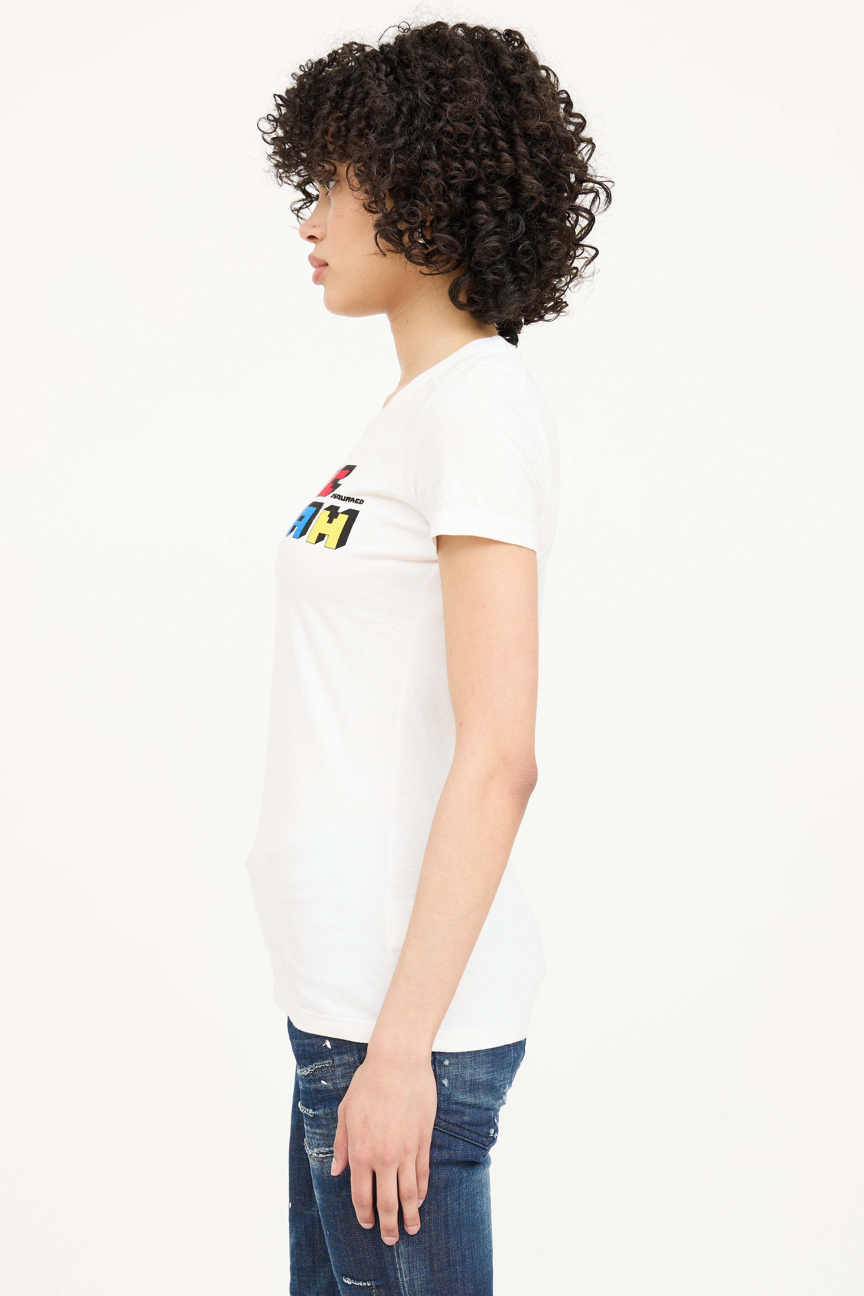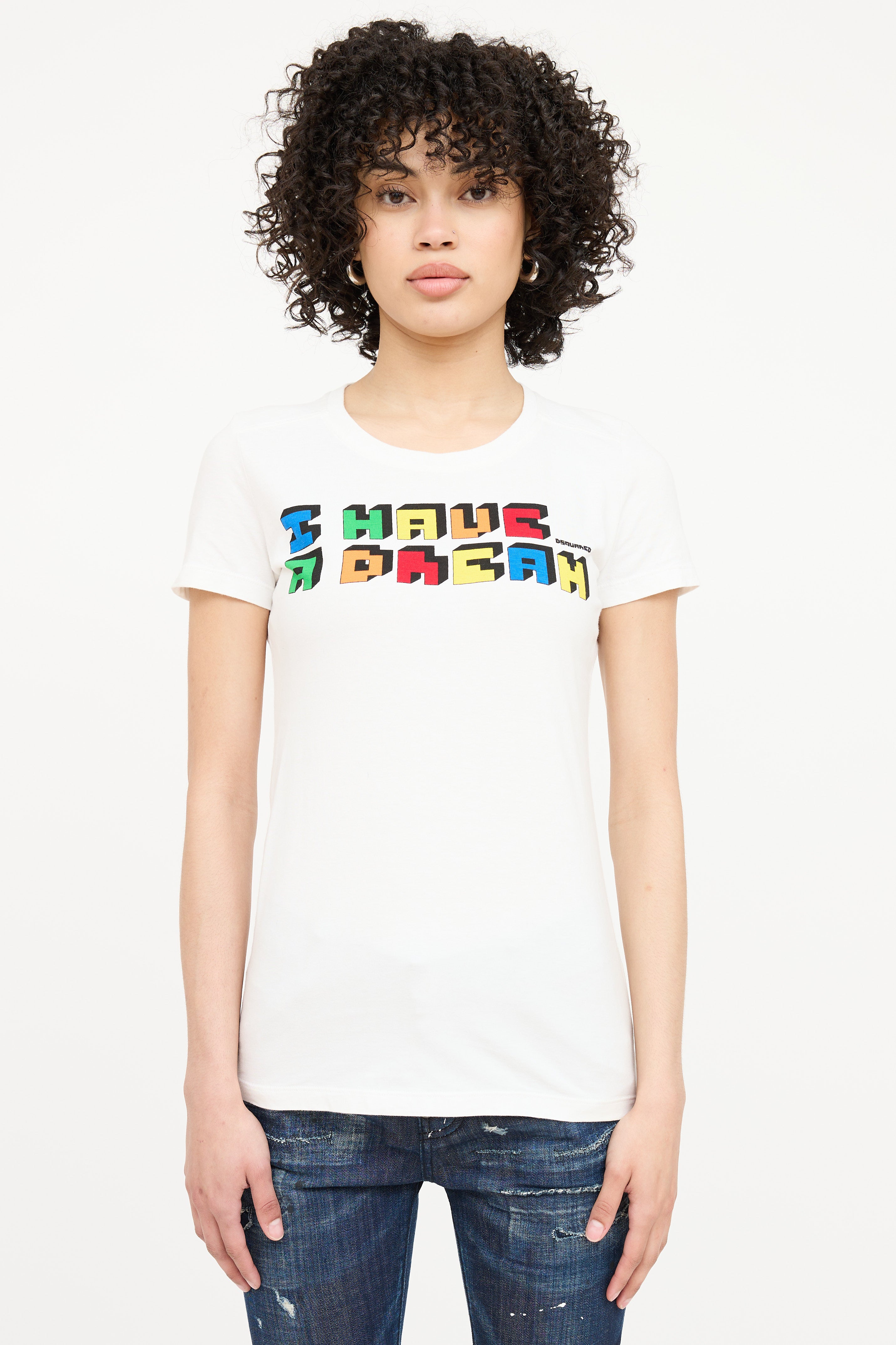 Pre-owned DSquared2 white T-shirt featuring a multicolour I Have A Dream graphic print at chest, round neckline, and short sleeves.