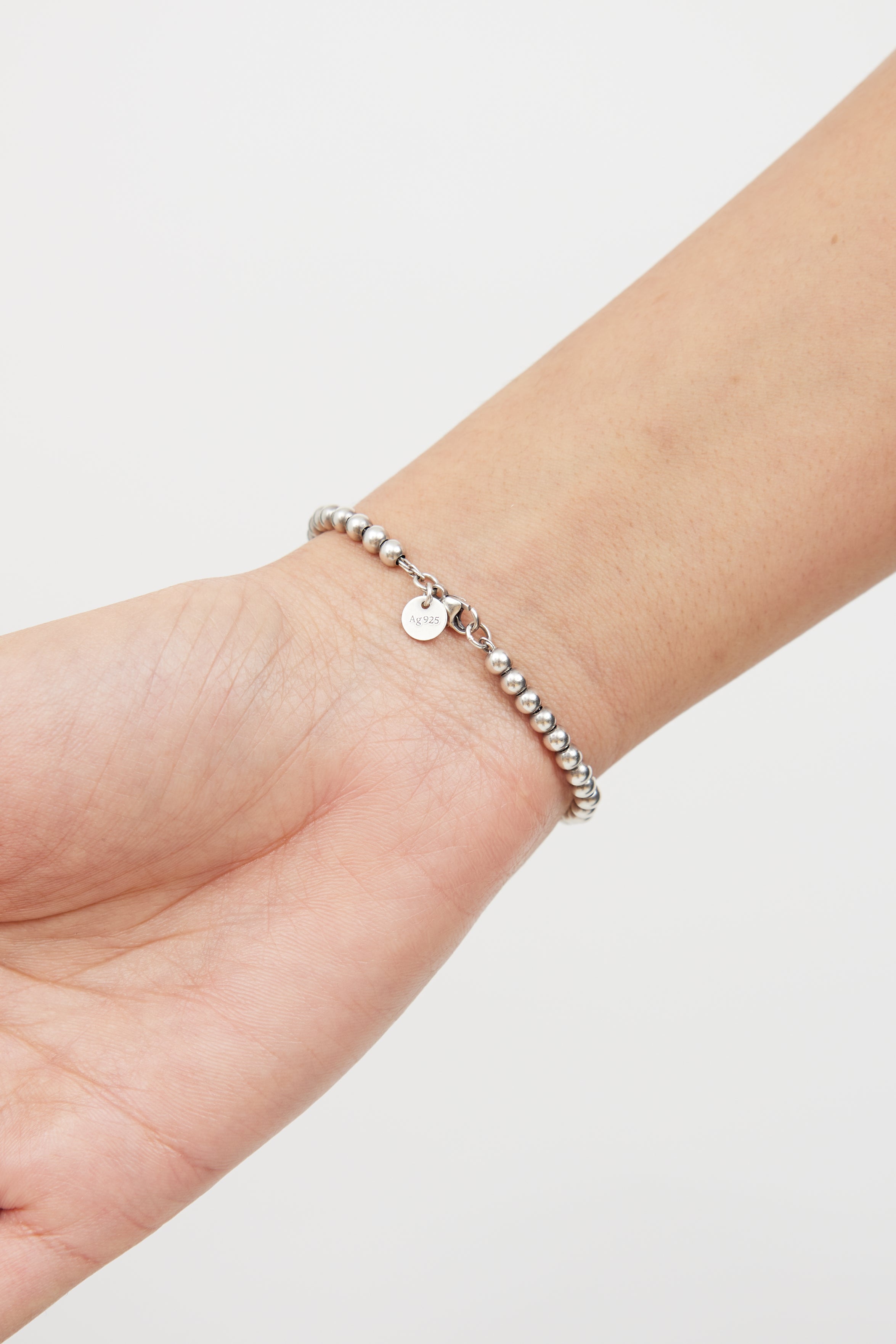 Sterling Silver Beaded Heart Tag Bracelet