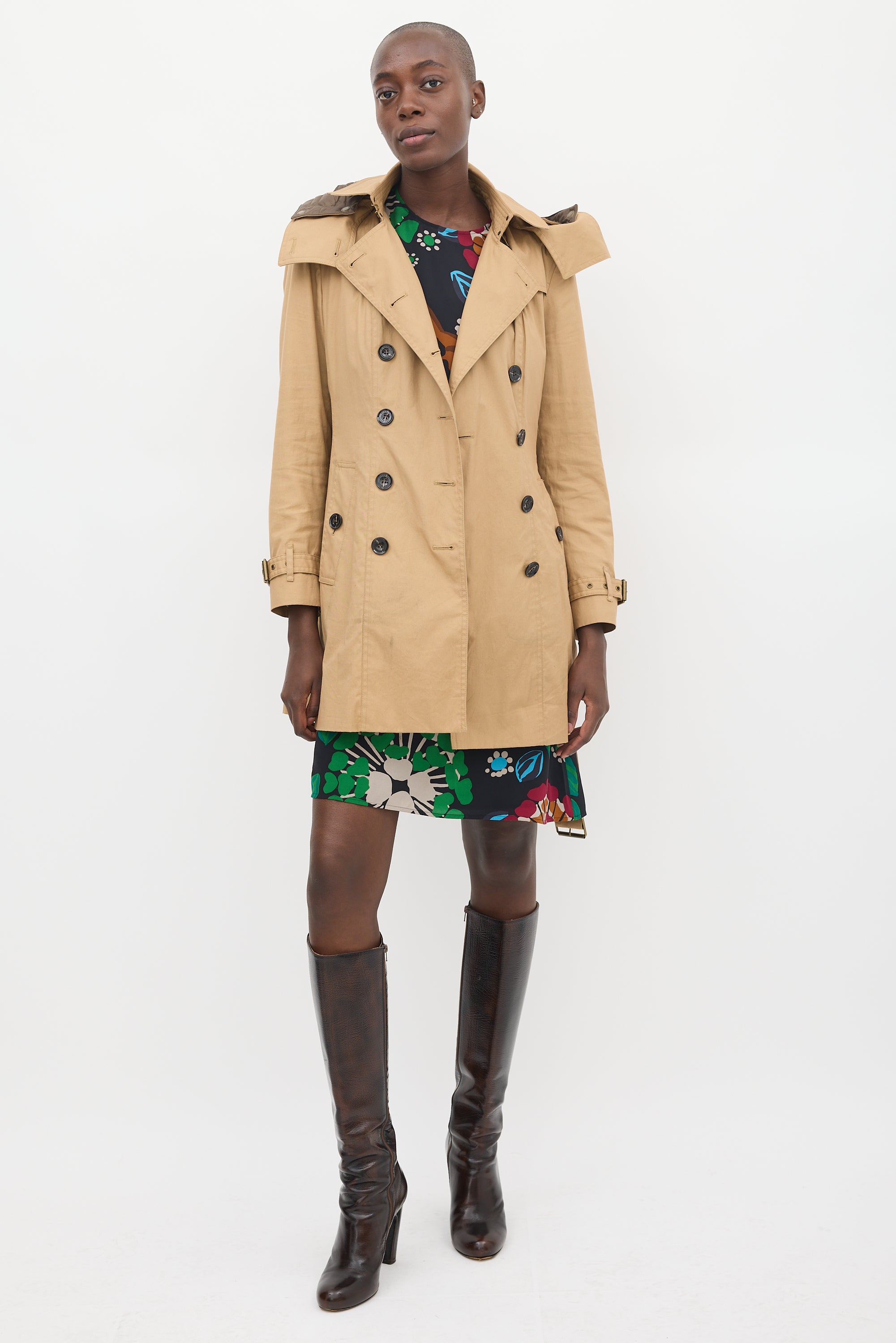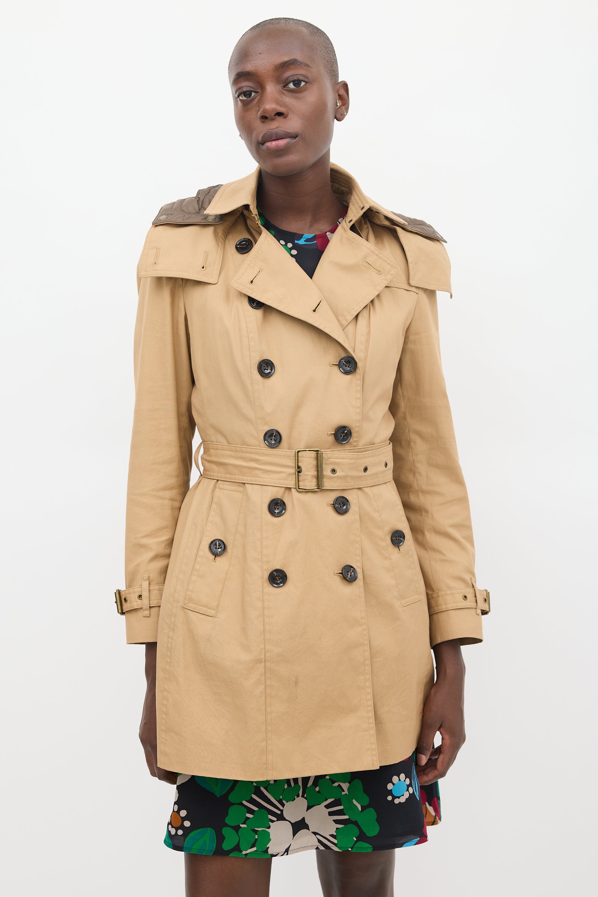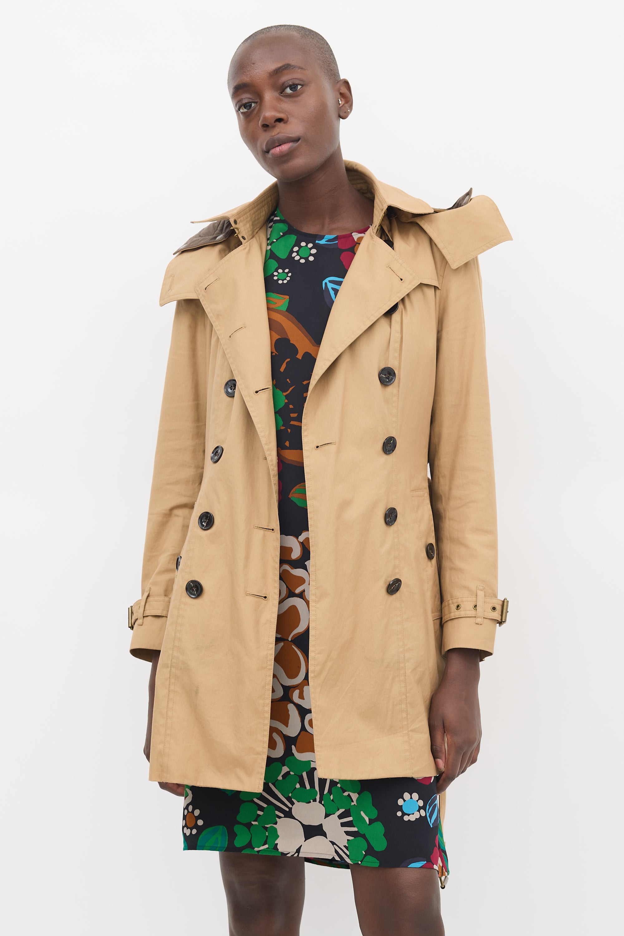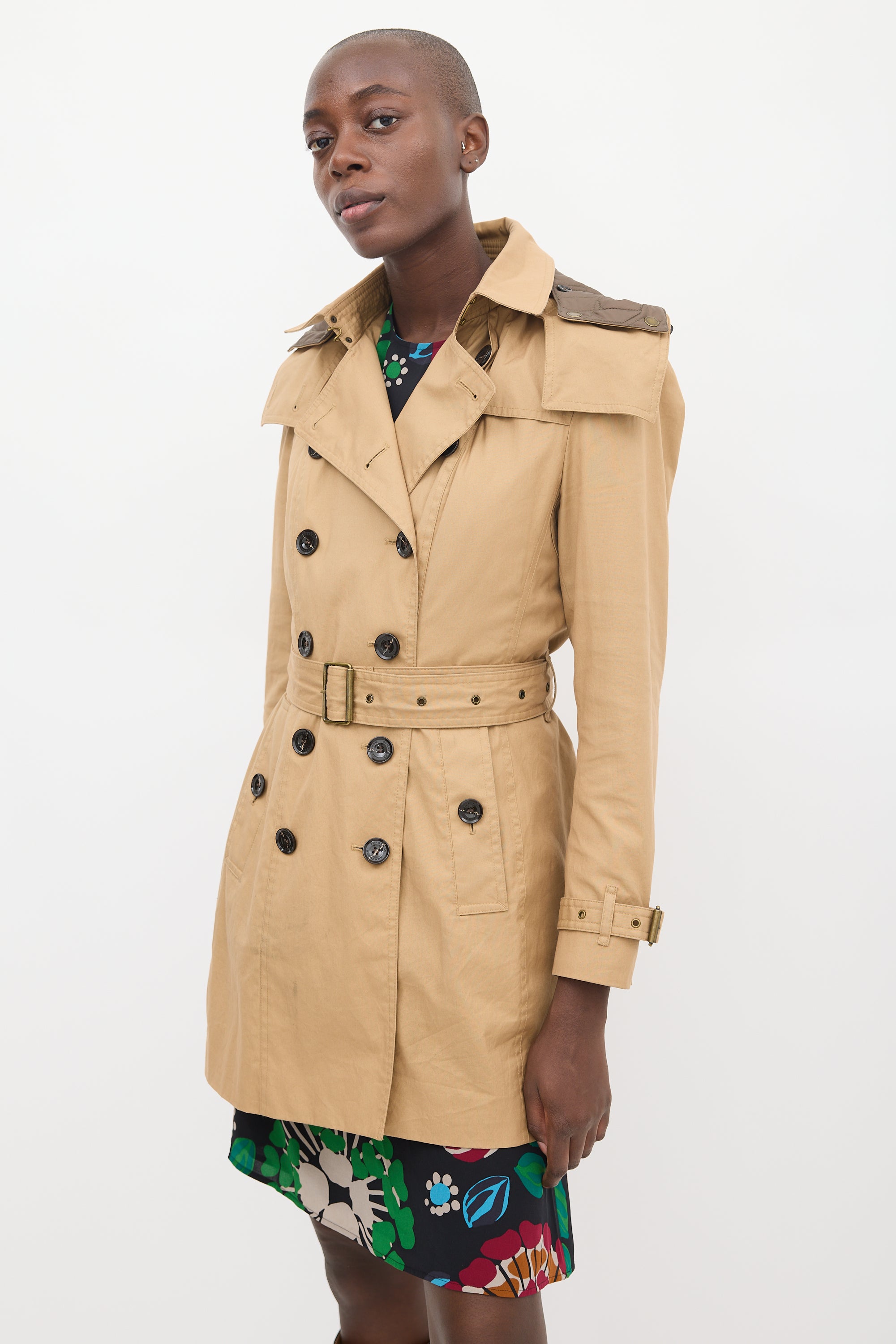 Brown Cotton Modular Hooded Mid Length Trench Coat US 8 Size Guide