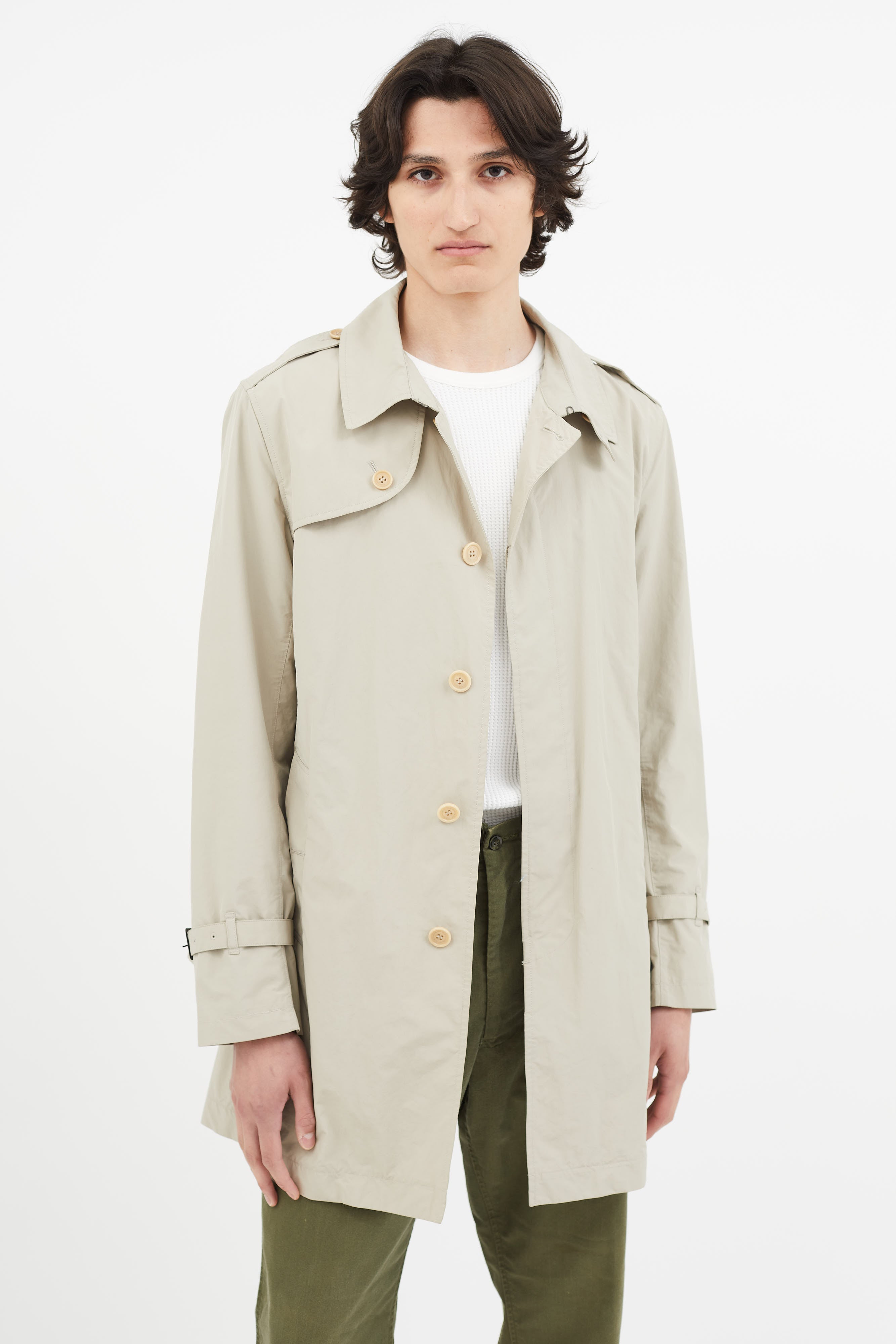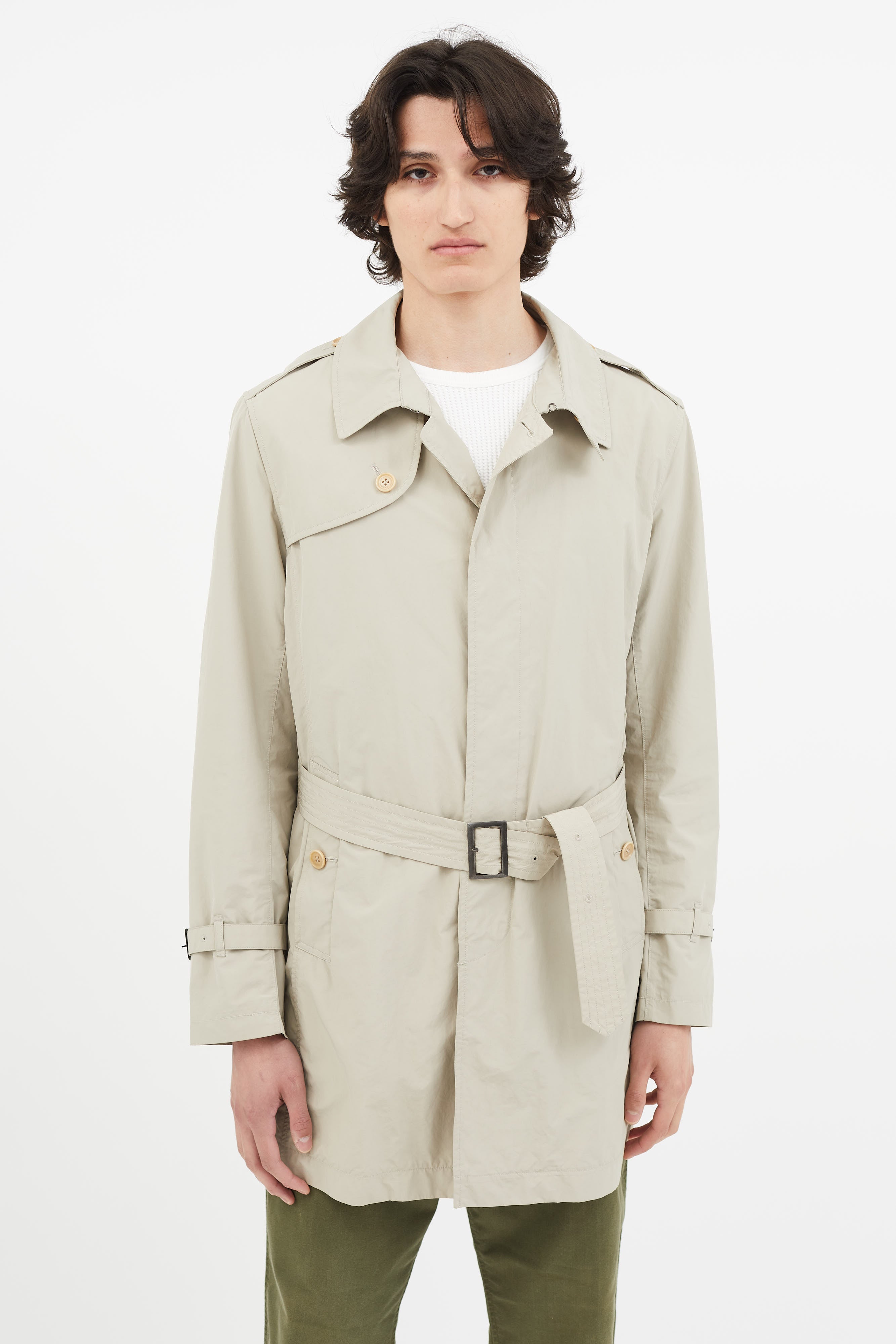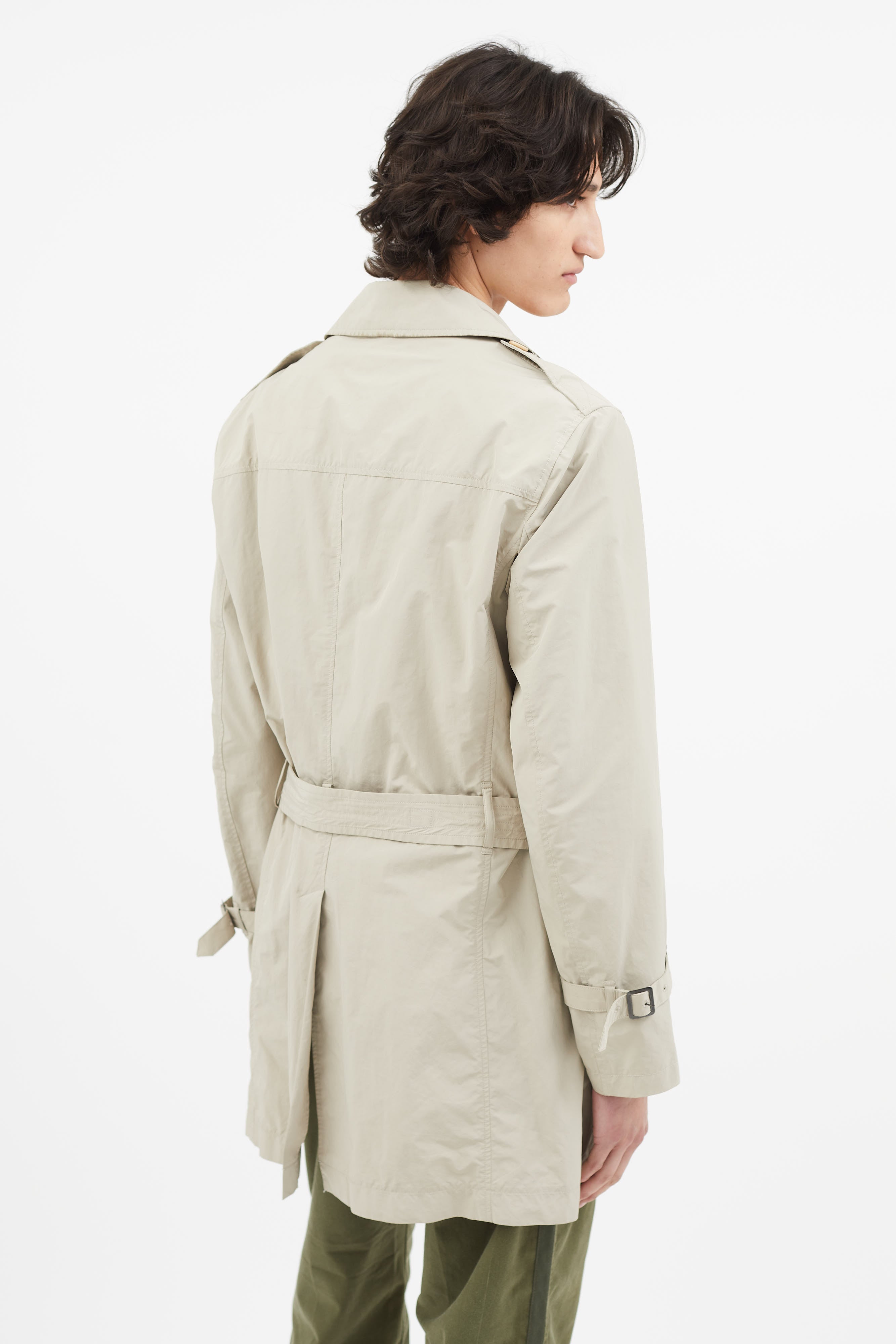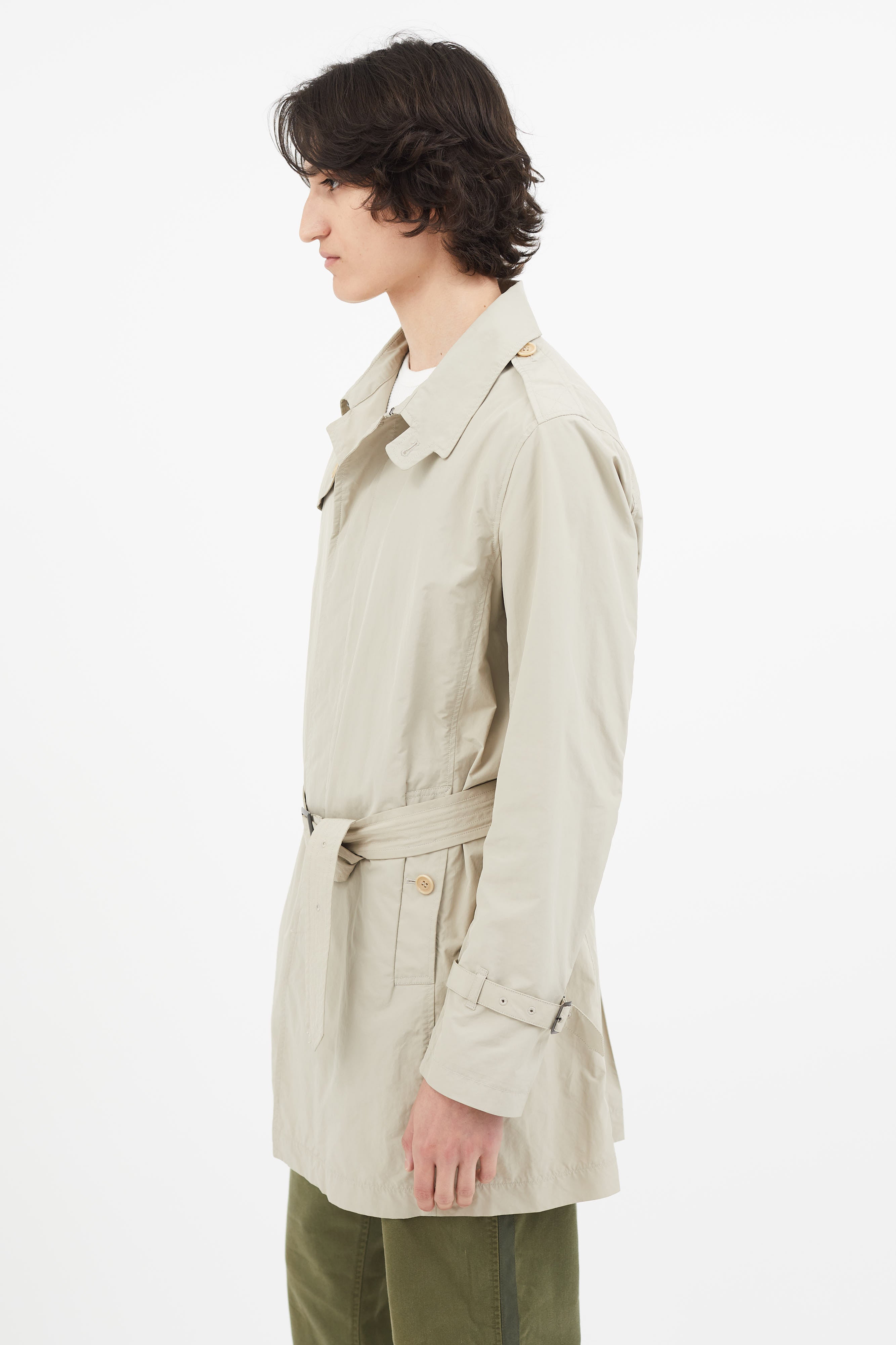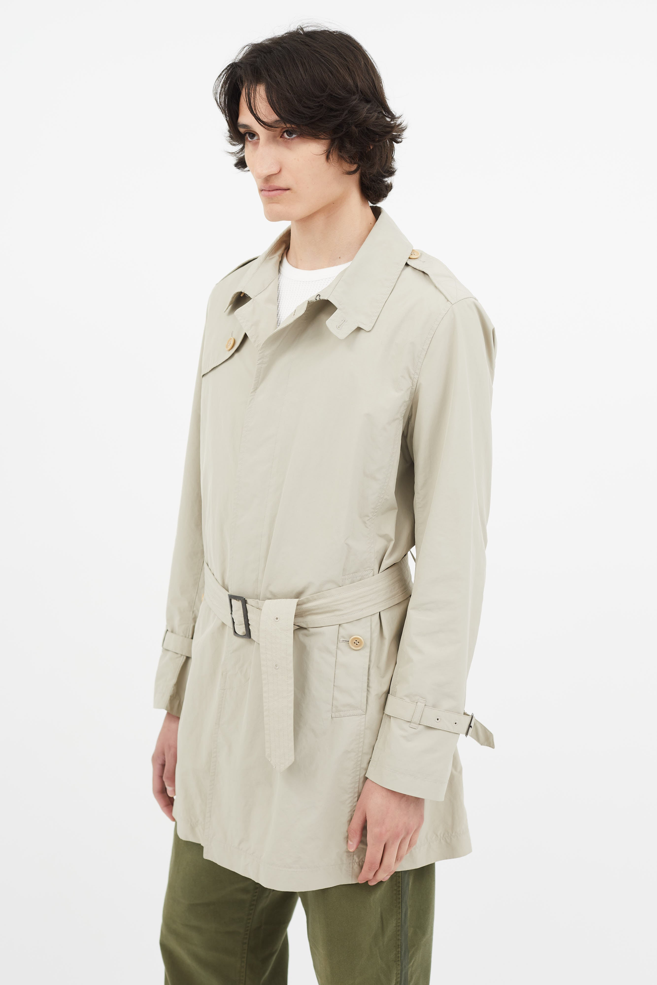 Beige Nylon Belted Trench Coat Small Size Guide