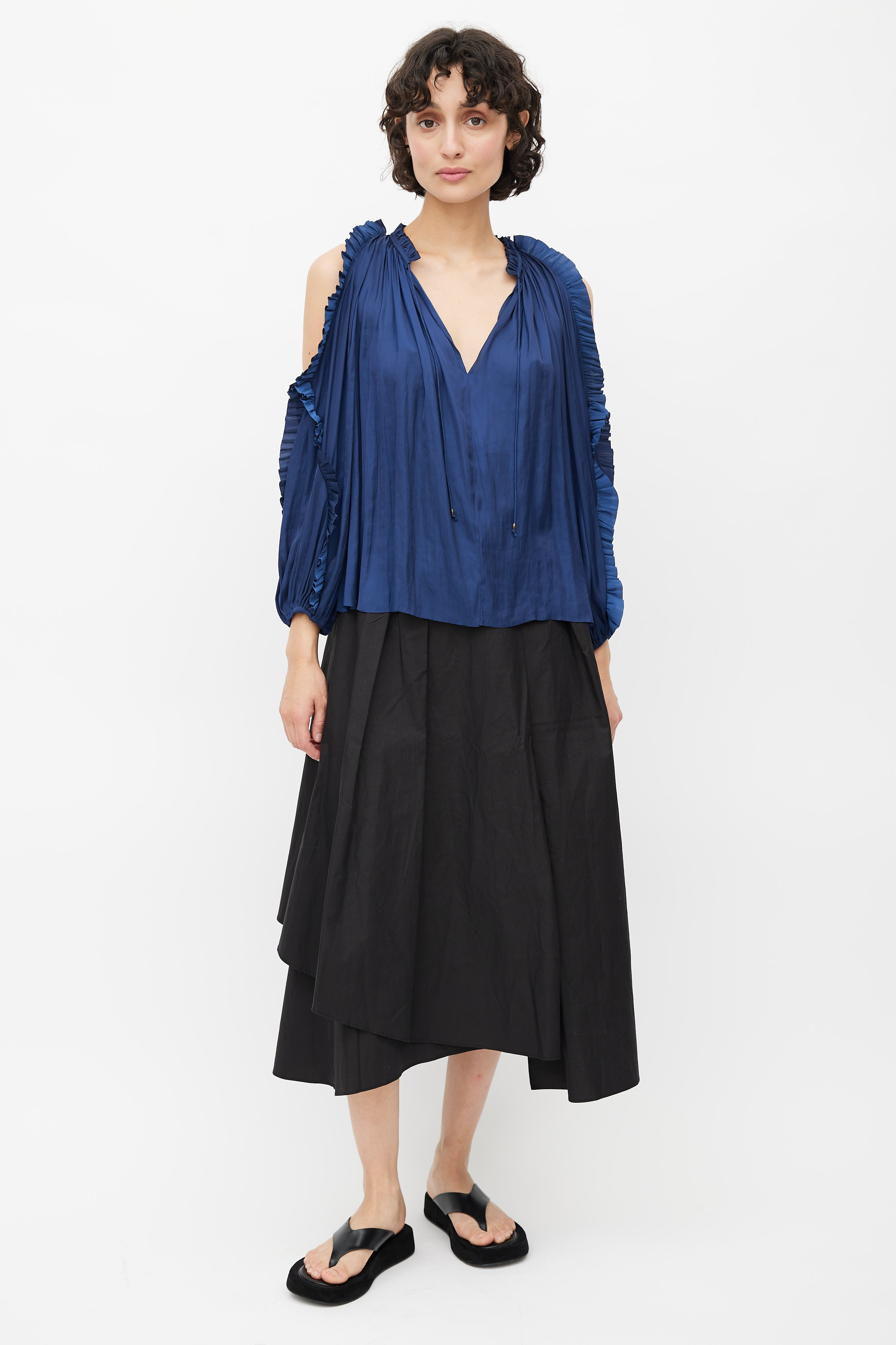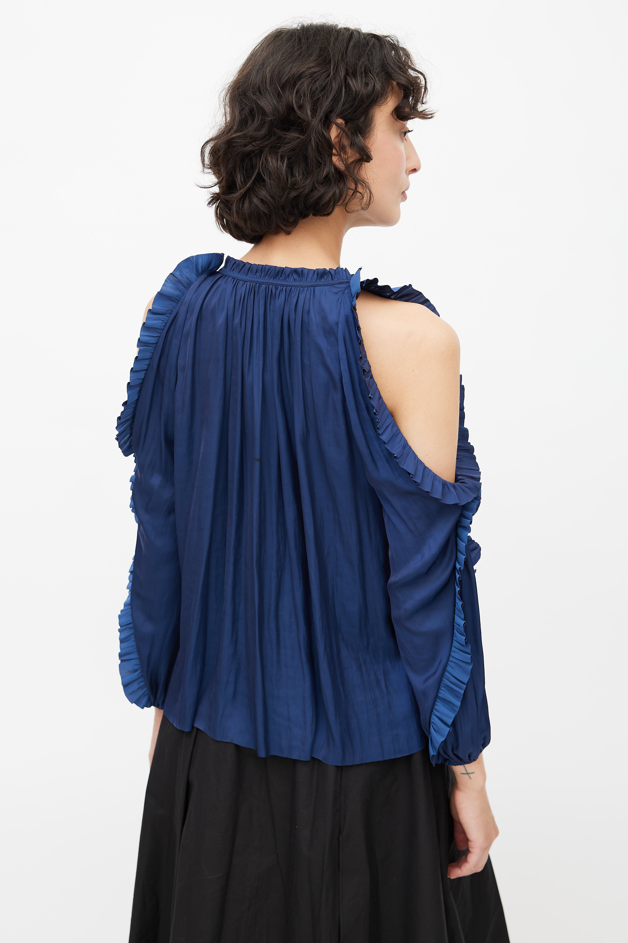 Navy Blue Ruffled Cold Shoulder Blouse US 0 Size Guide