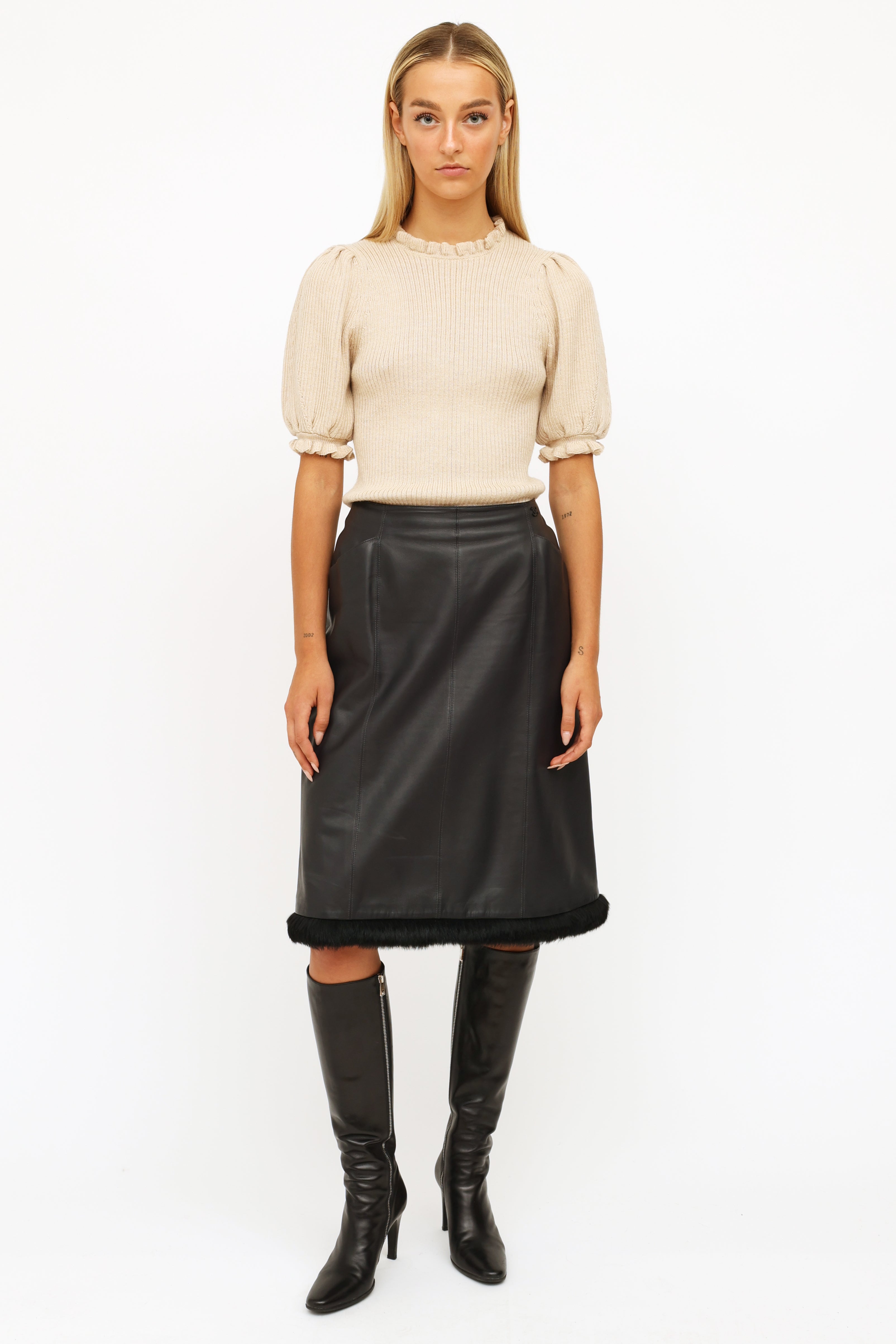 Fall 2002 Leather Fur Trim Skirt FR 40 Size Guide
