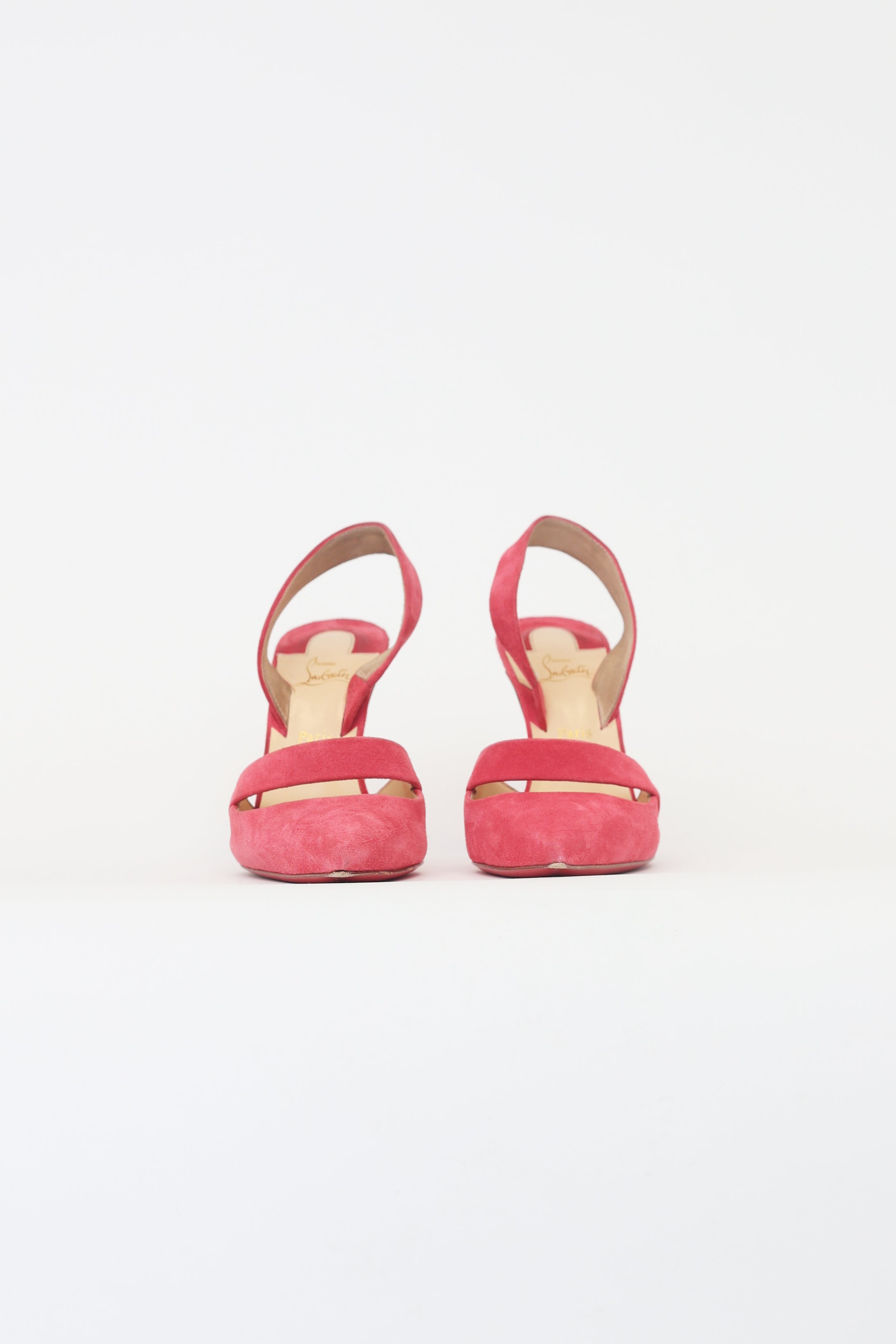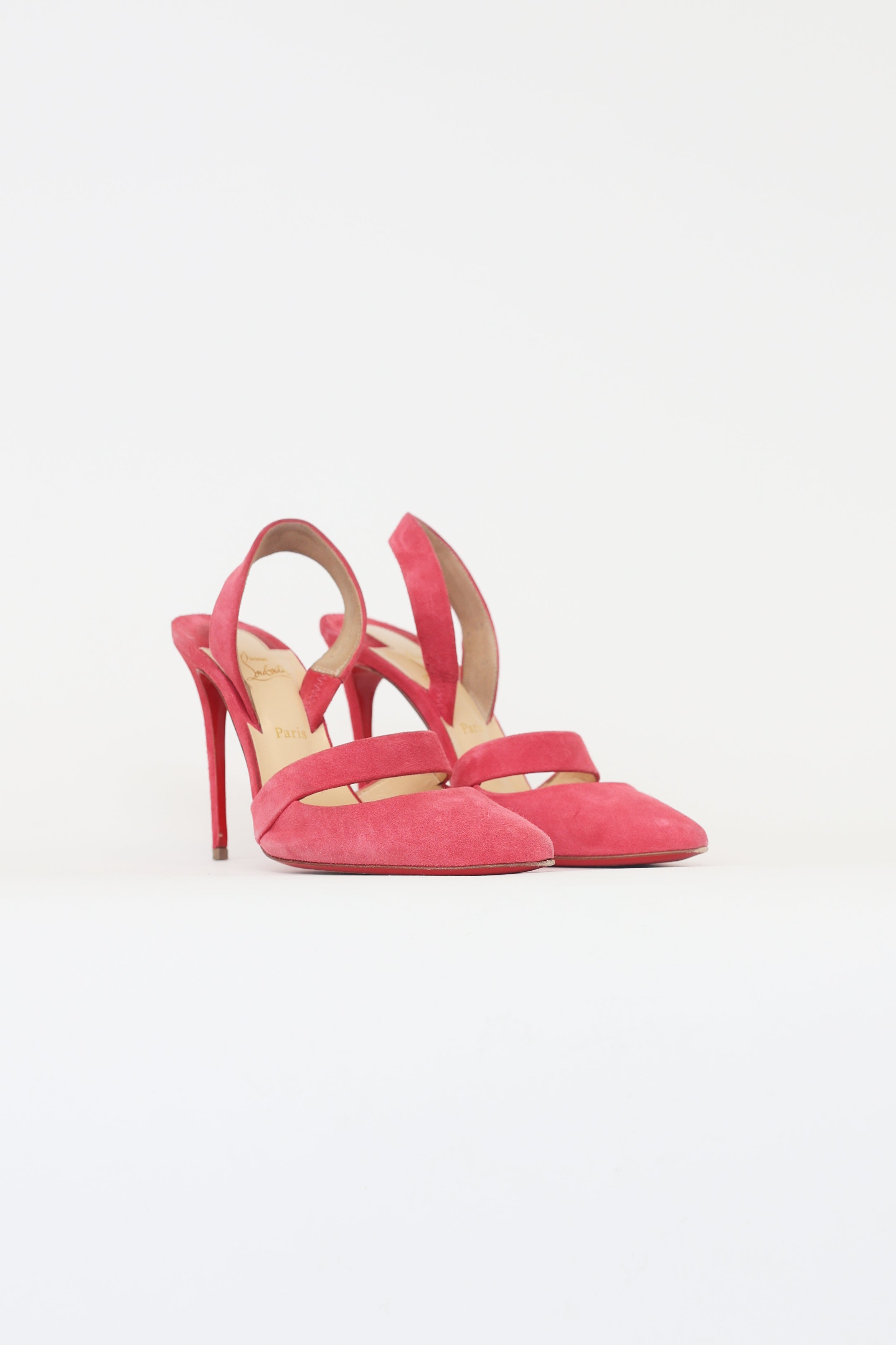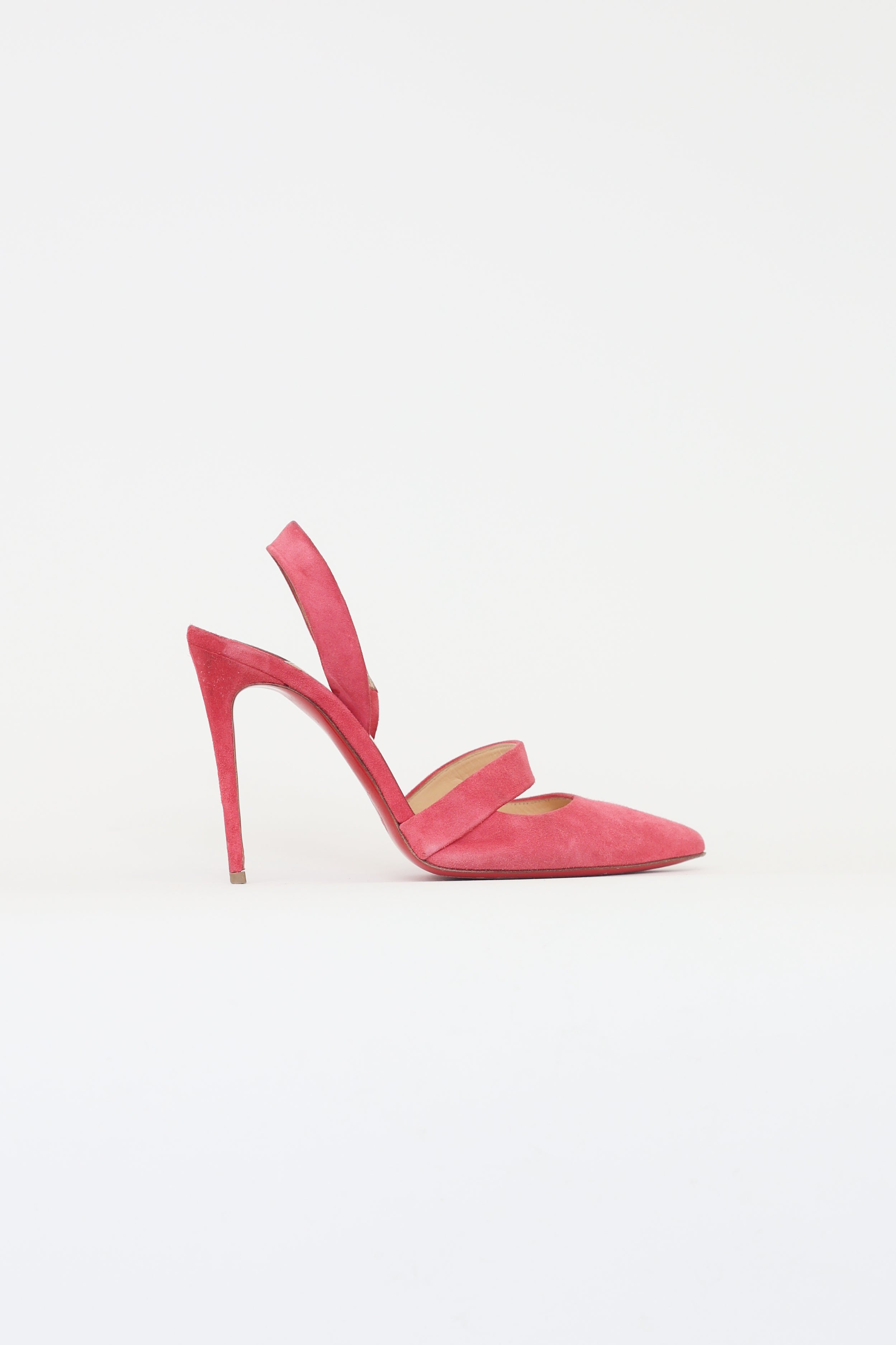 Pre-owned Christian Louboutin pink suede 'Actina' pumps featuring pointed toe, slingback strap and sleek band at vamp.