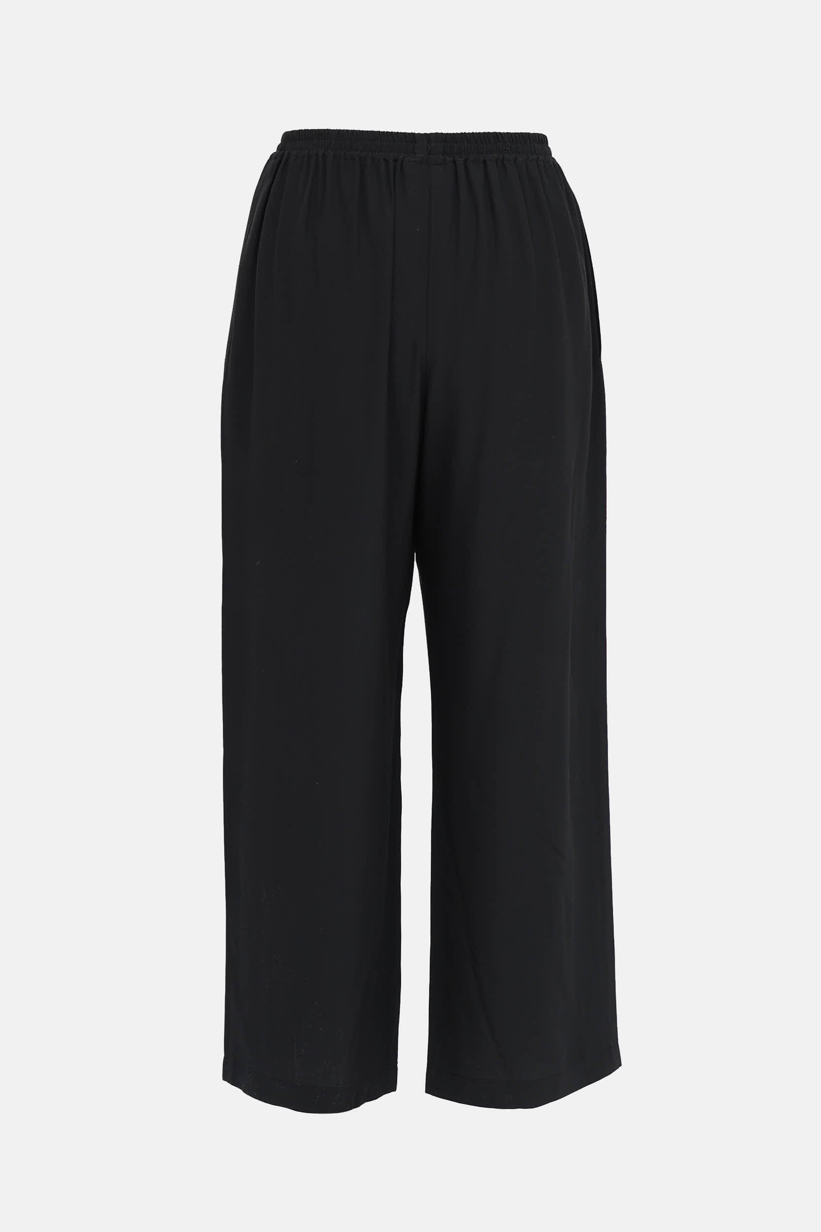 Pre-owned Eskandar black Silk pant featuring elasticized waistband, wide leg, and slip pockets at sides.