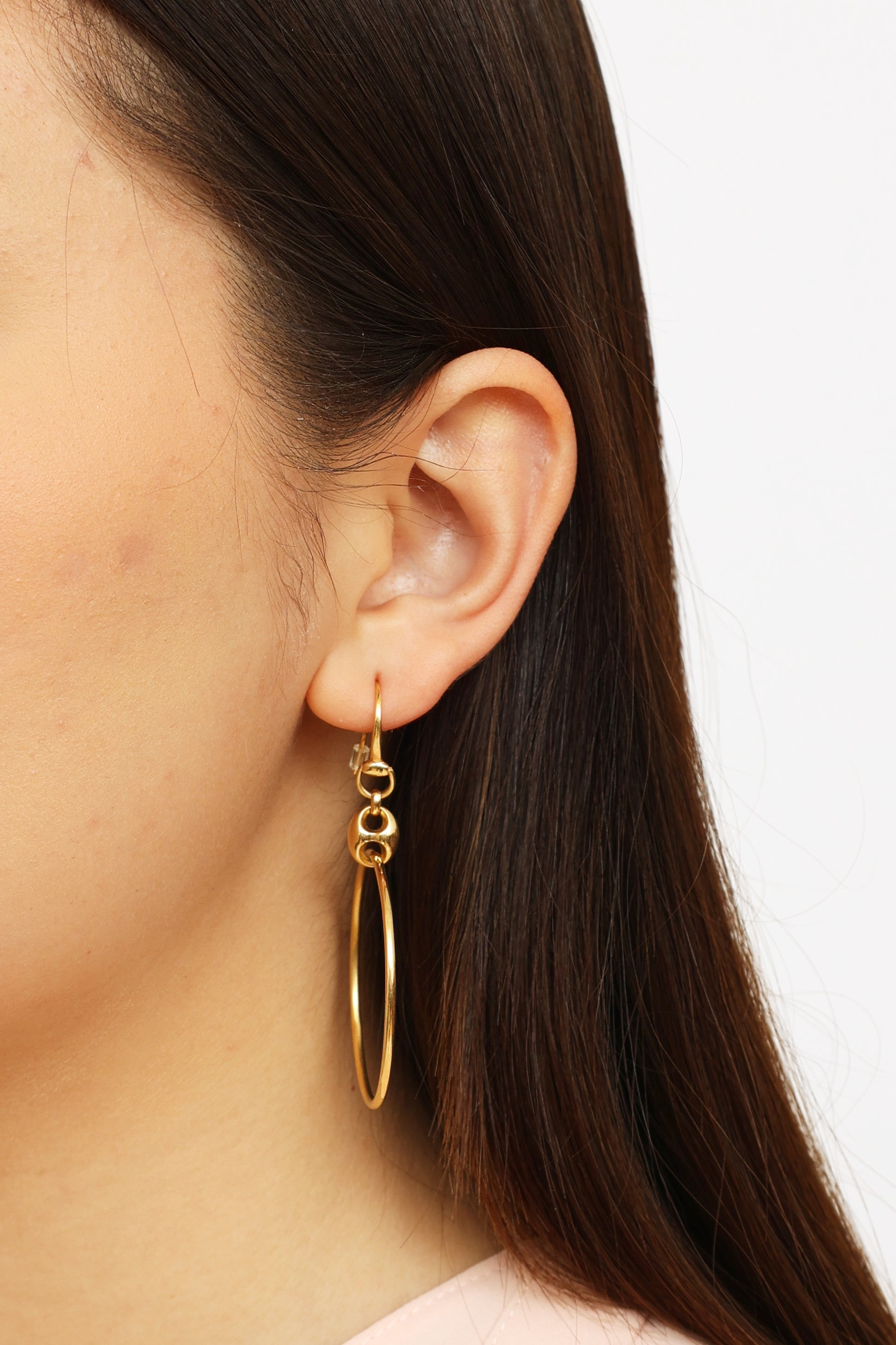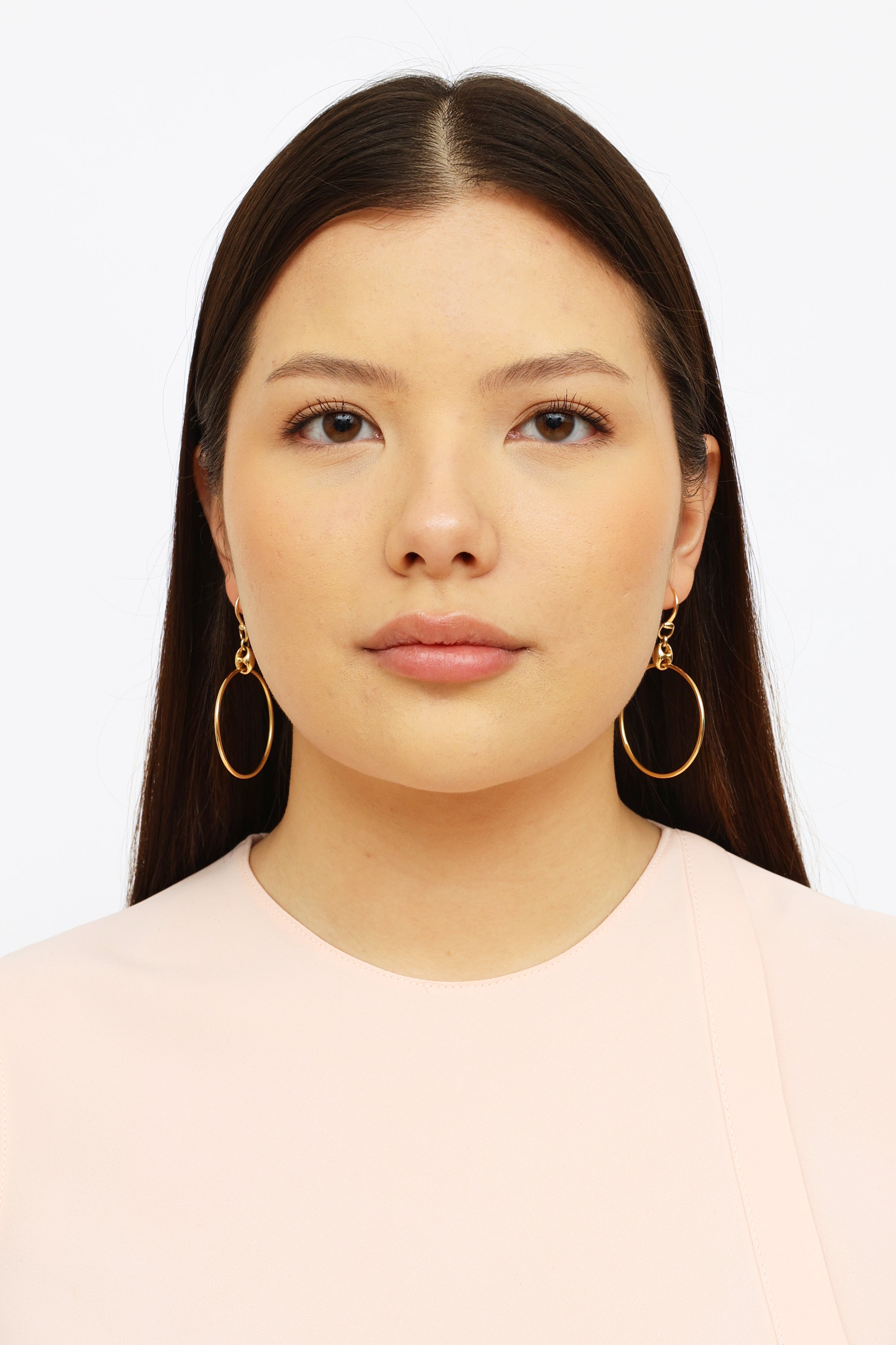 Pre-owned Gucci Marina 18K yellow gold puff link hoop earrings featuring a shepherd hook, puff link and 40mm in diameter hoops in 18K yellow gold.