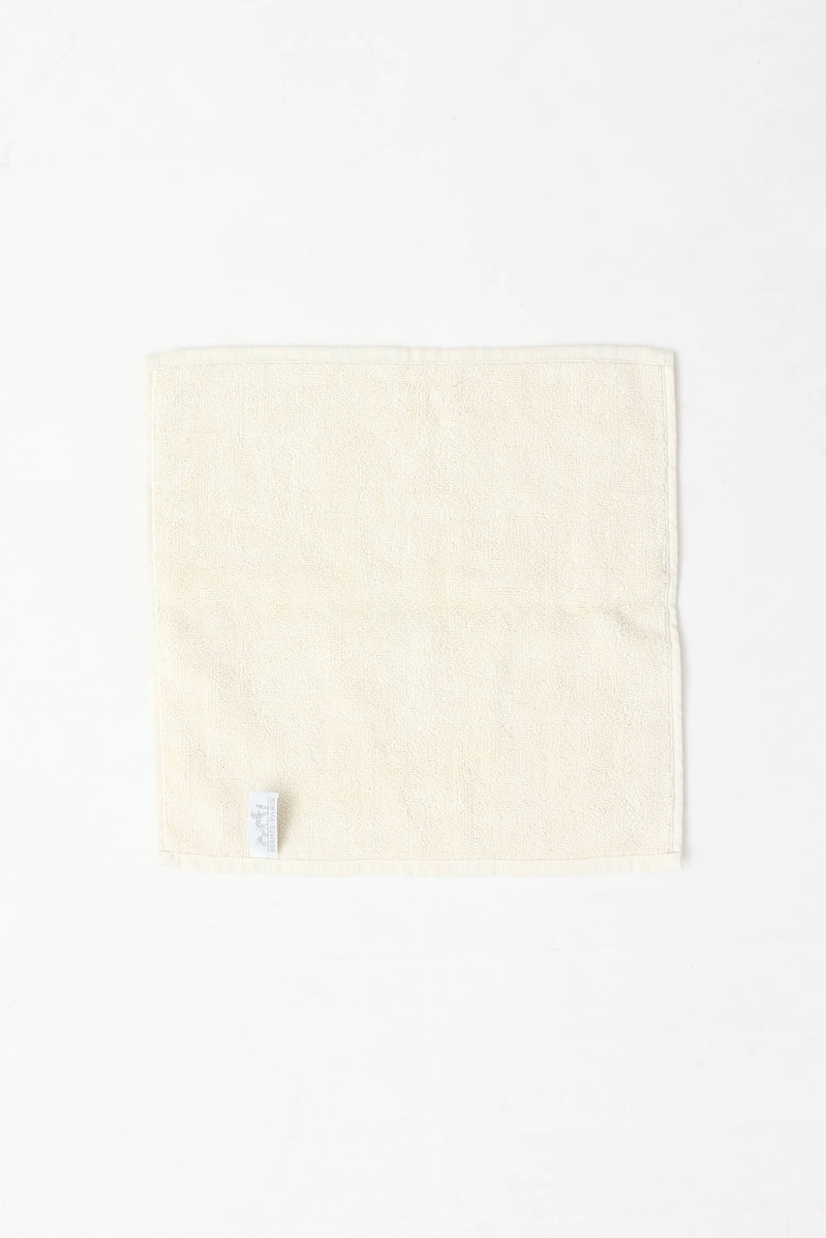 Pre-owned Hermès Naturel Stairs two piece towel set featuring terry cloth cotton with adjoining H pattern and finished edges. Set includes one face towel, one hand towel, one bath towel.