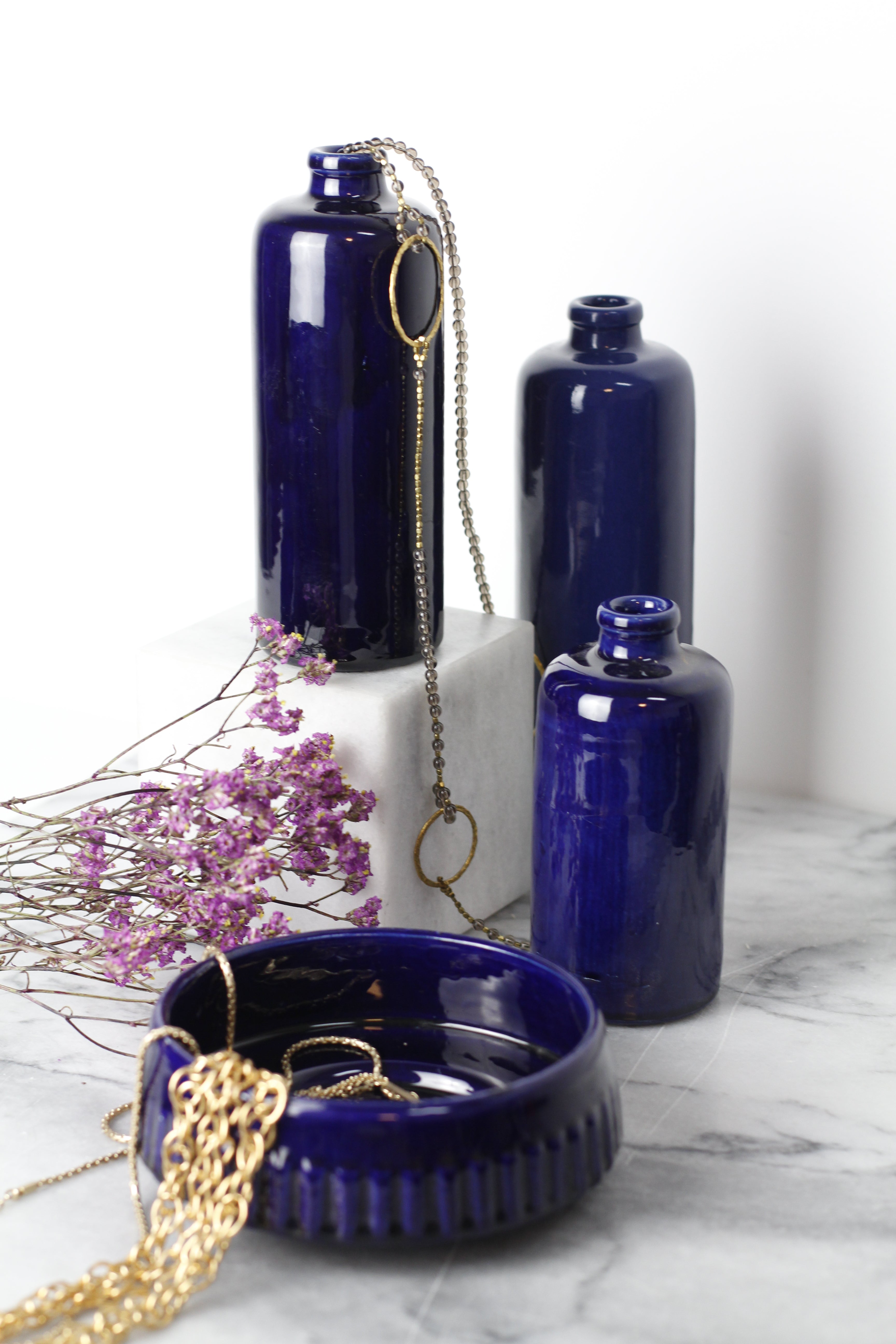 Spara Keramik large single stem vase featuring blue glaze finish.