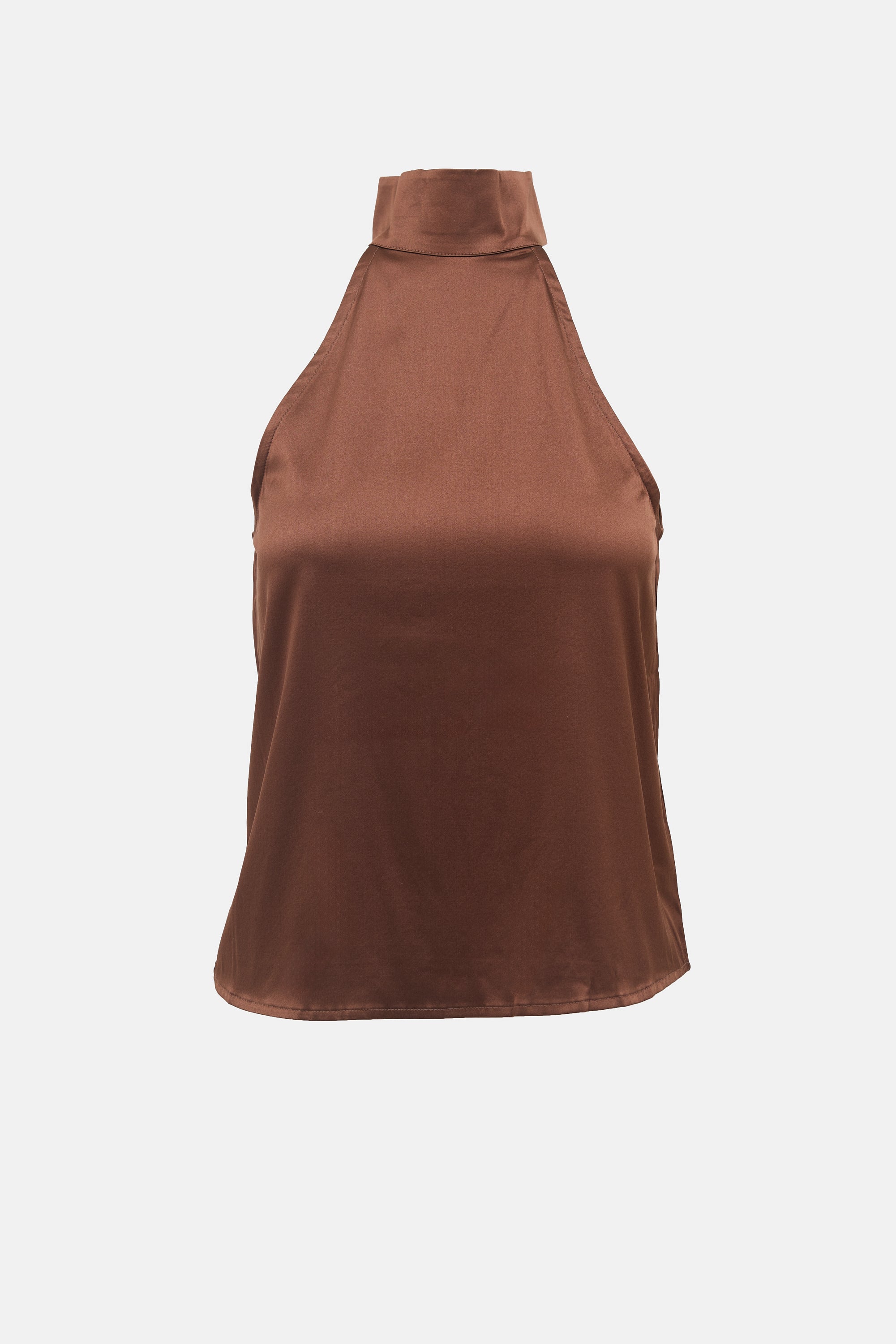 Pre-owned Anine Bing brown silk Sylvia top featuring a mock neck and back zip closure with button fastening at neck.