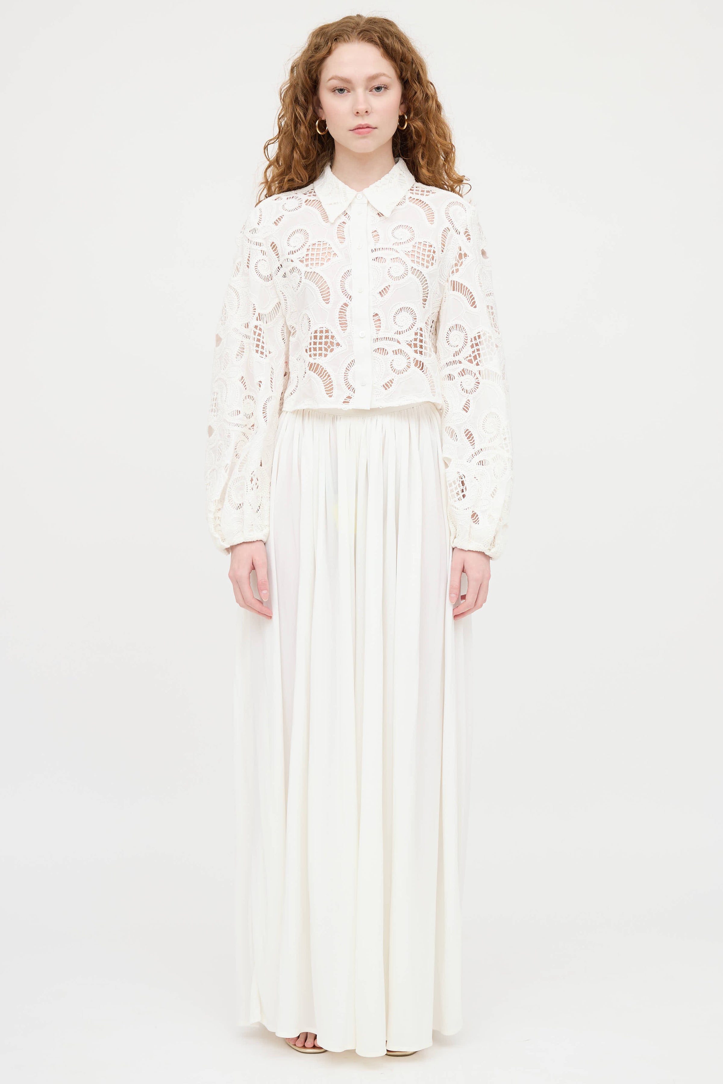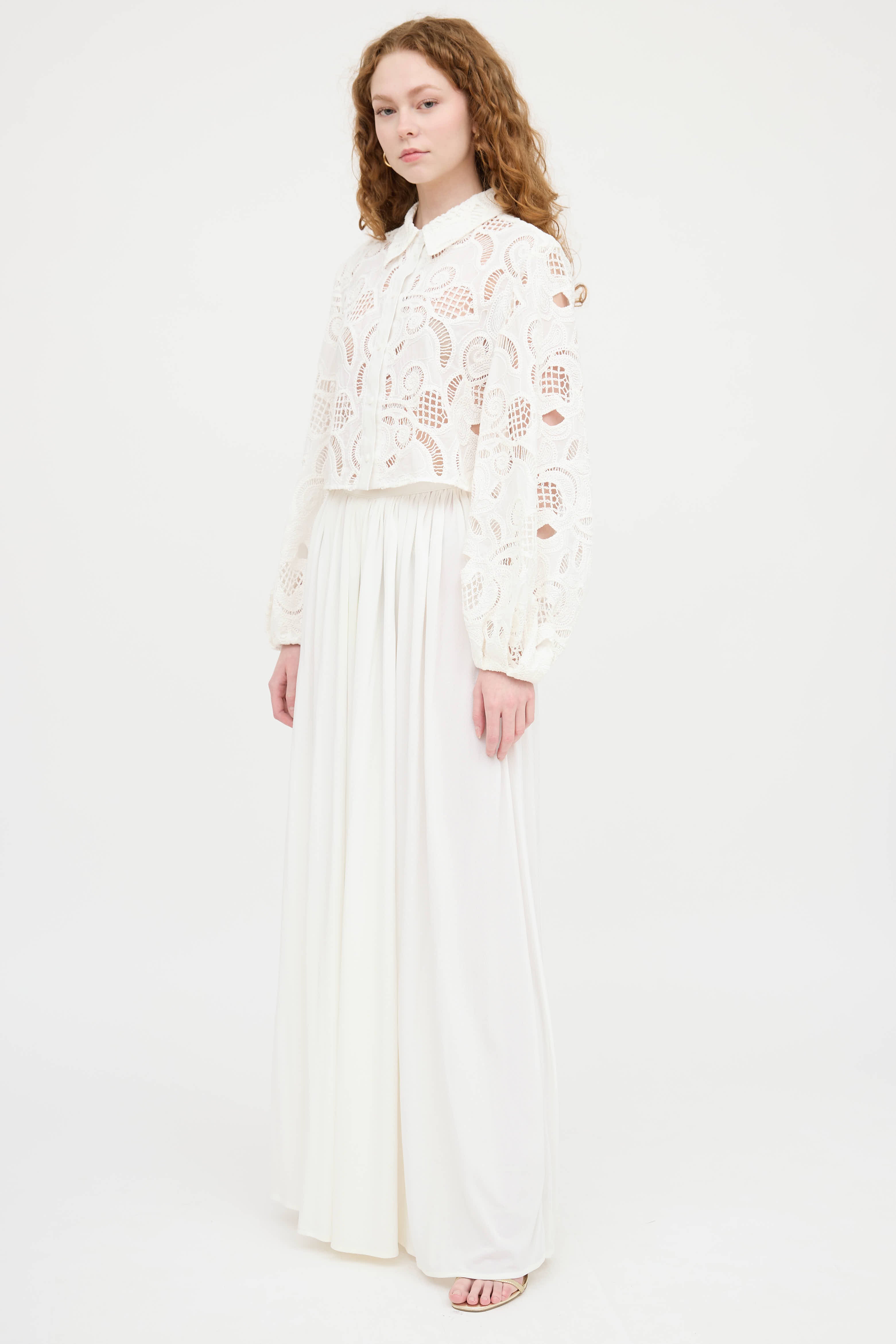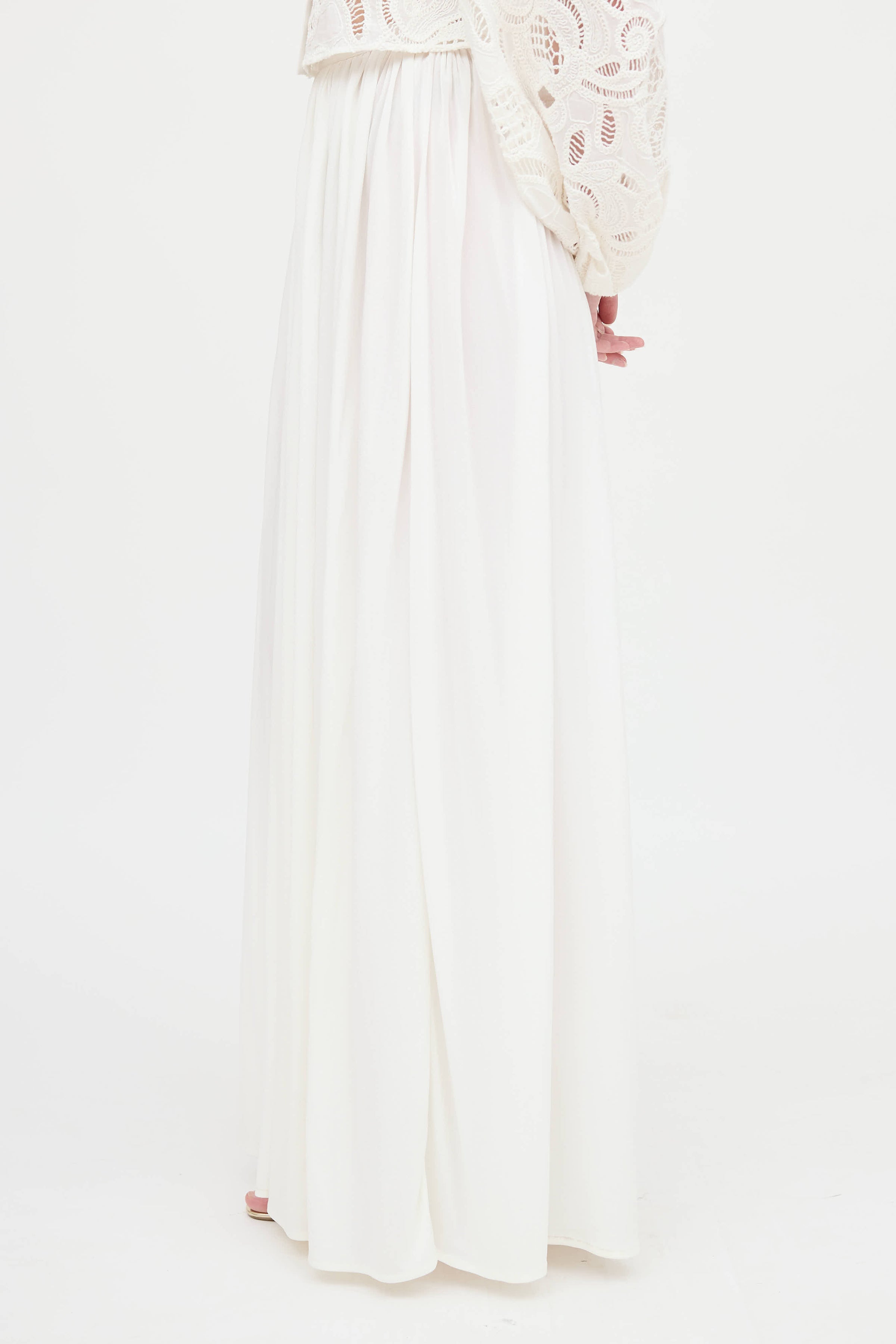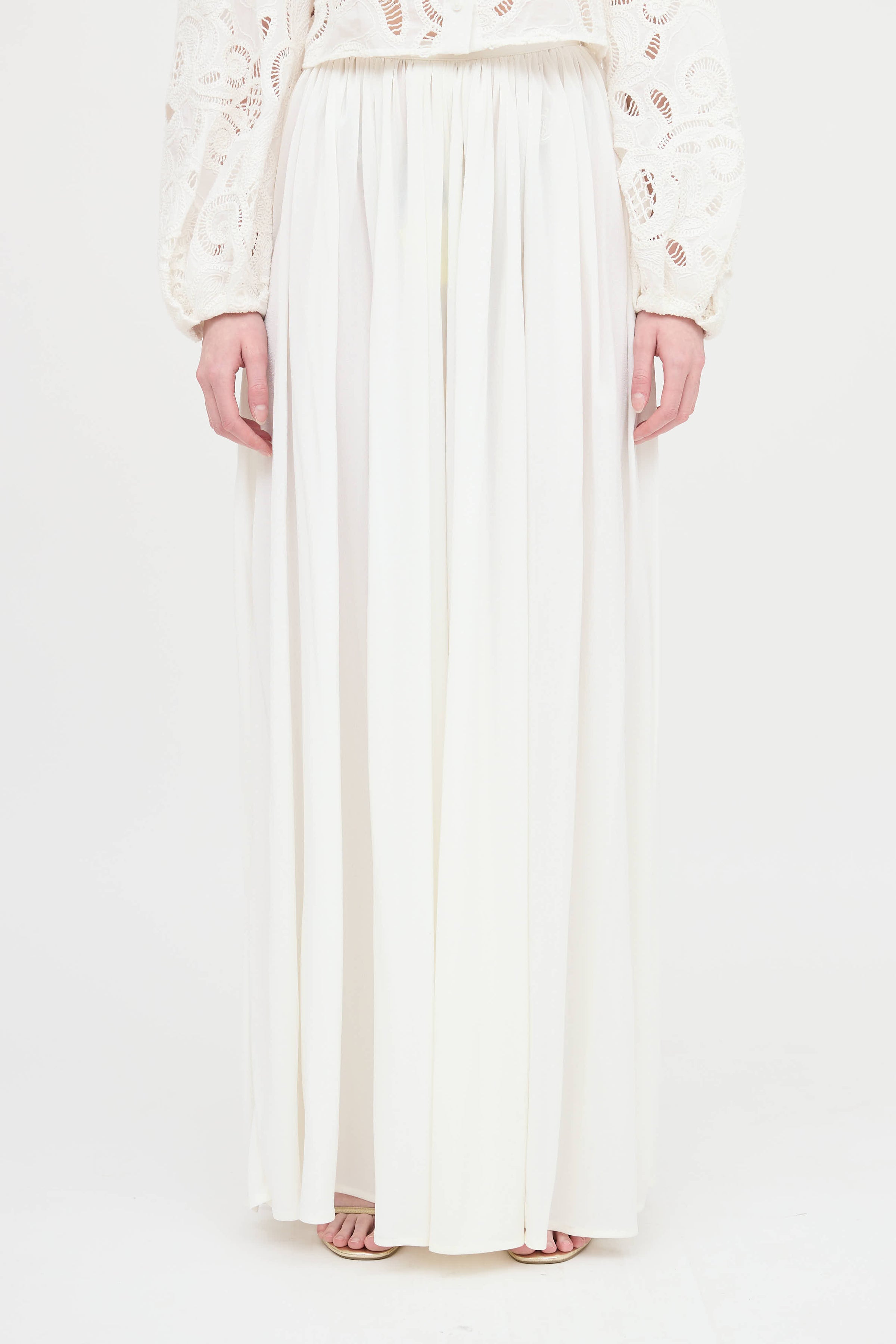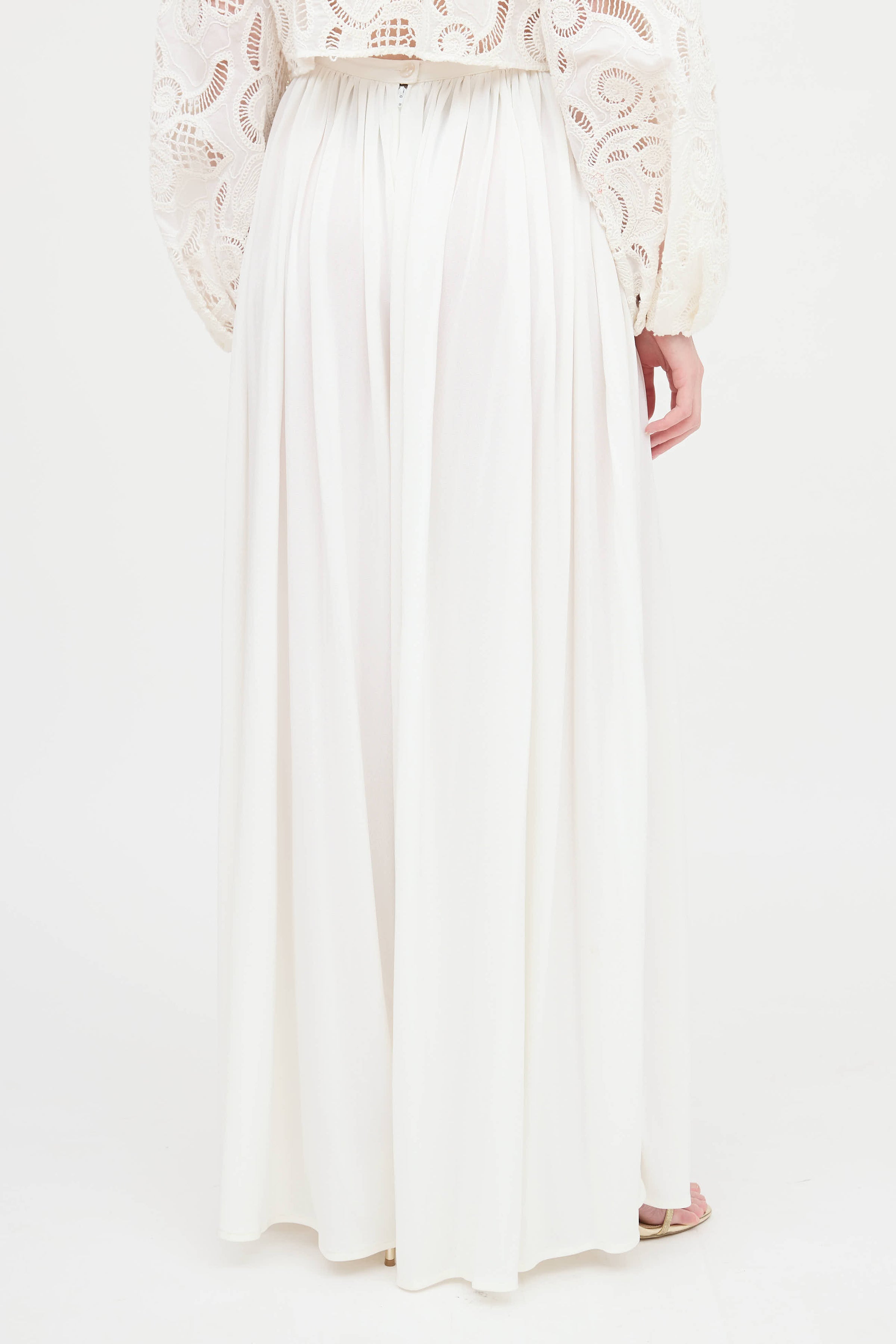 Pre-owned Saint Laurent white vintage pants featuring zipper and button closure, embroidered YSL logo at waist and pleating throughout.