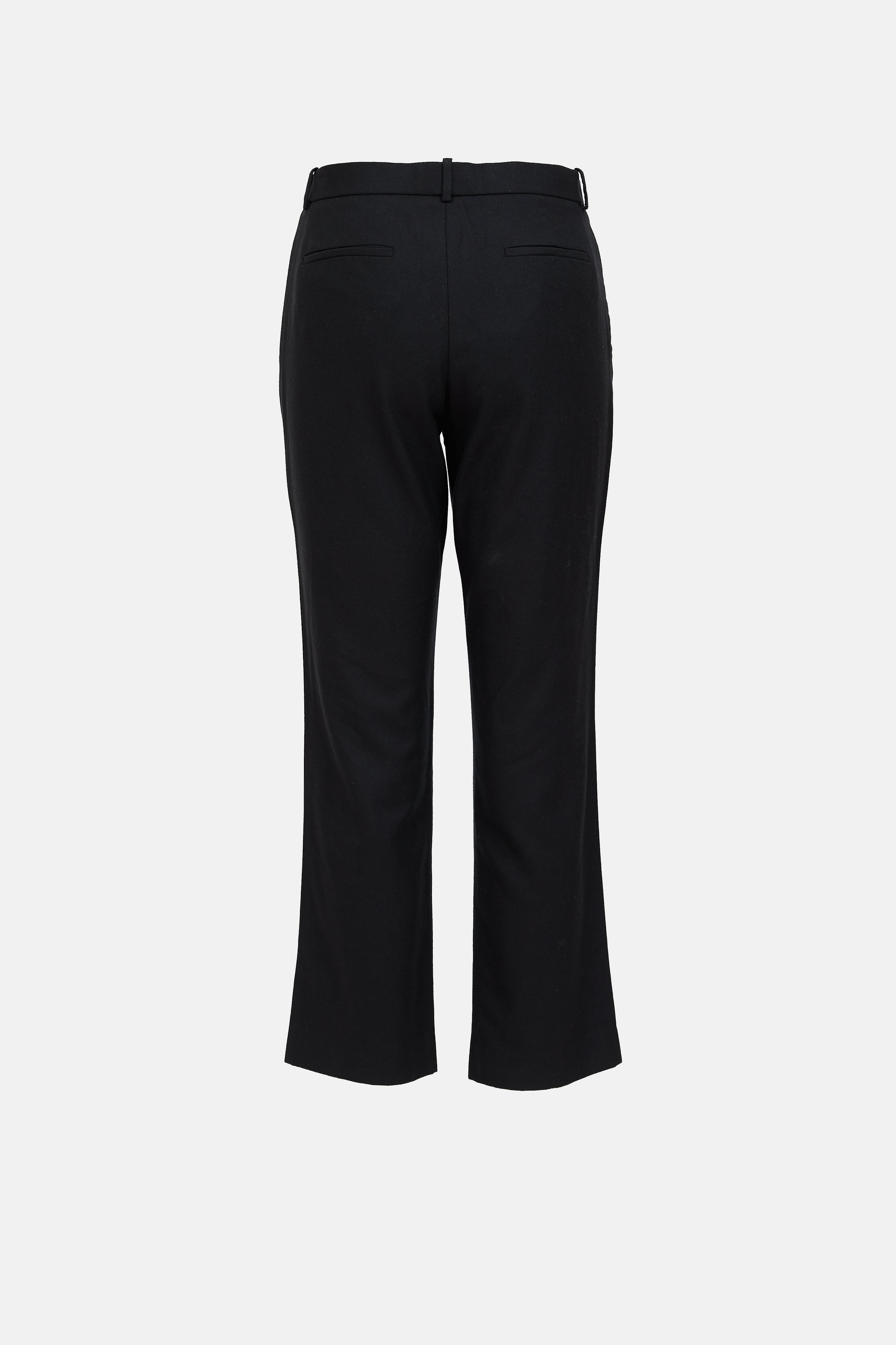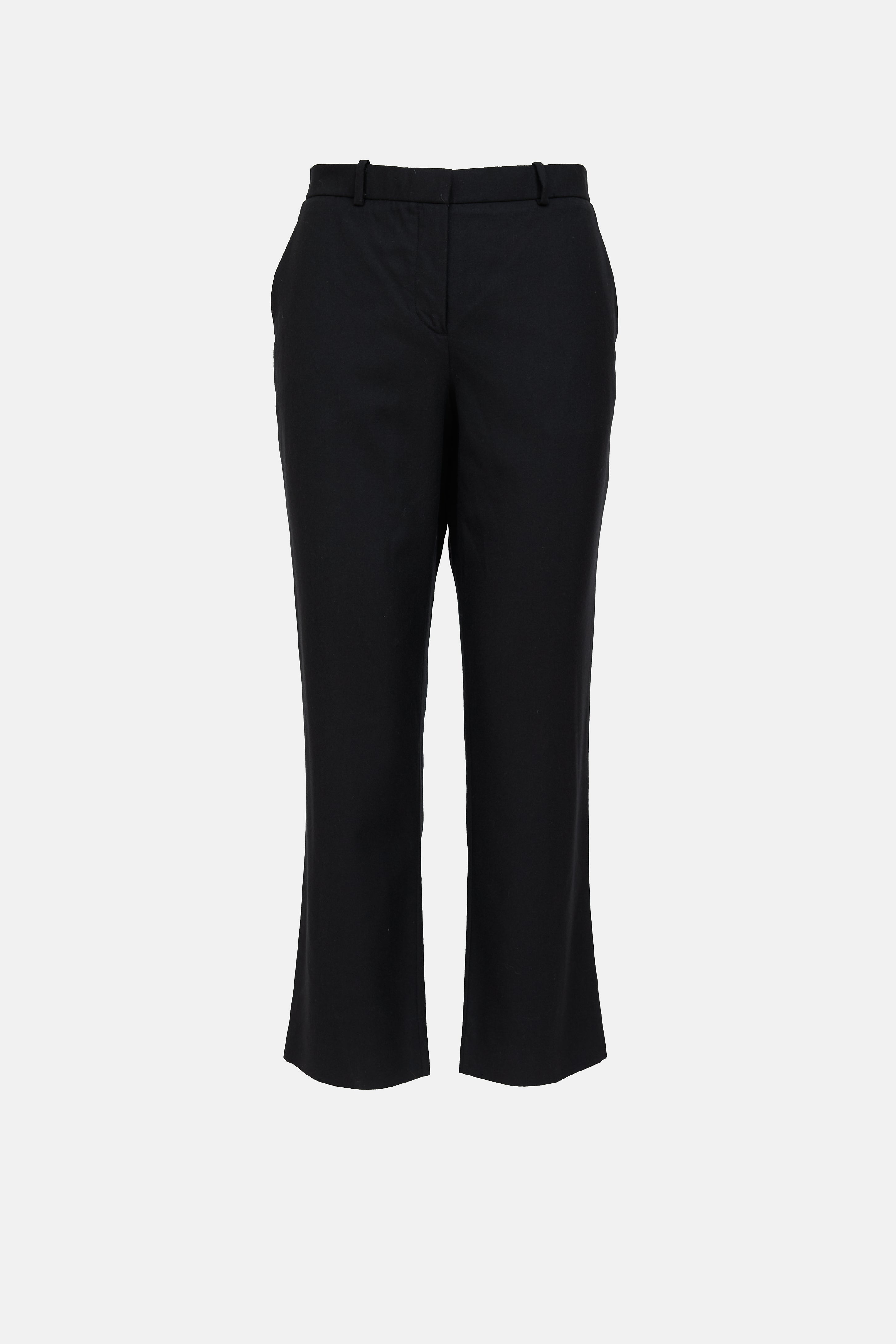 Pre-owned The Row black wool trousers featuring two slip pockets at hip, two welt pockets at back, straight leg, and zip fly with button closure. Lined.
