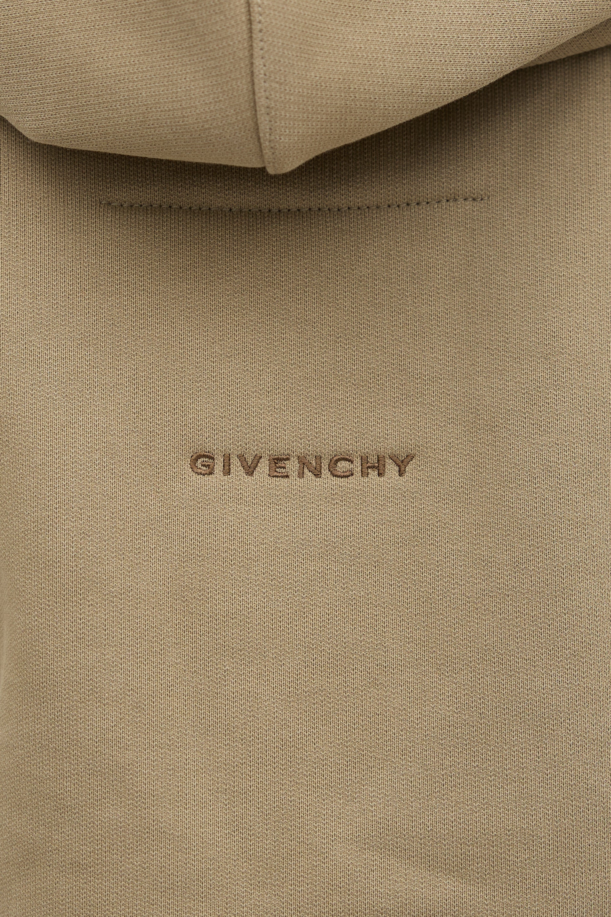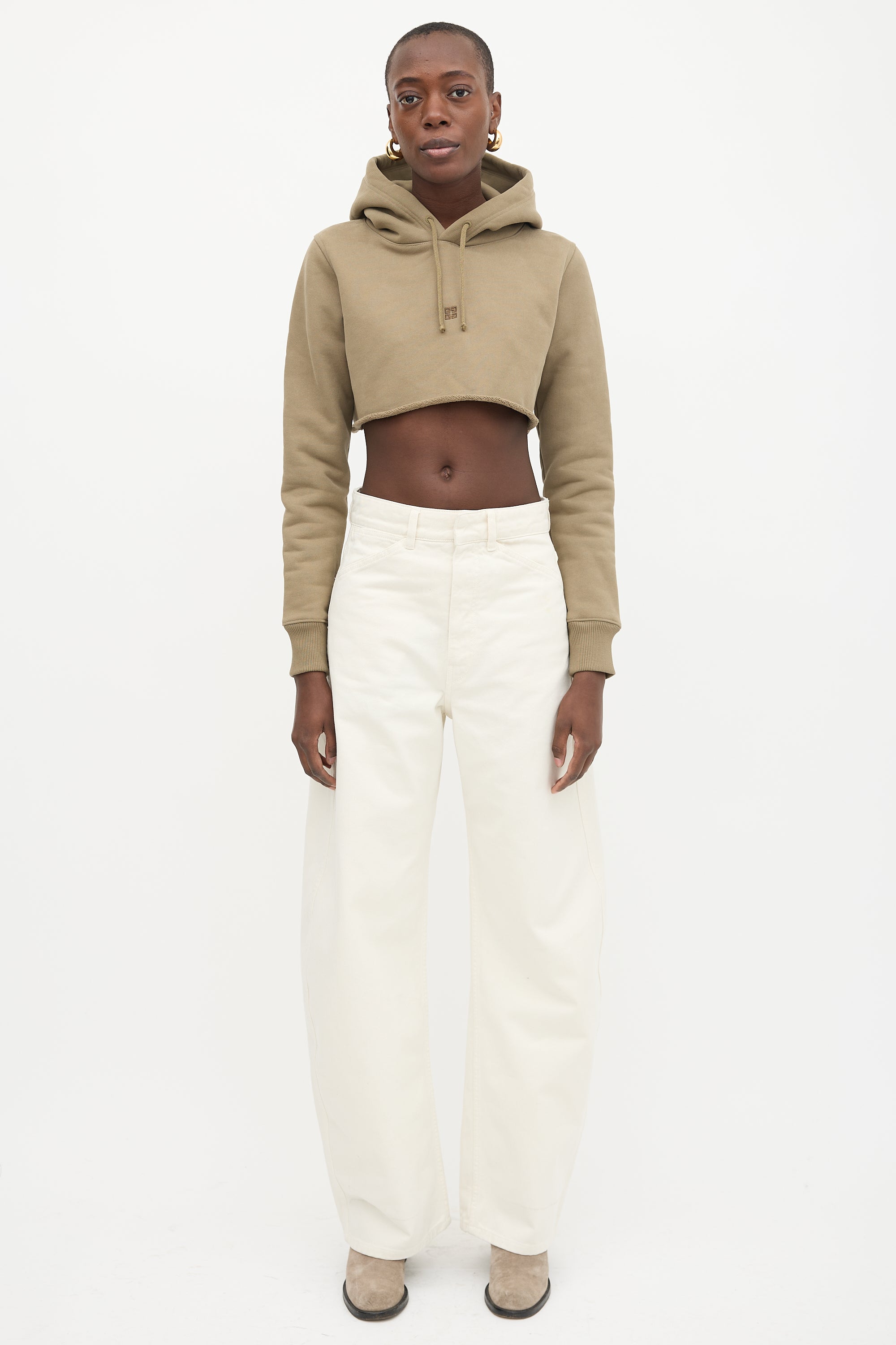 Pre-owned Givenchy green cropped hoodie featuring drawstring hood, tonal embroidered logos at front and back, raw hem, and ribbed cuffs.